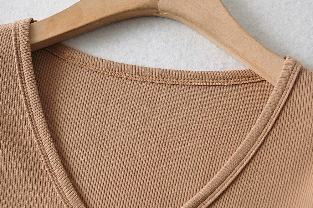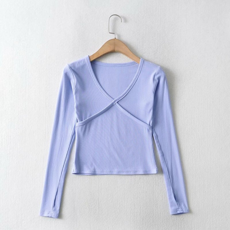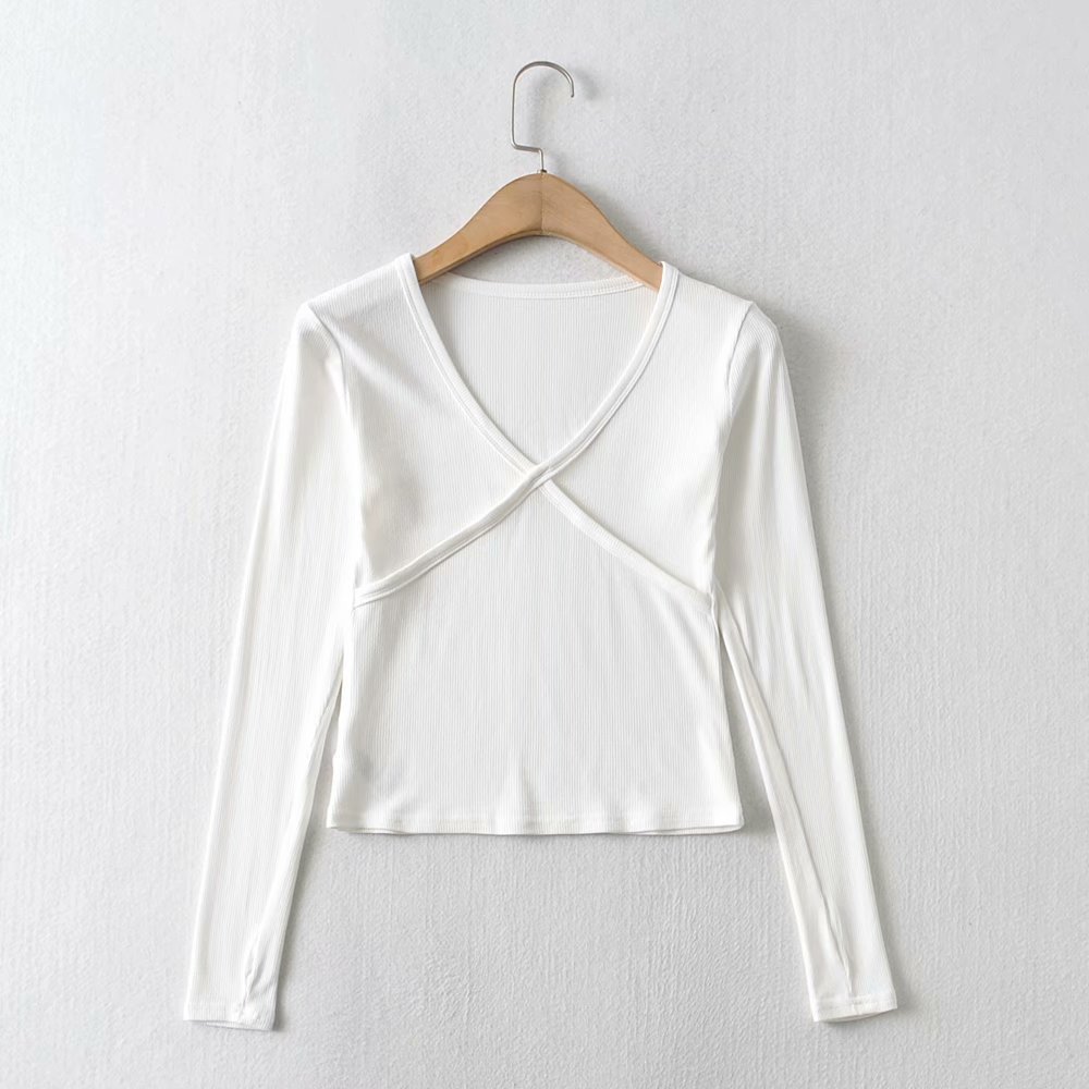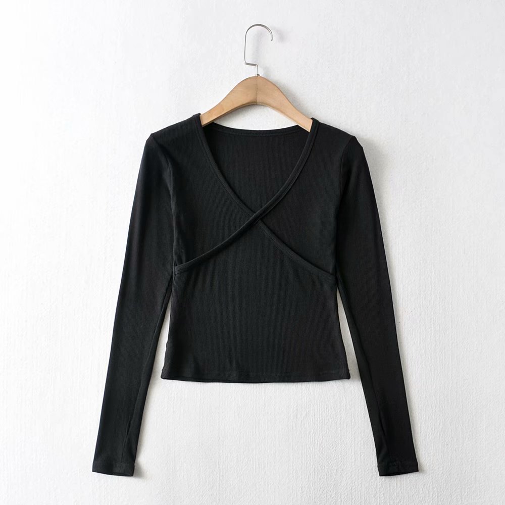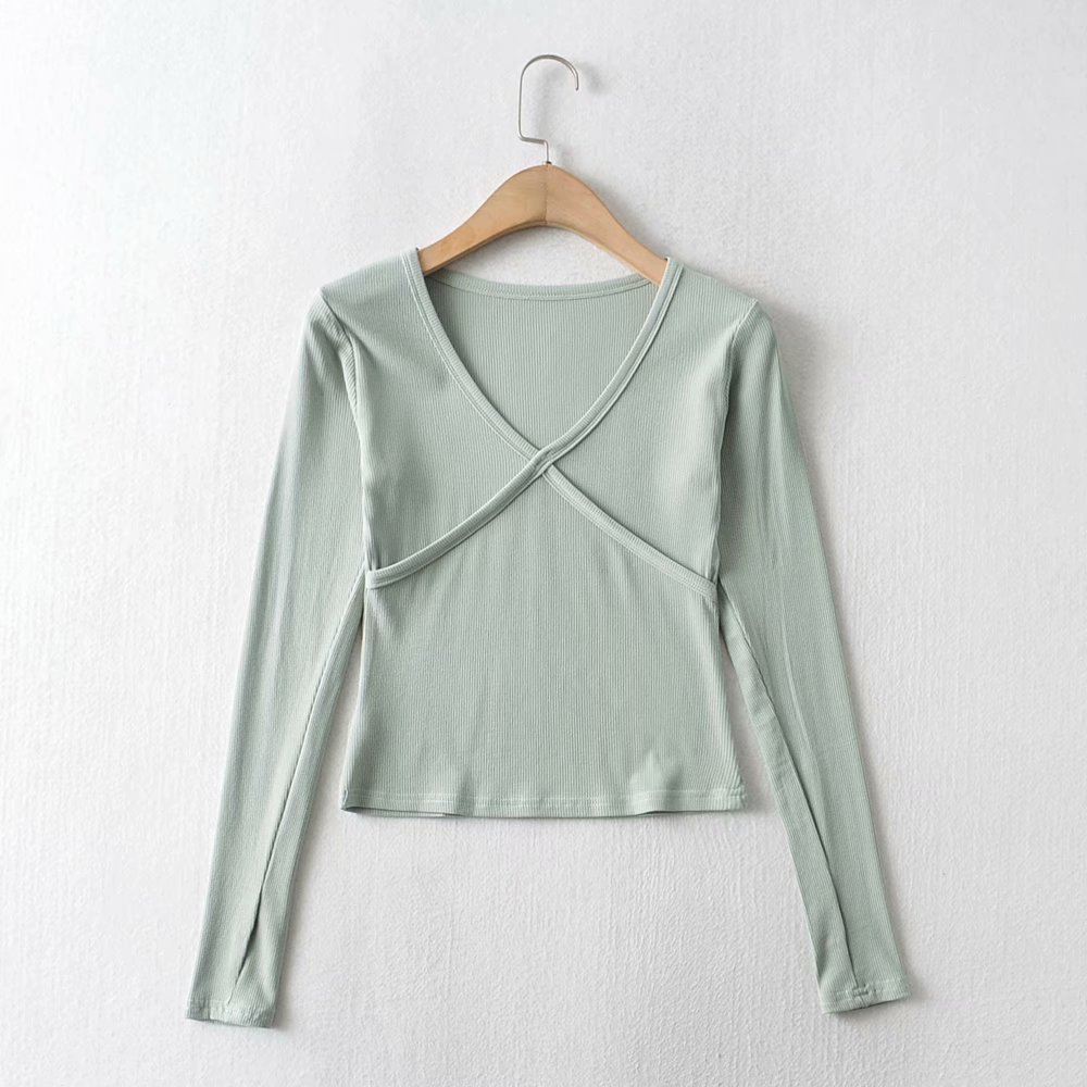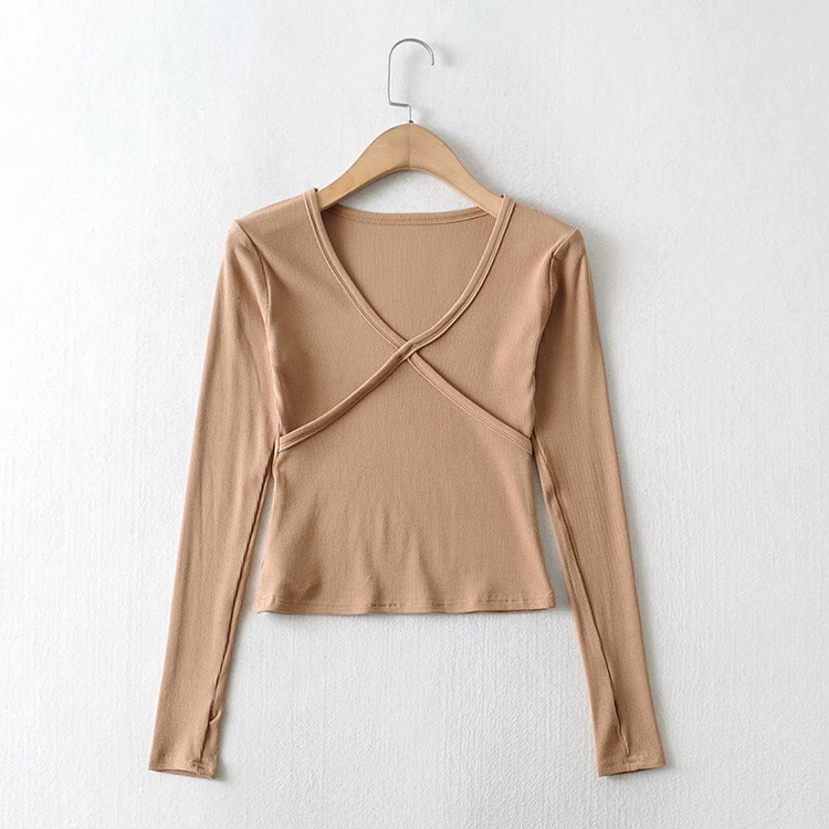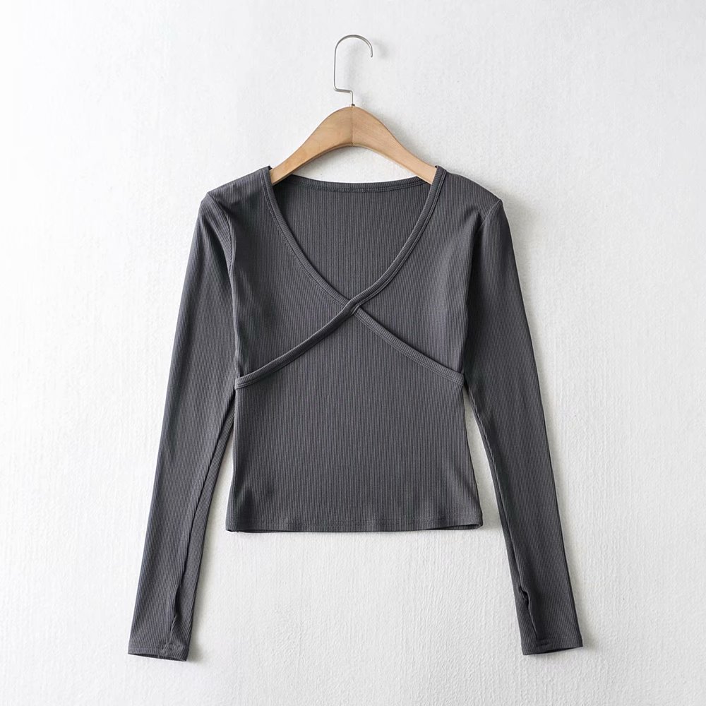 Women's Solid Color Long Sleeve V-Neck Slim Fit T-Shirt