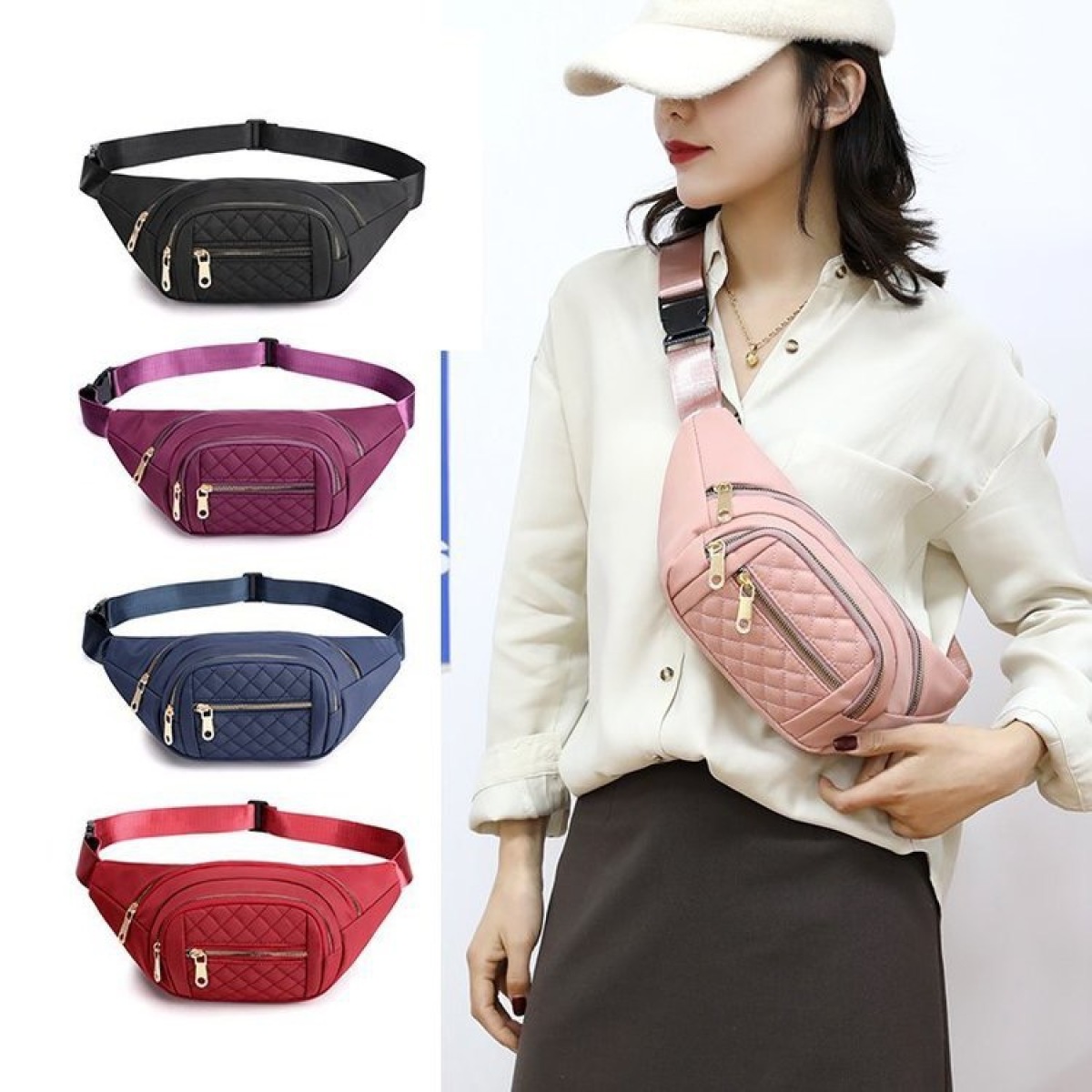 Women's Solid Color Nylon Crossbody Bag Shoulder Multifunctional Waist Bag
