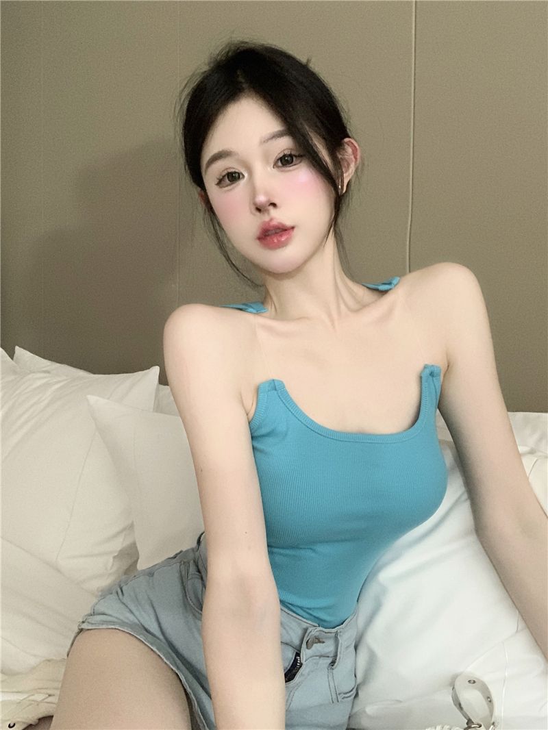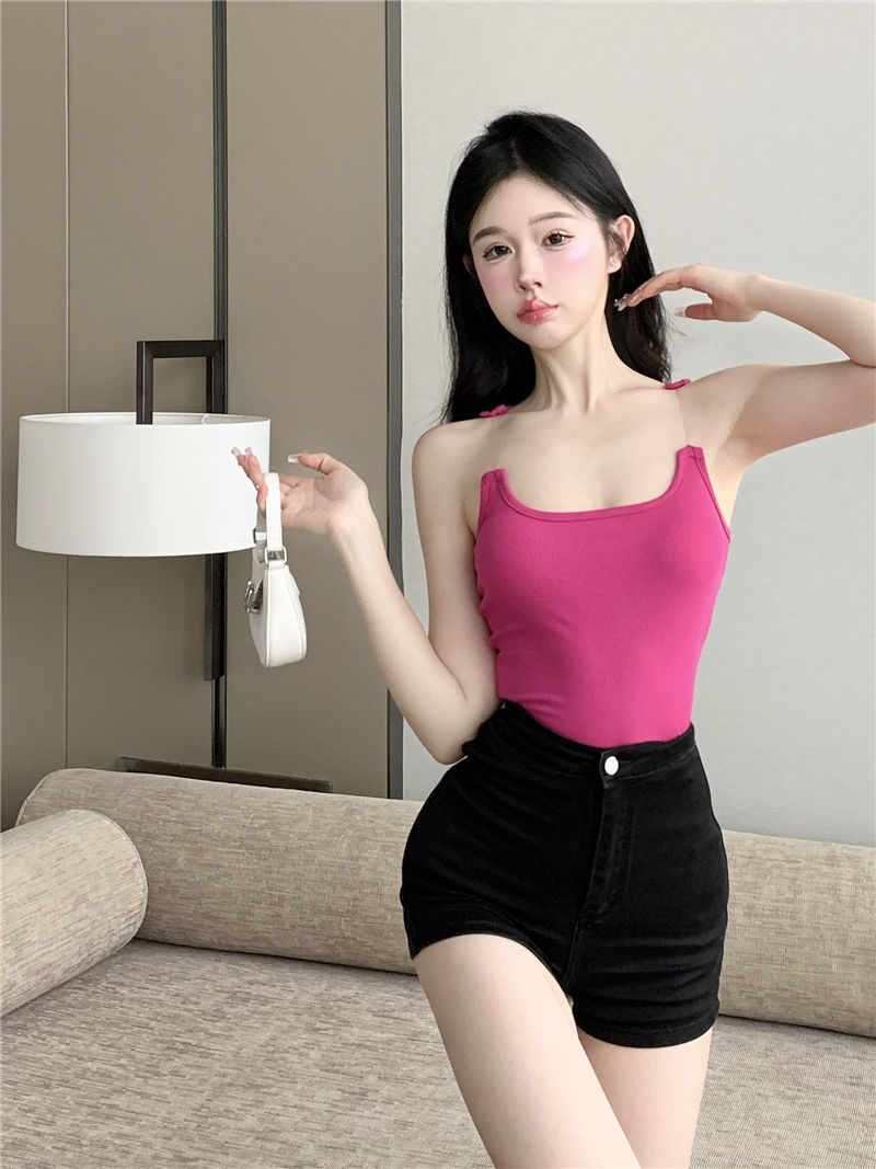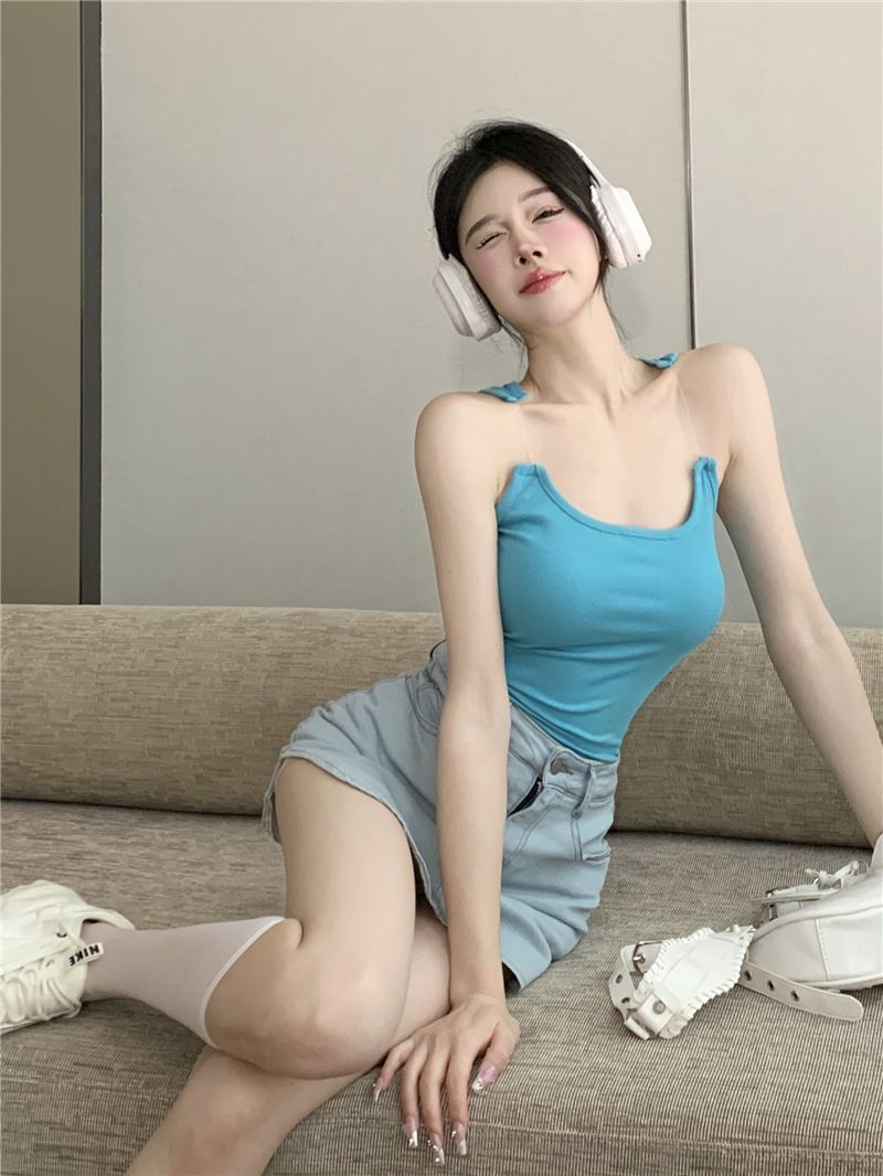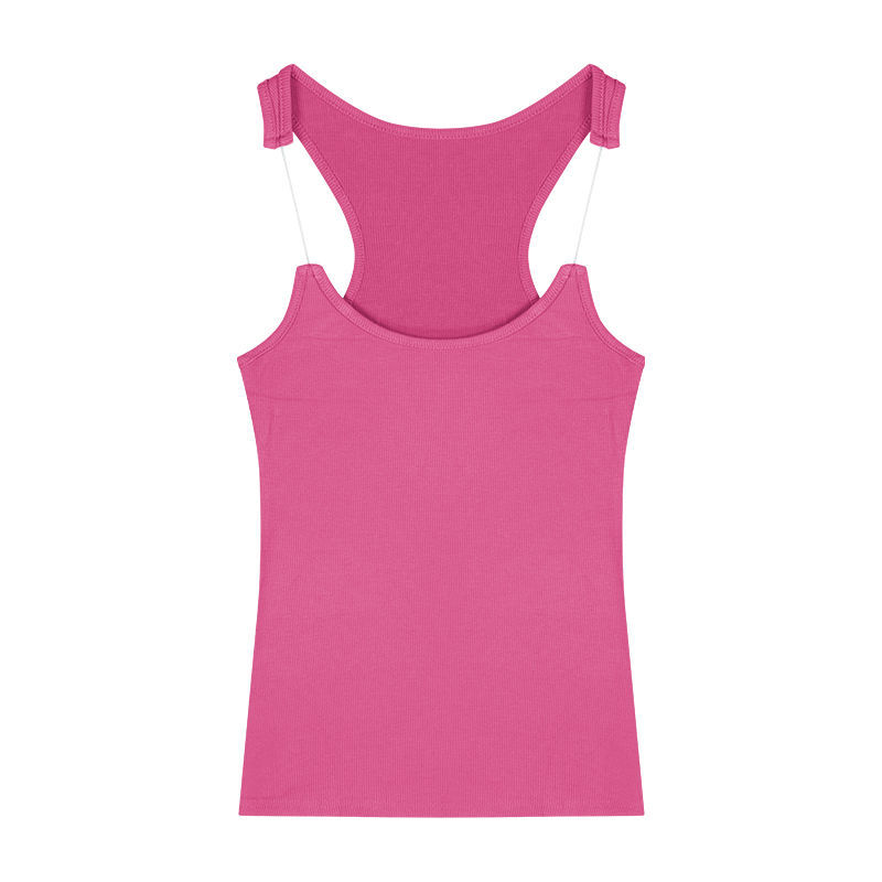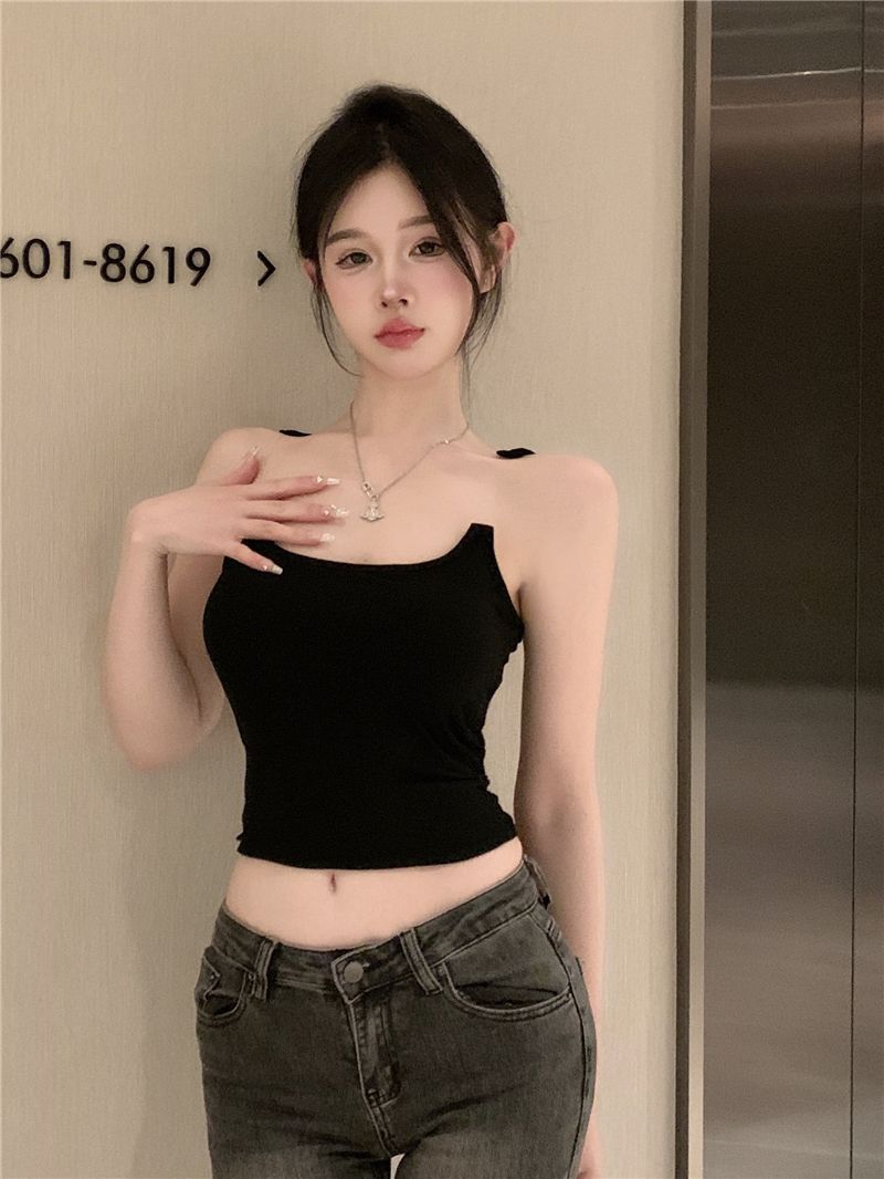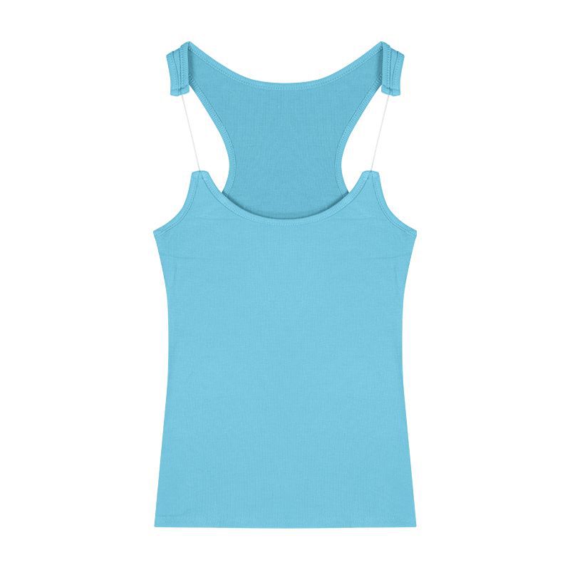 Womens Solid-Color Short Camisole With Padded Cups And Invisible Straps