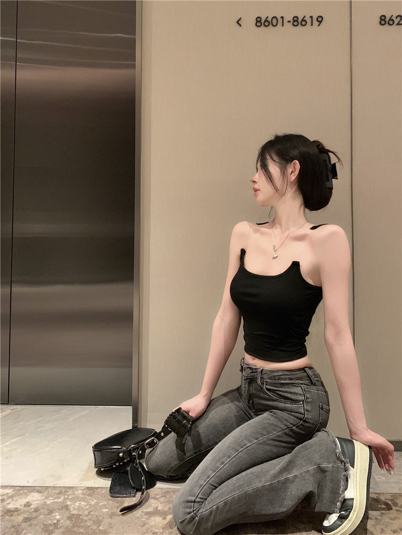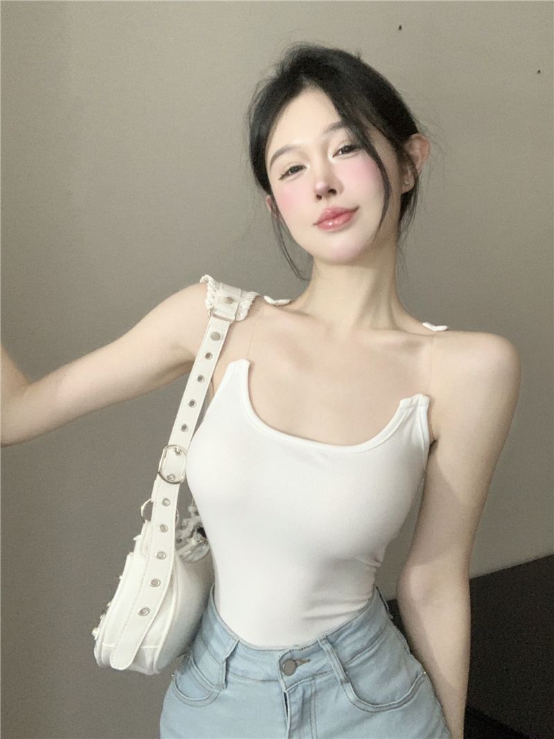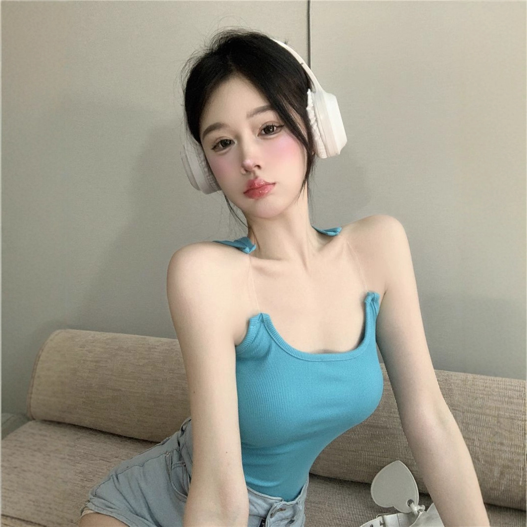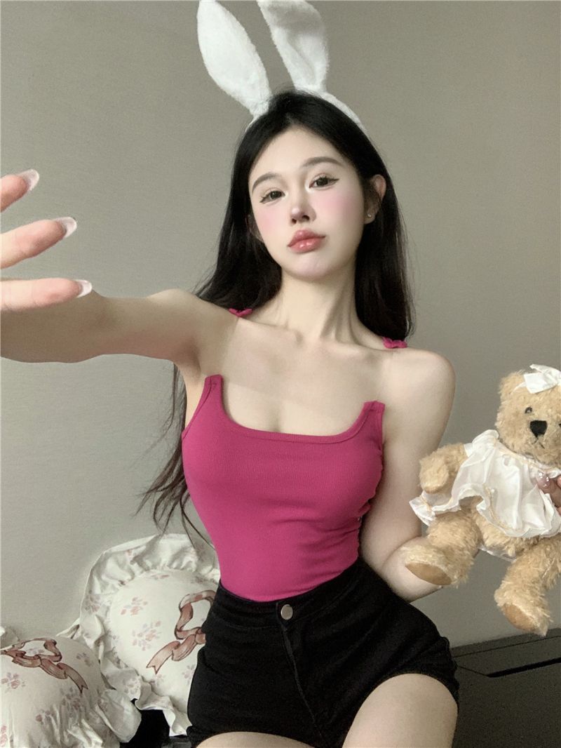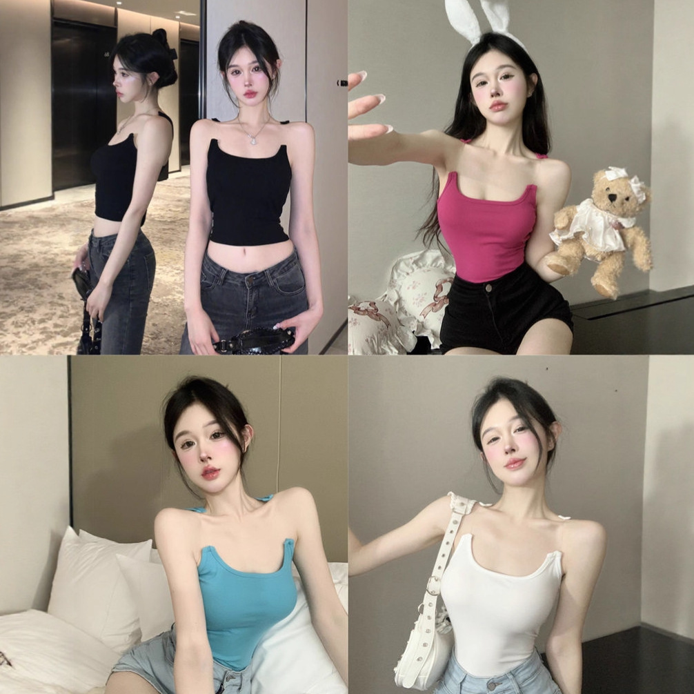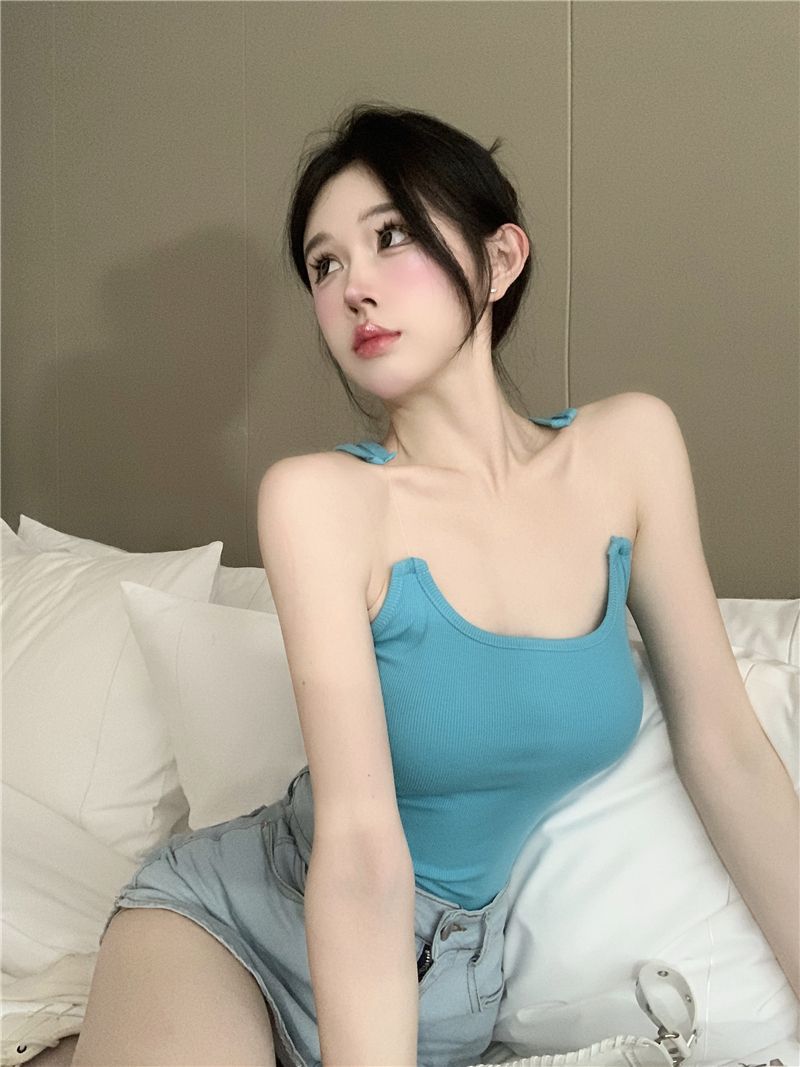 Womens Solid-Color Short Camisole With Padded Cups And Invisible Straps