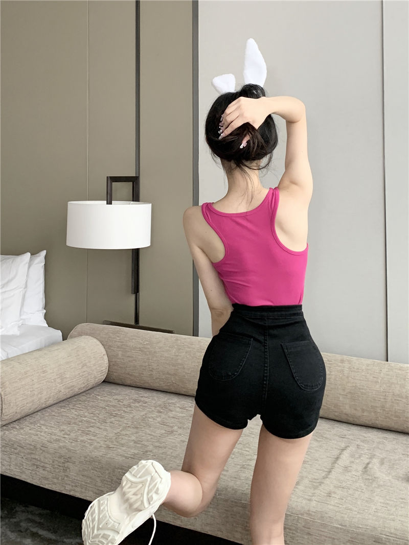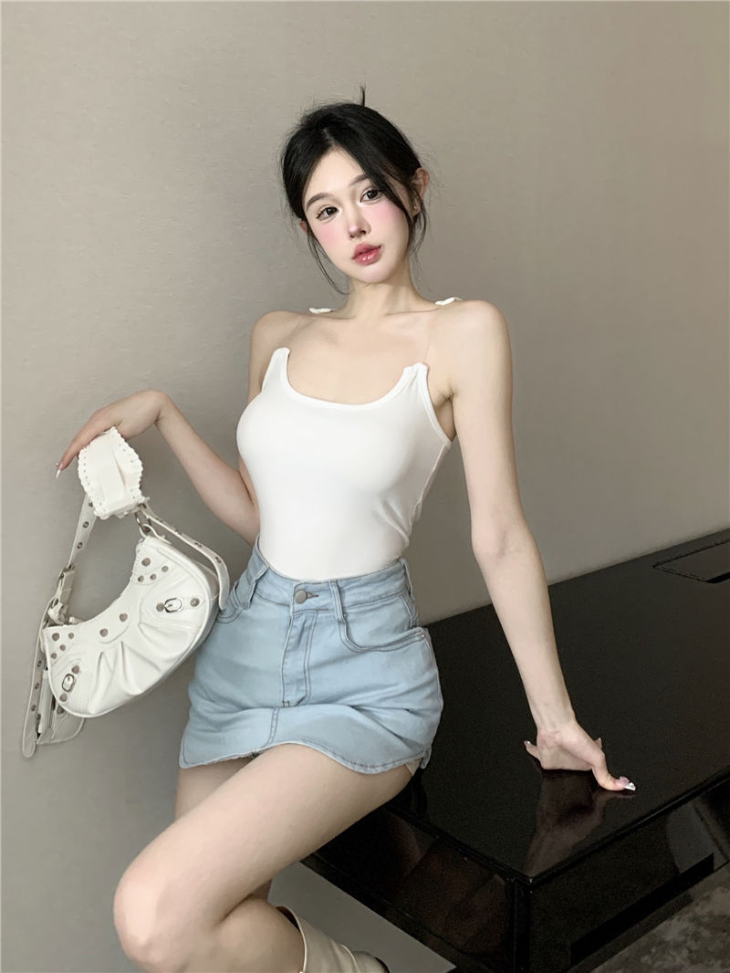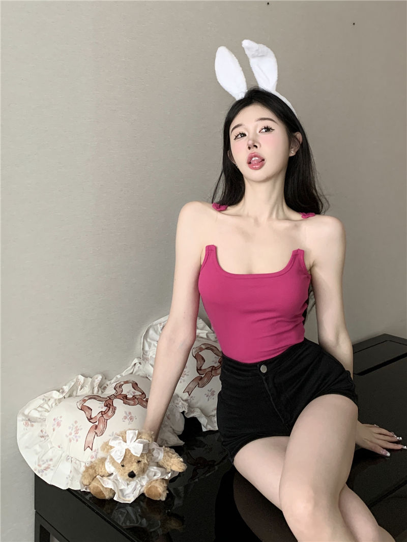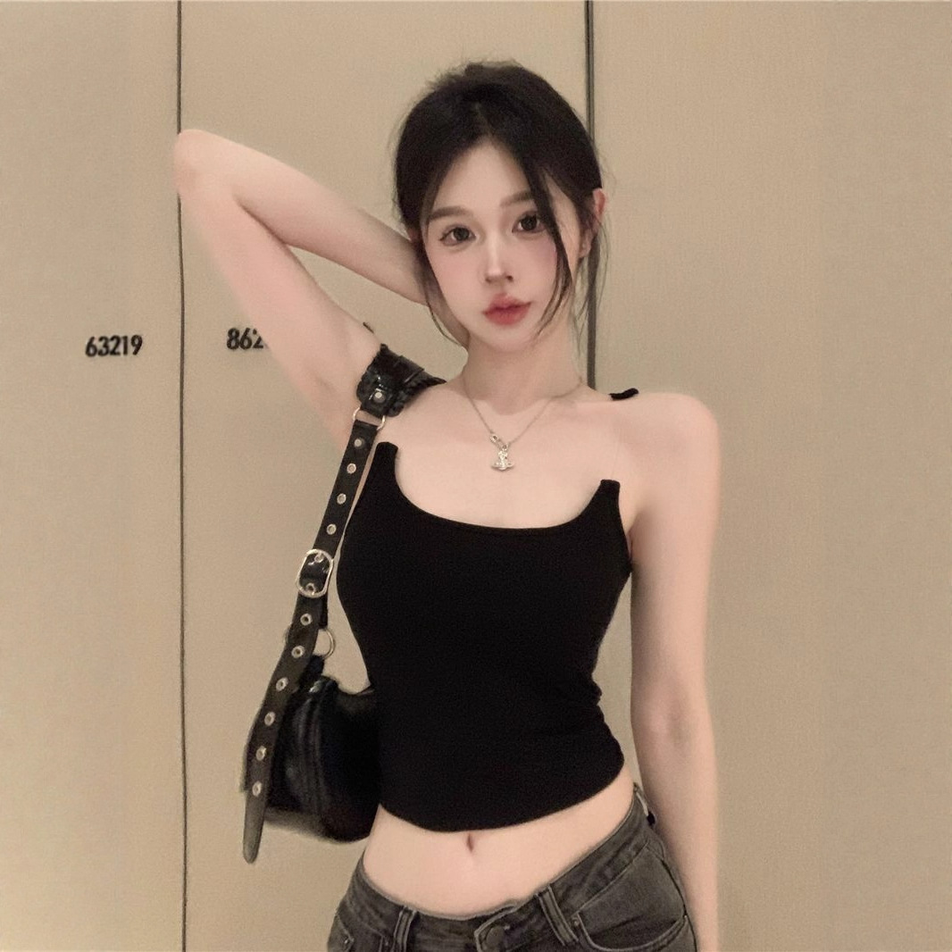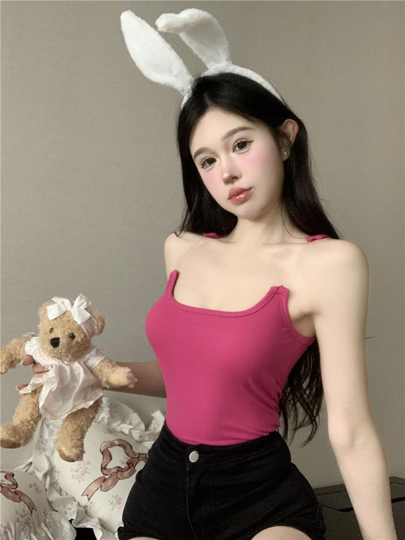 Womens Solid-Color Short Camisole With Padded Cups And Invisible Straps