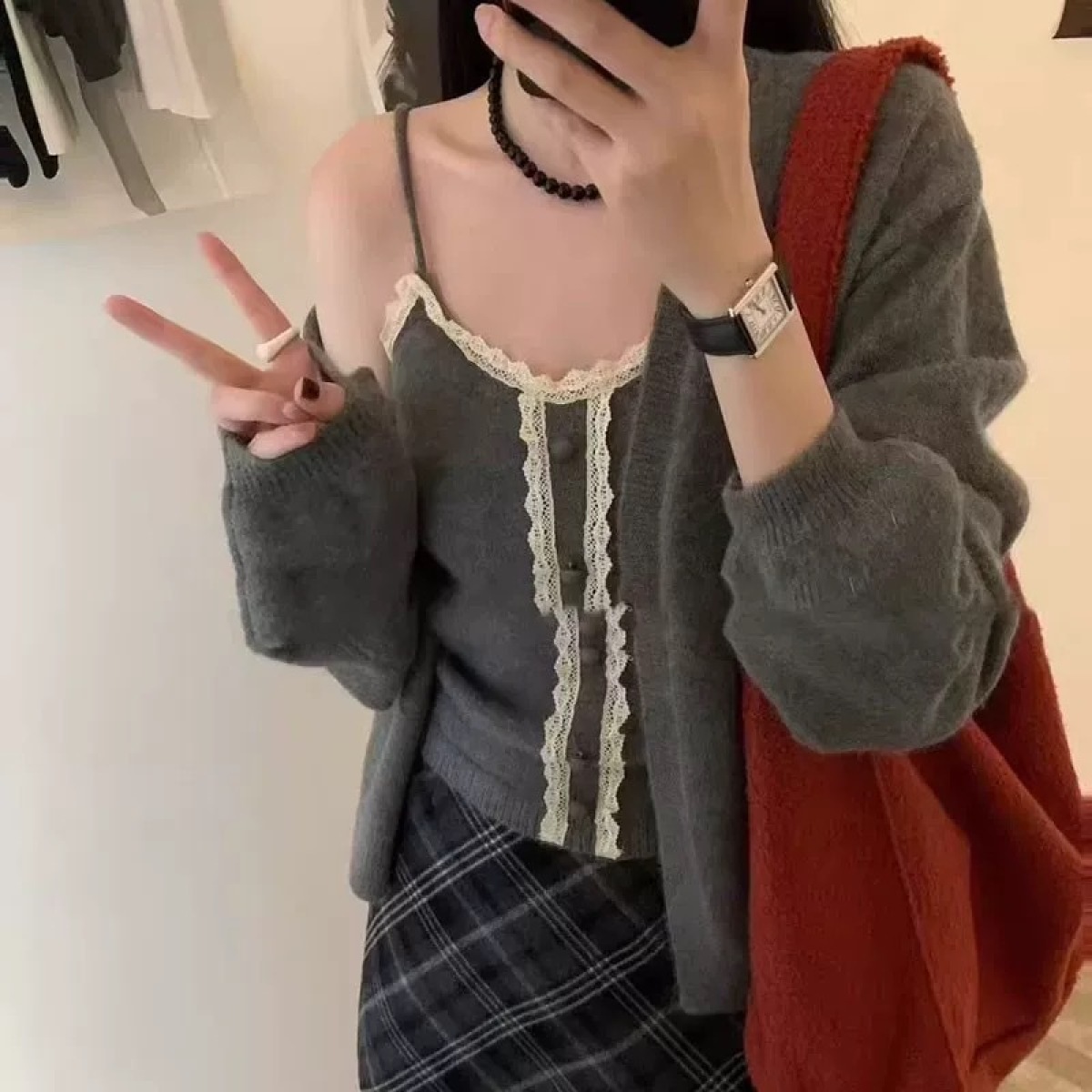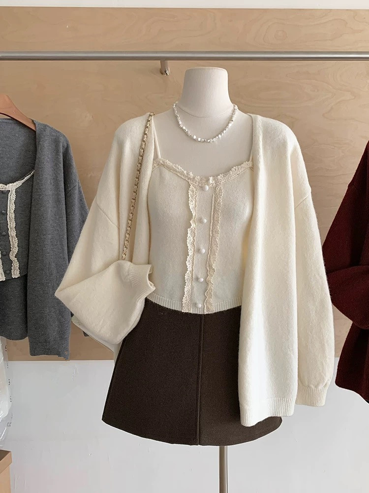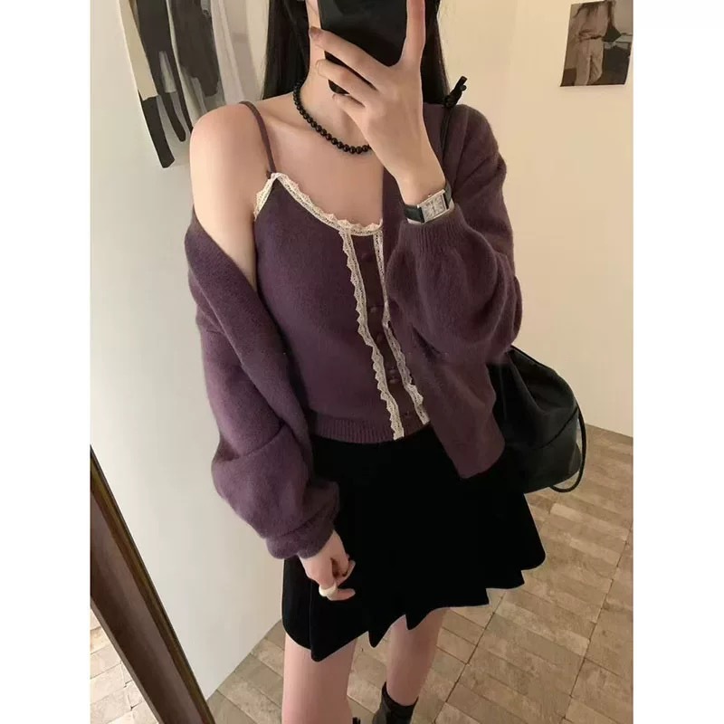 Color: Beige (sweater with suspenders), Purple (sweater with suspenders), Red (sweater with suspenders), Black (sweater with suspenders), Gray (sweater with suspenders), Green (sweater with suspenders)