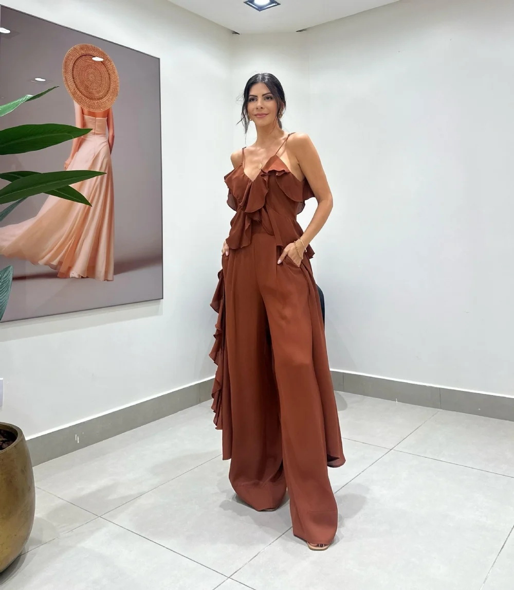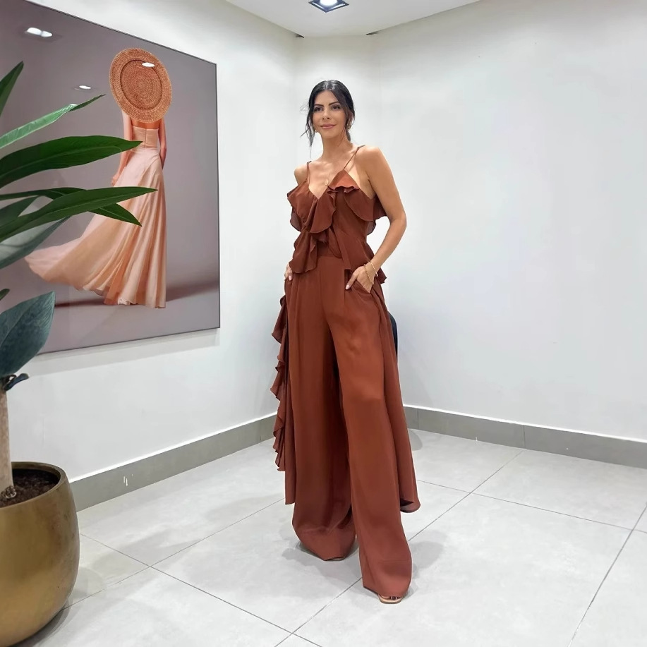 Women's Solid Color Top And Straight Pants Two-piece Set