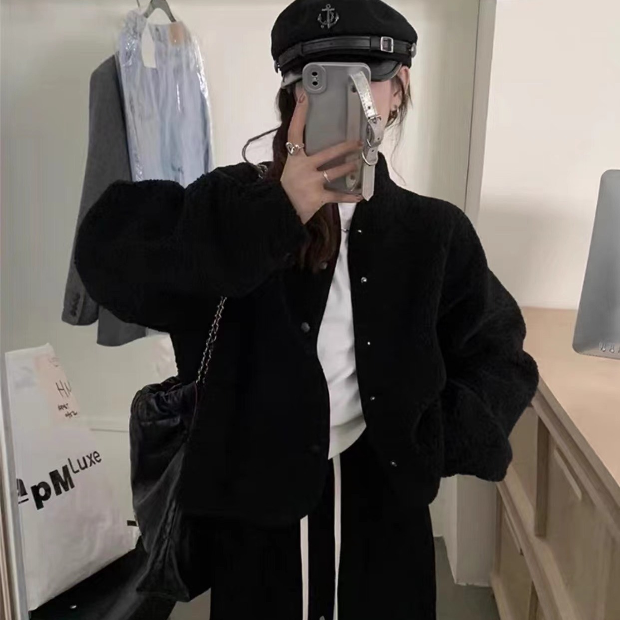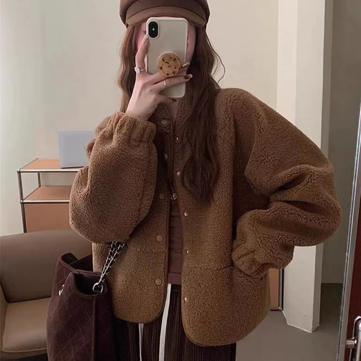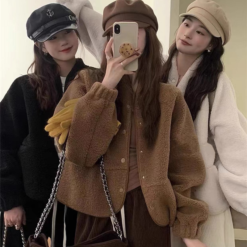 Women's Solid Color Versatile Short Lamb Fleece Jacket