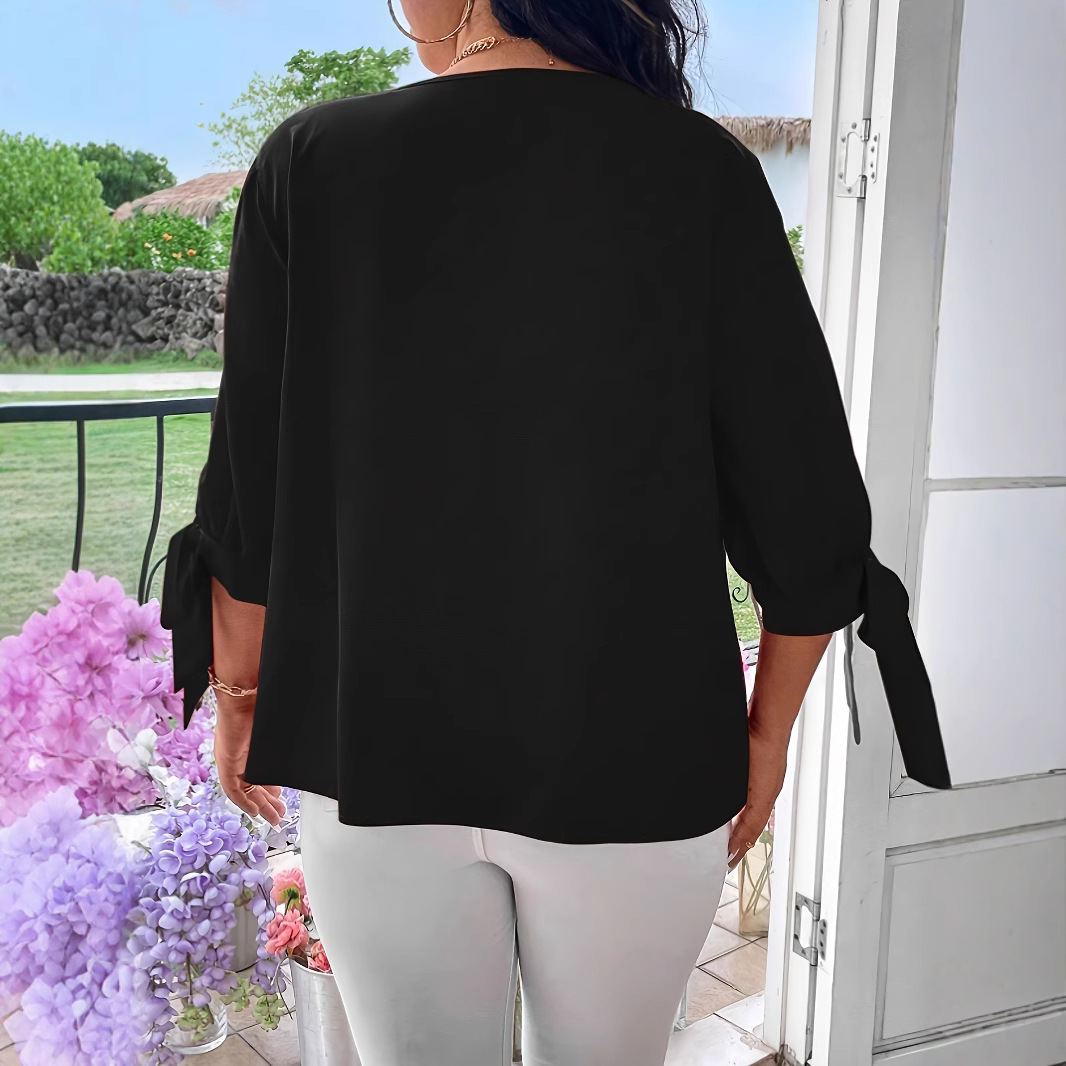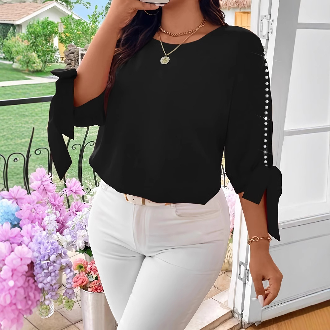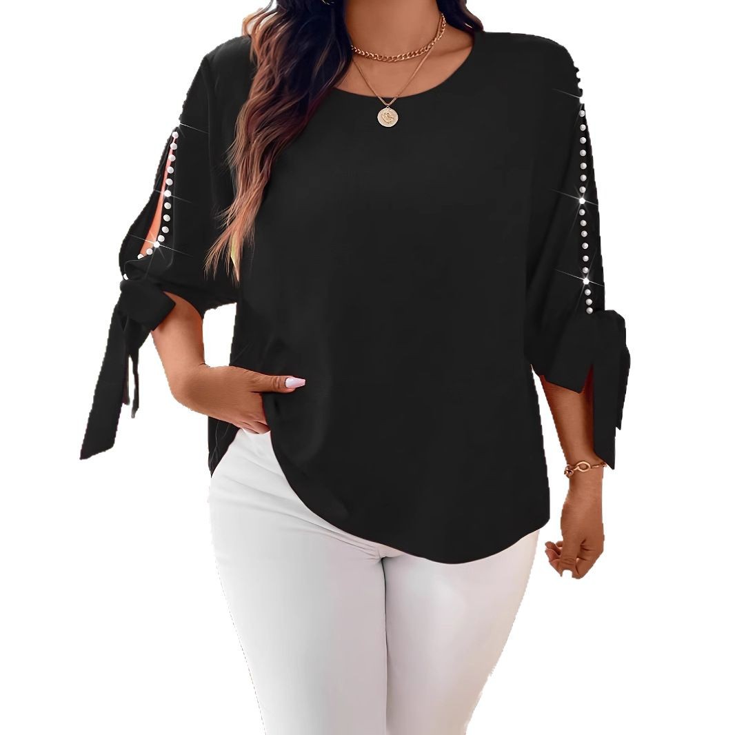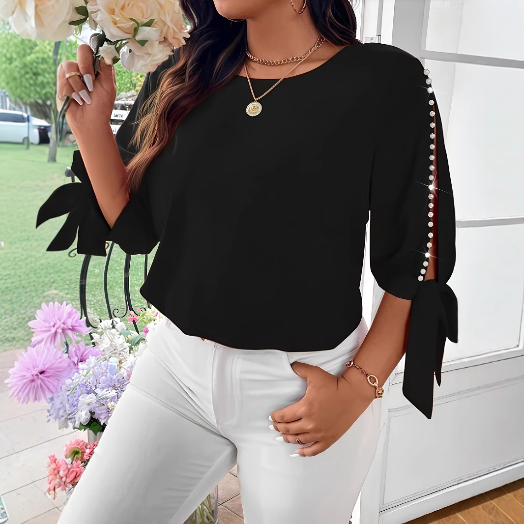 Women's Solid Color Woven Off-shoulder Pearl Tie Casual Shirt