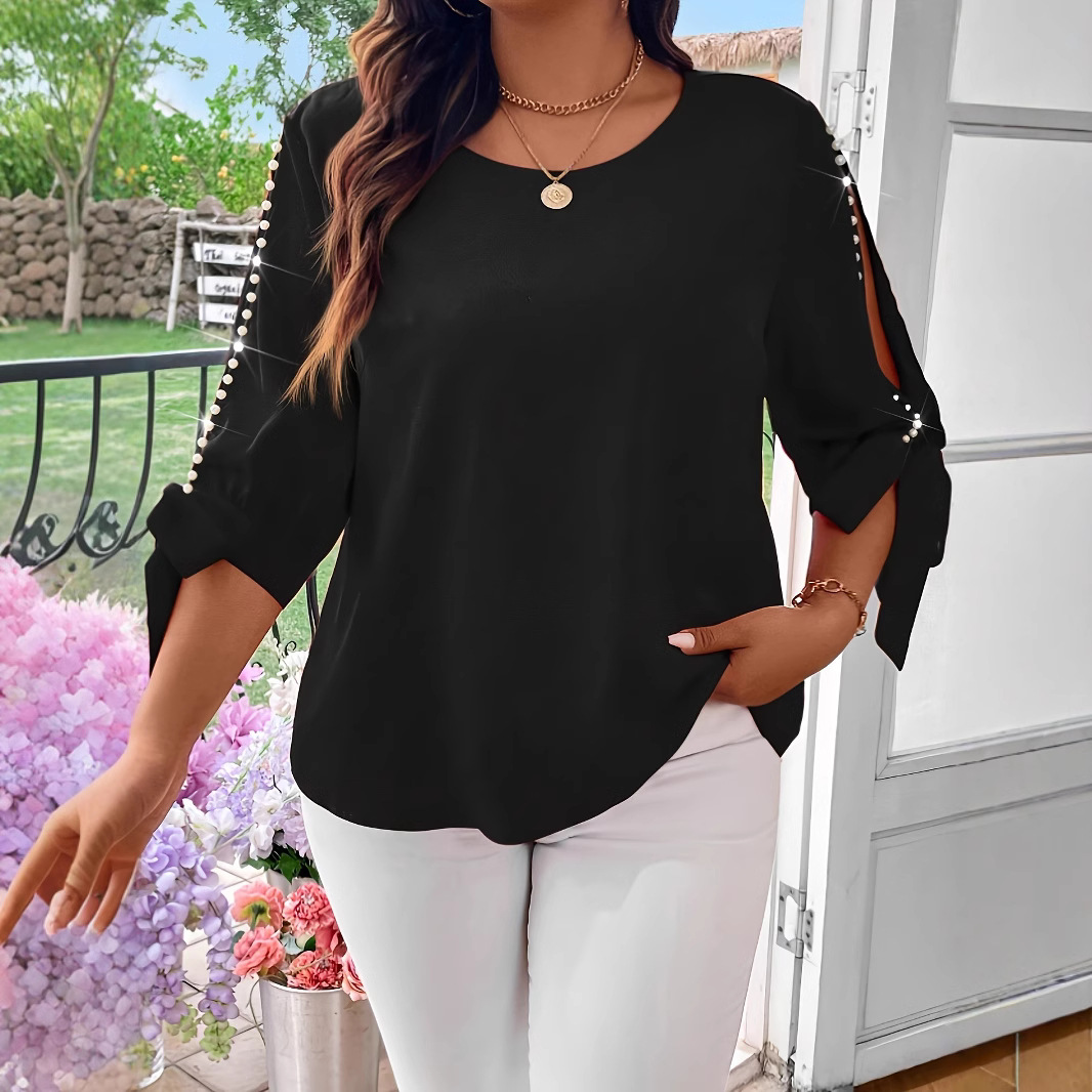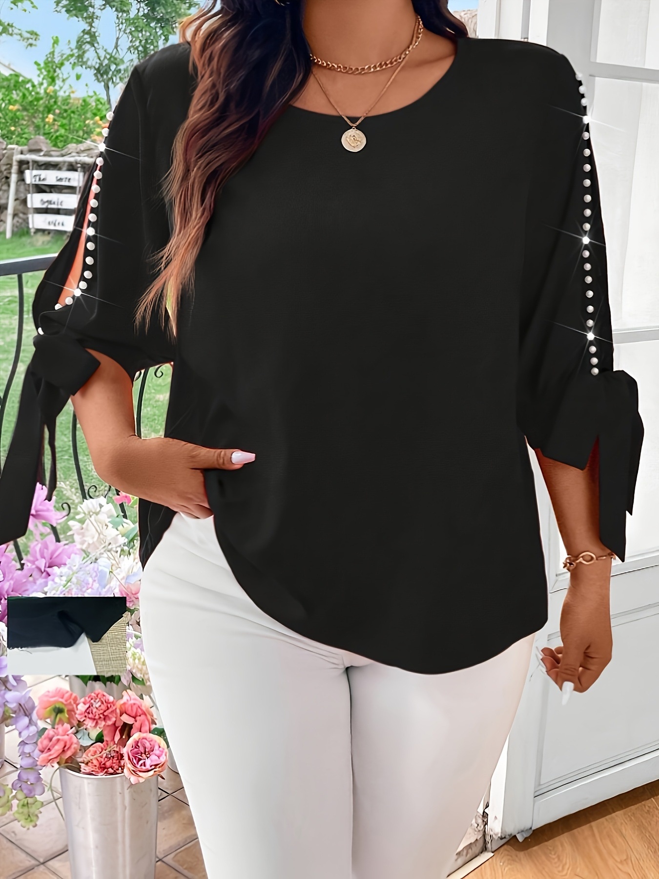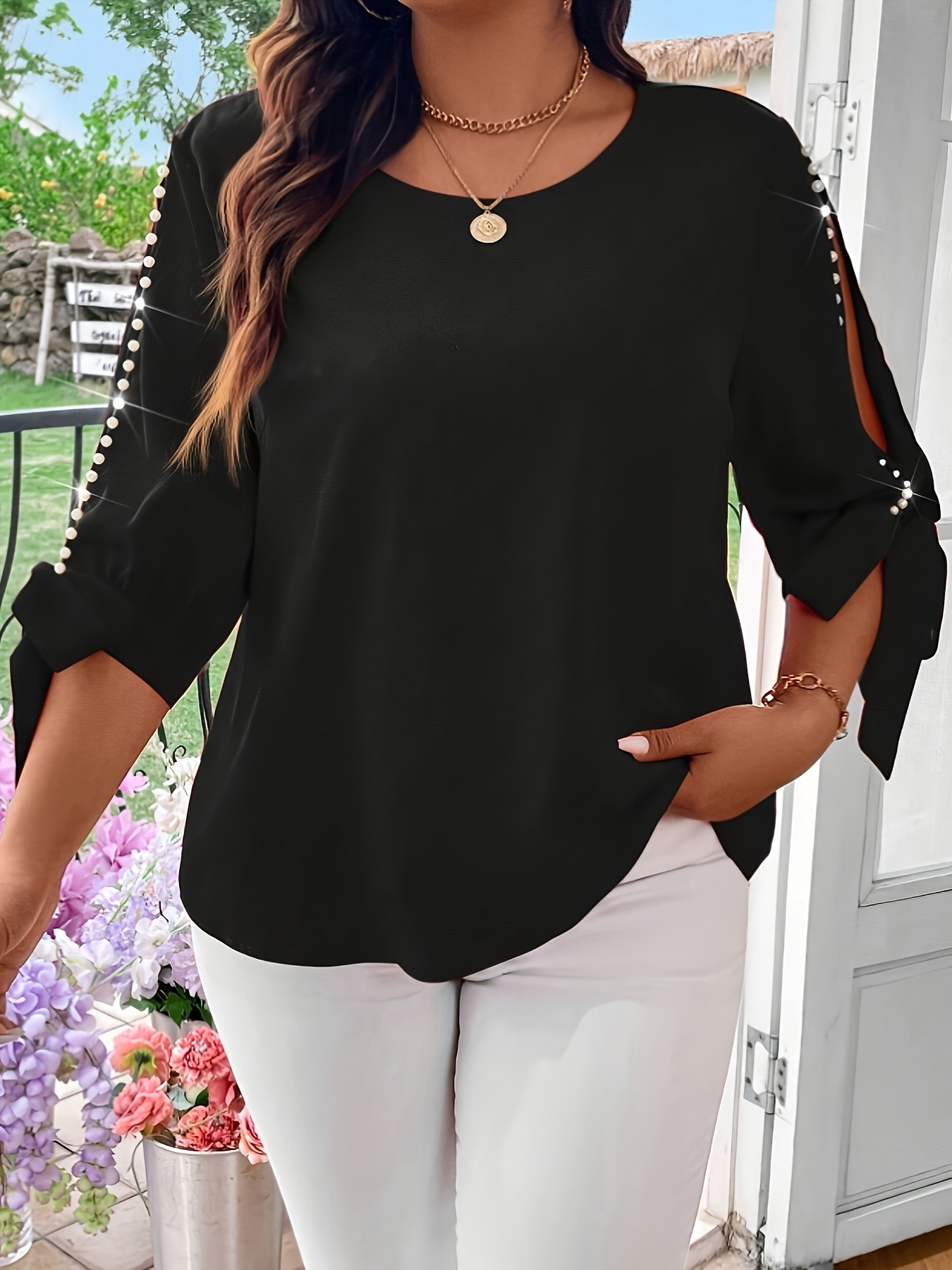 Women's Solid Color Woven Off-shoulder Pearl Tie Casual Shirt