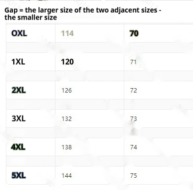Size: 0XL, 1XL, 2XL, 3XL, 4XL, 5XL