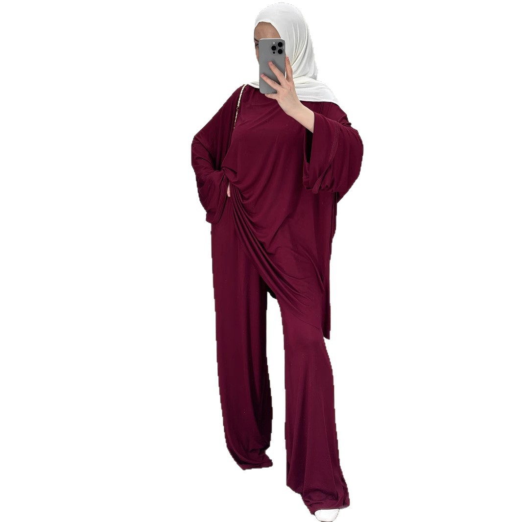 Womens Solid-Colored Loose And Comfortable Top Casual Fashion Set
