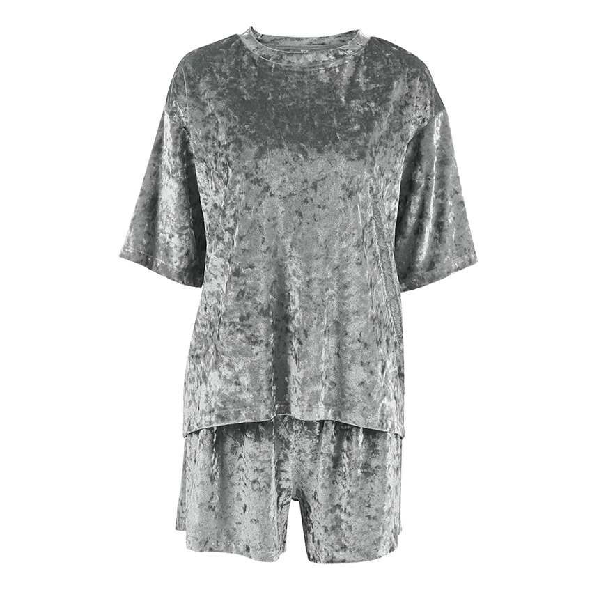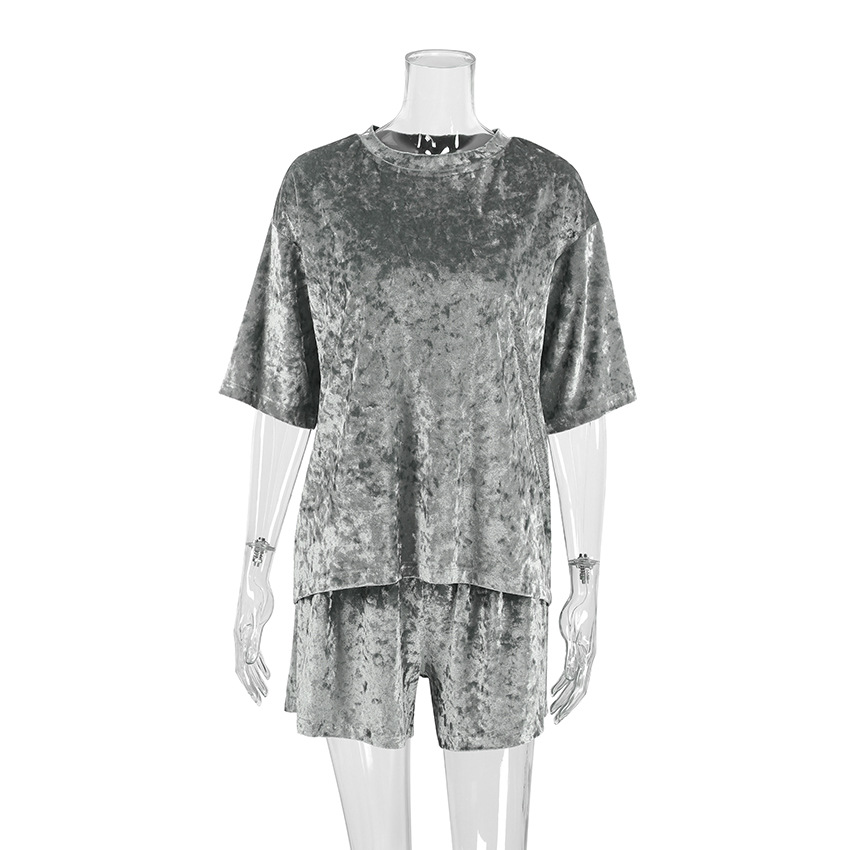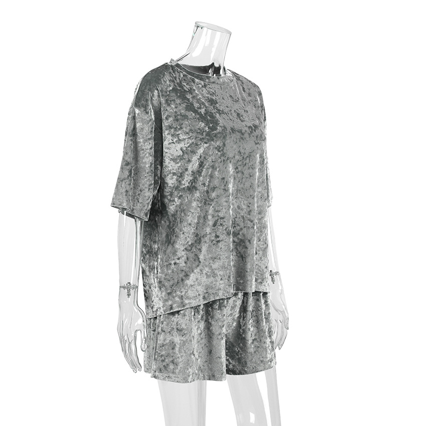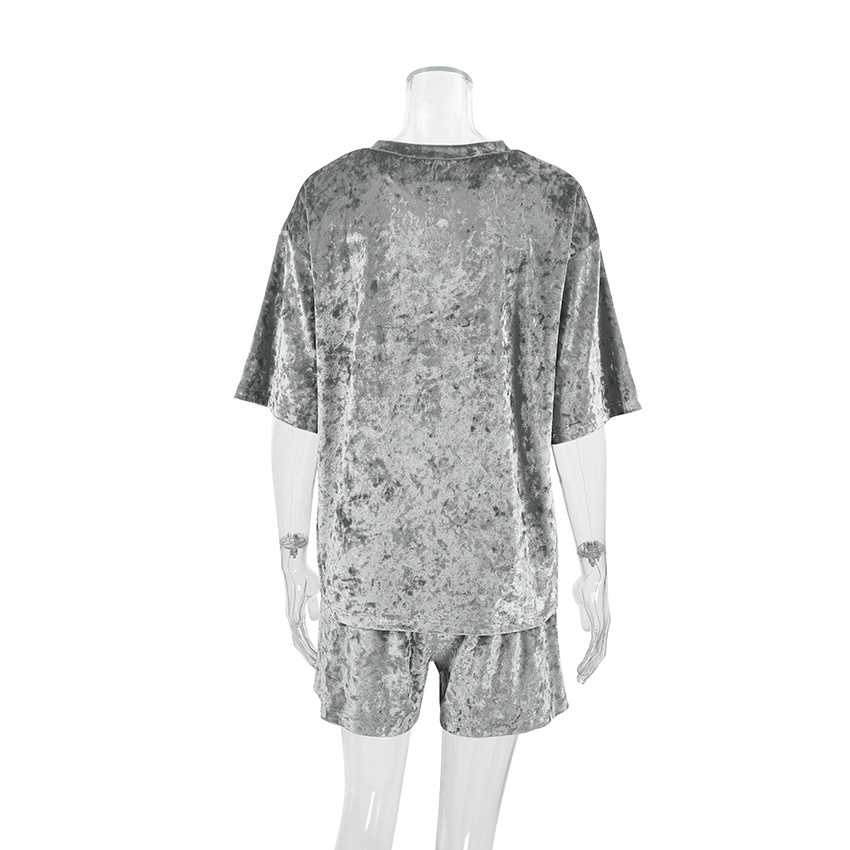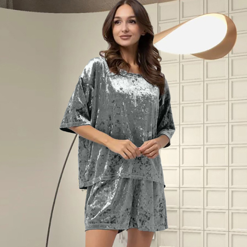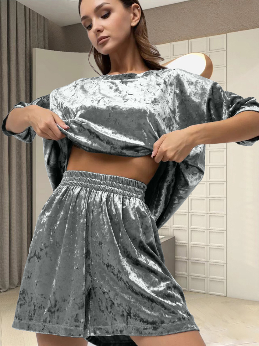 Women's Solid-Colored Three-Quarter-Sleeve Top And Shorts Loungewear