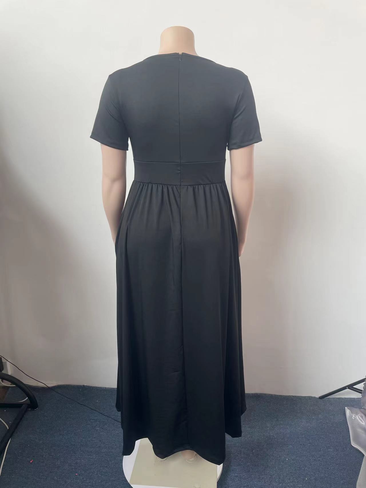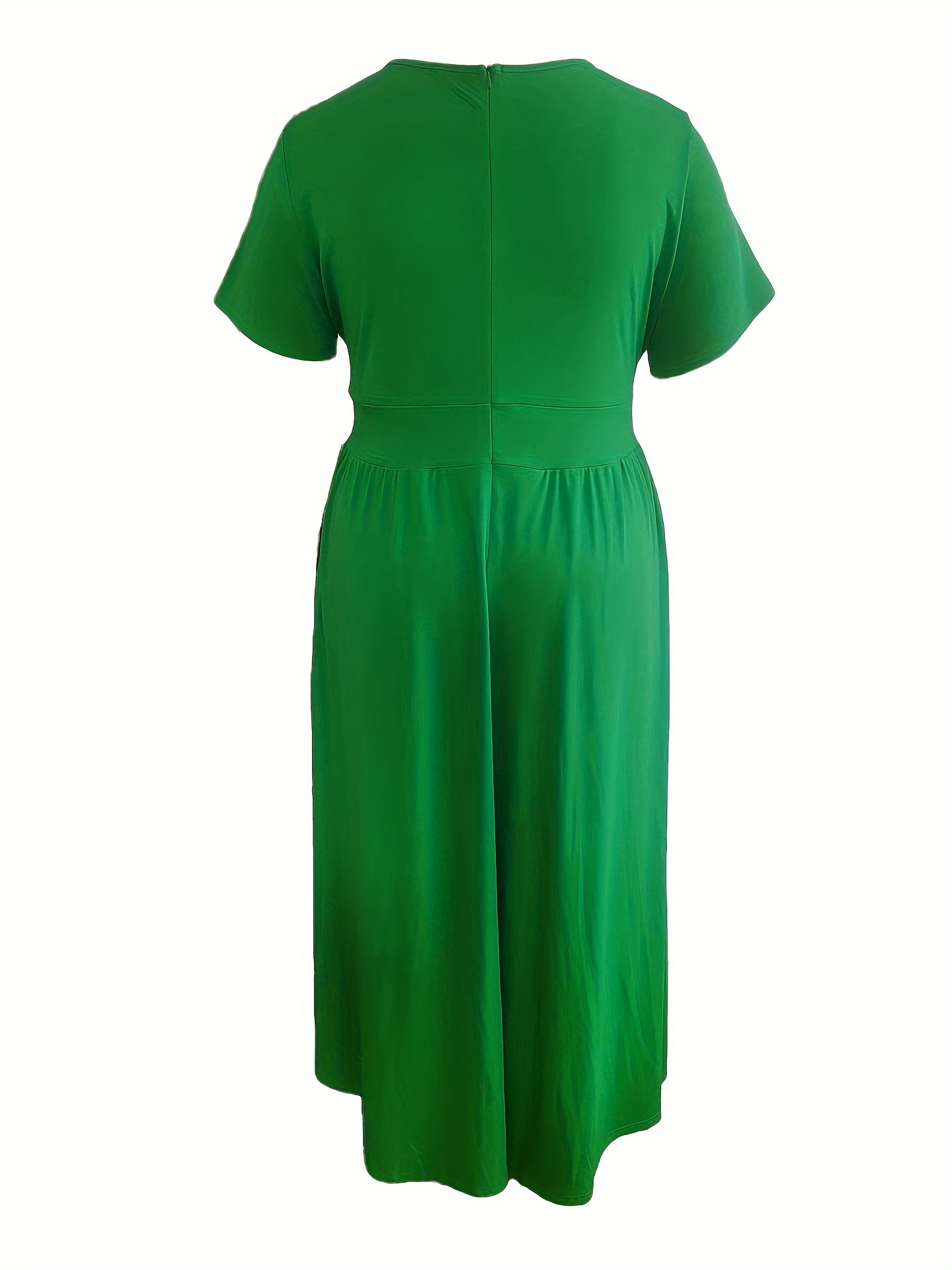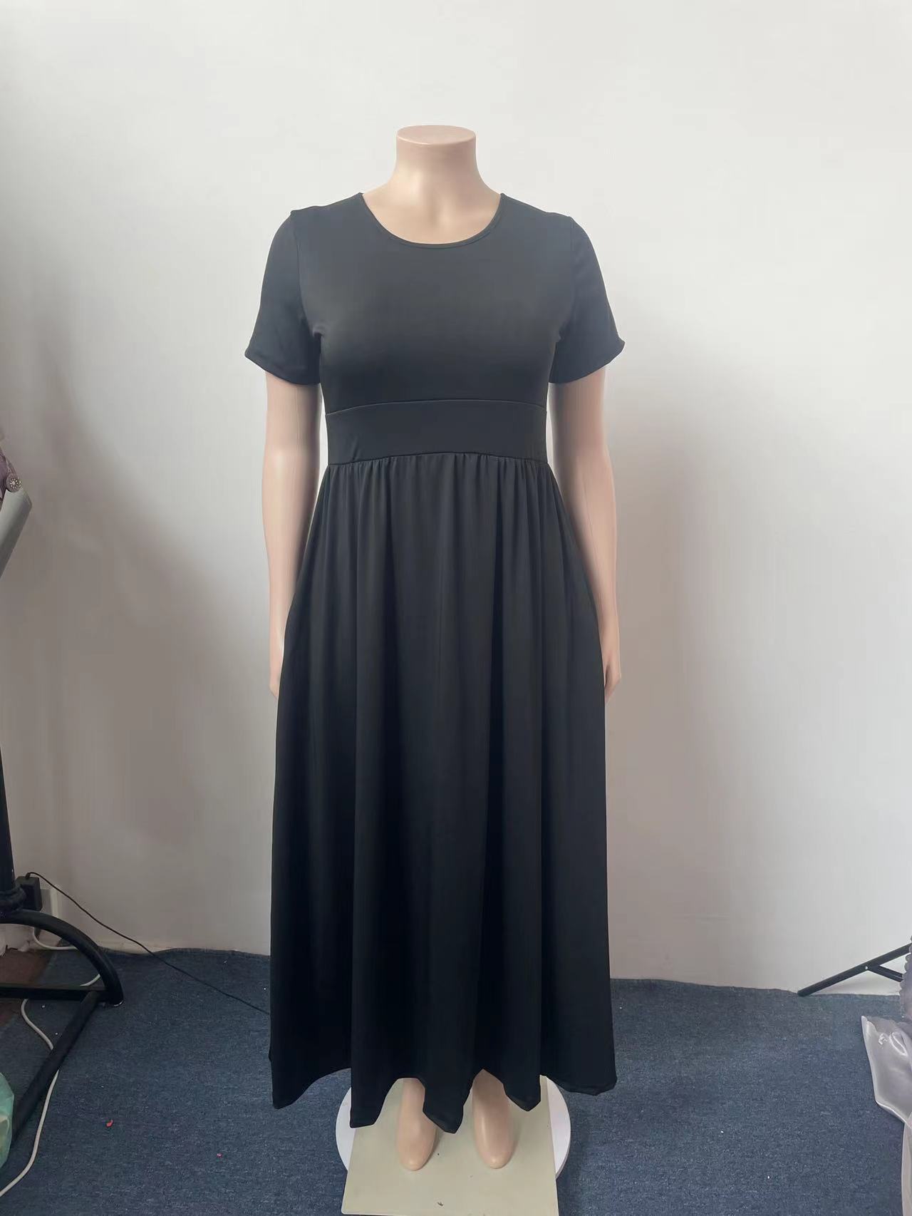 Womens Solid-Colored Waist-Cinching Casual Dress
