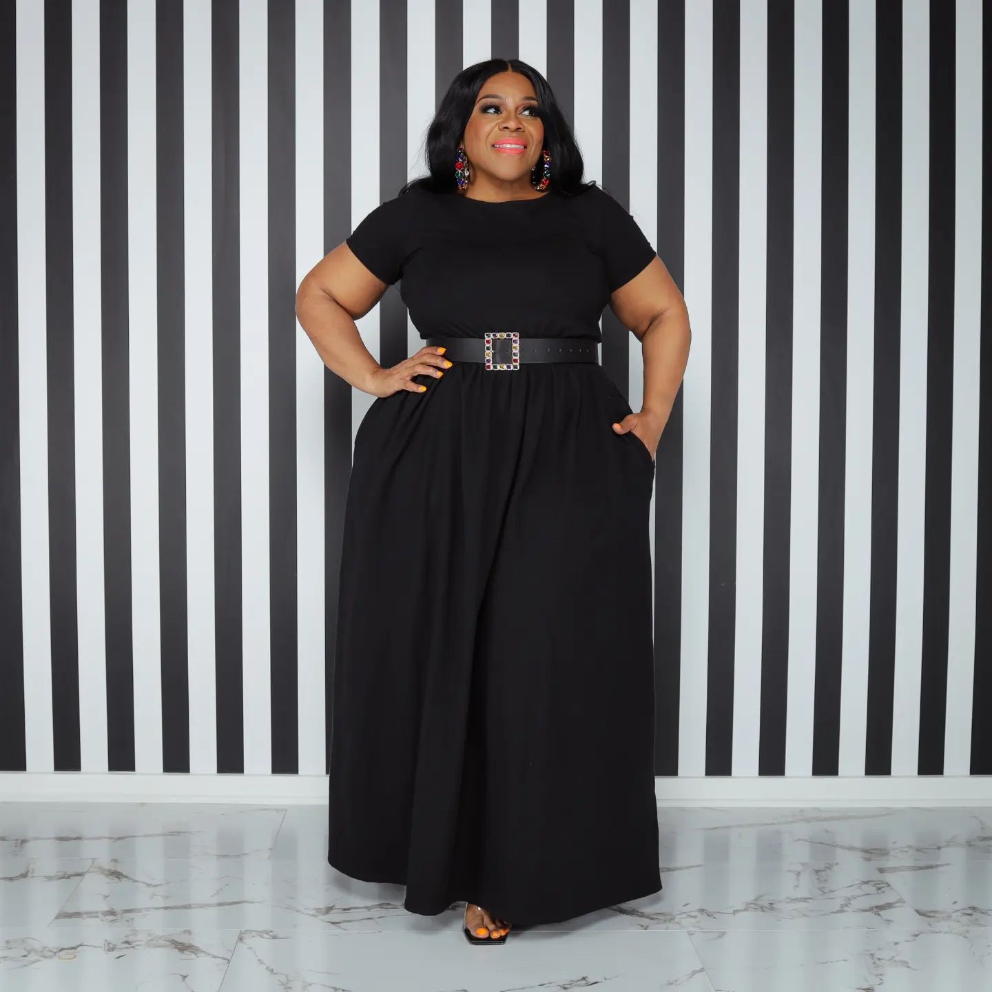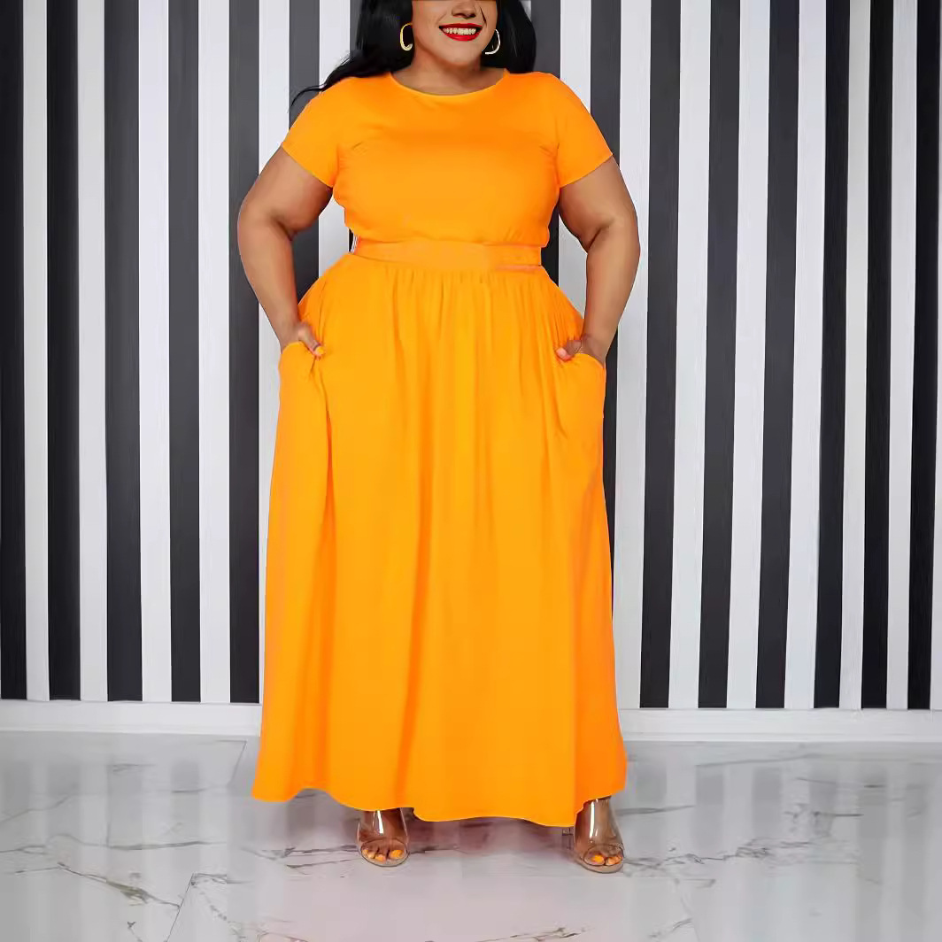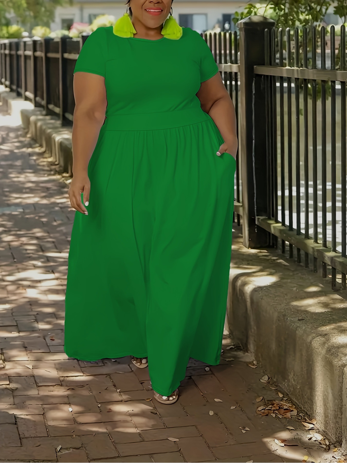 Womens Solid-Colored Waist-Cinching Casual Dress