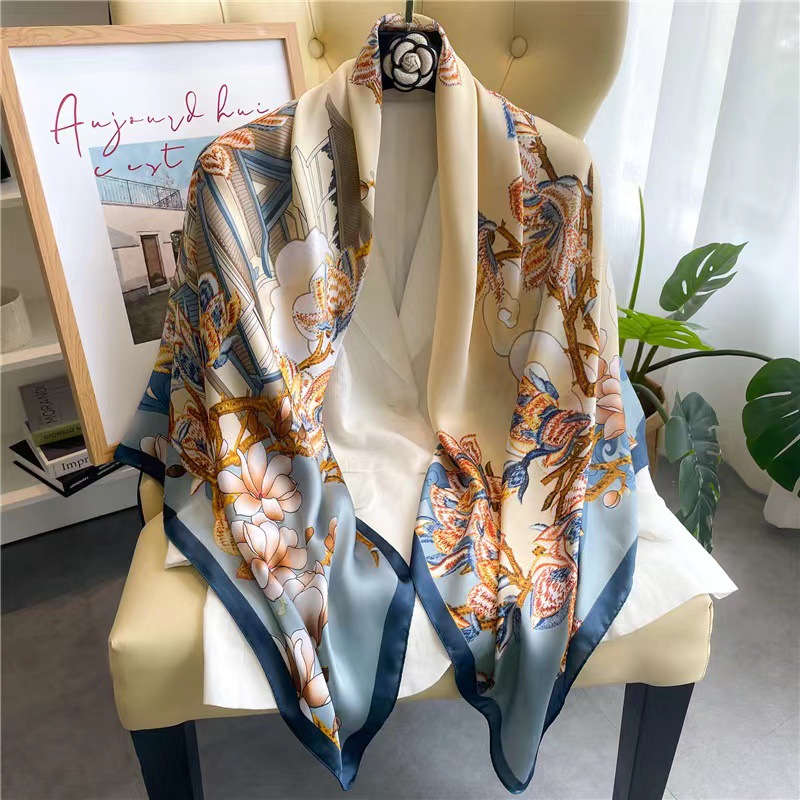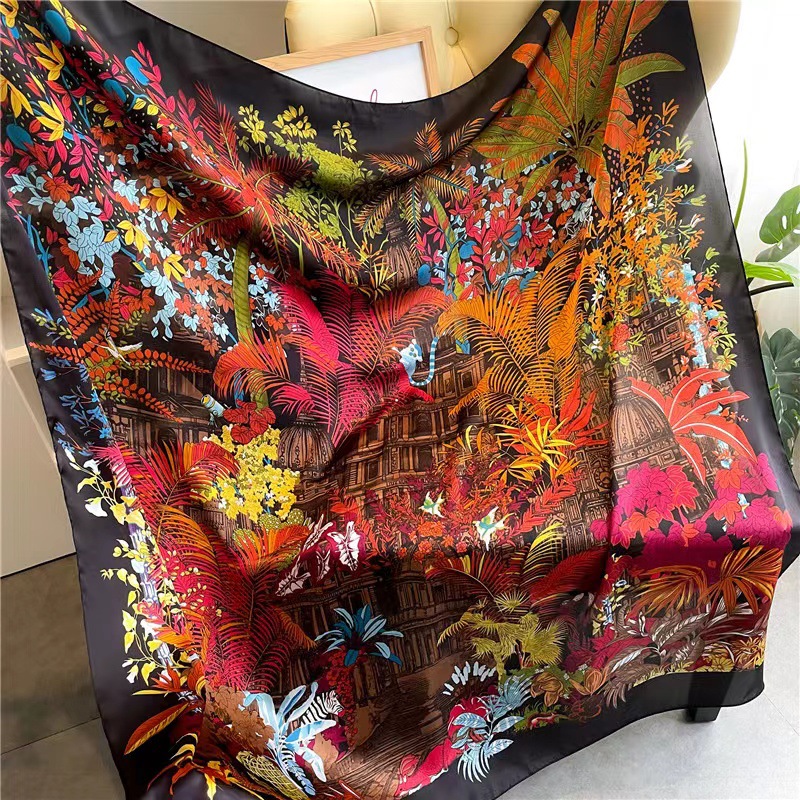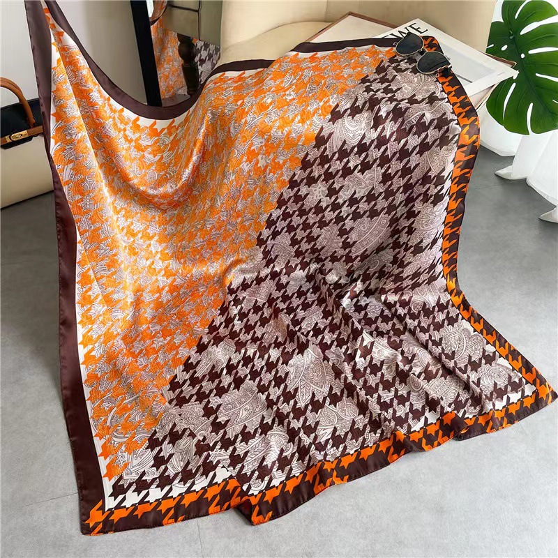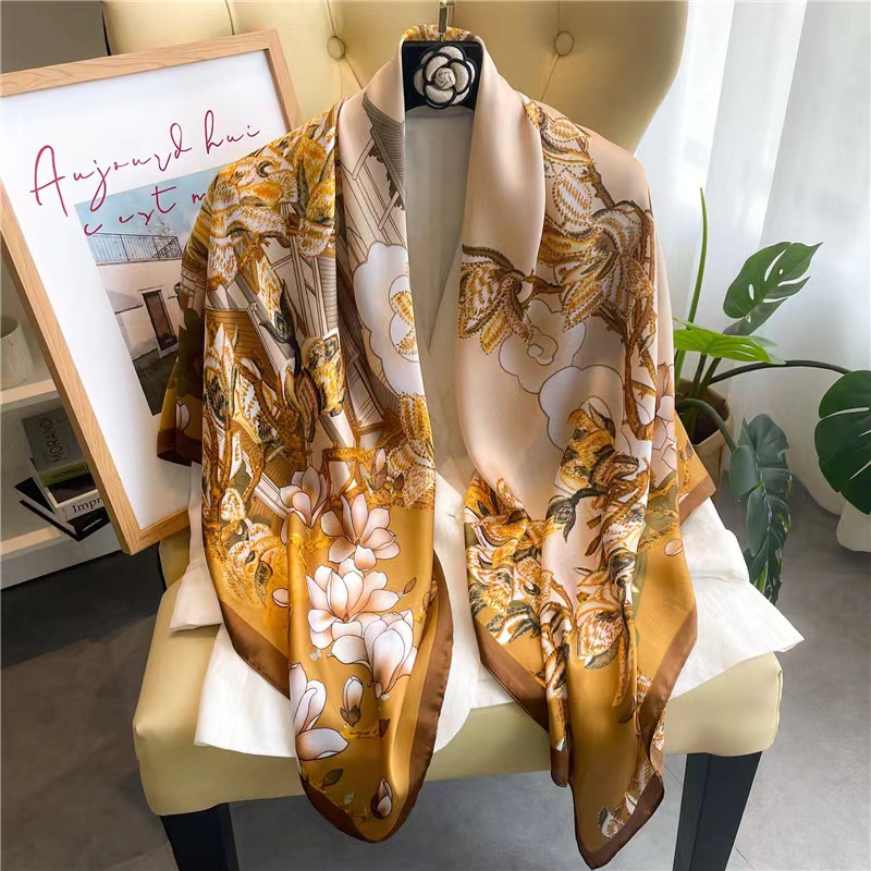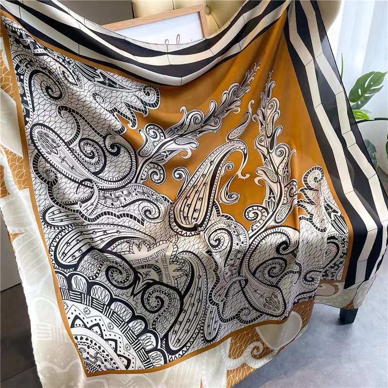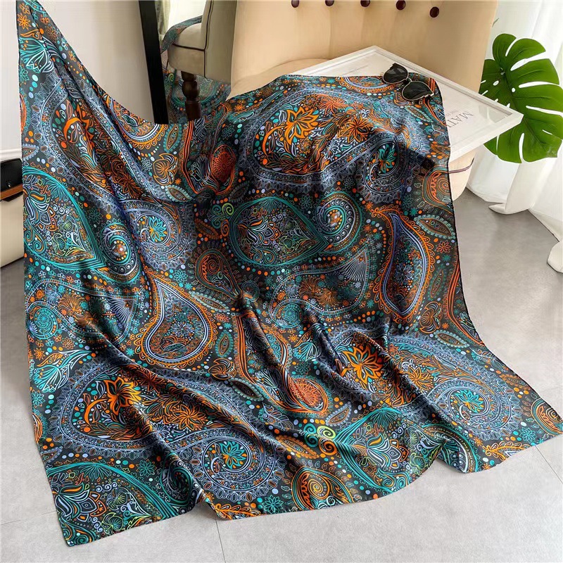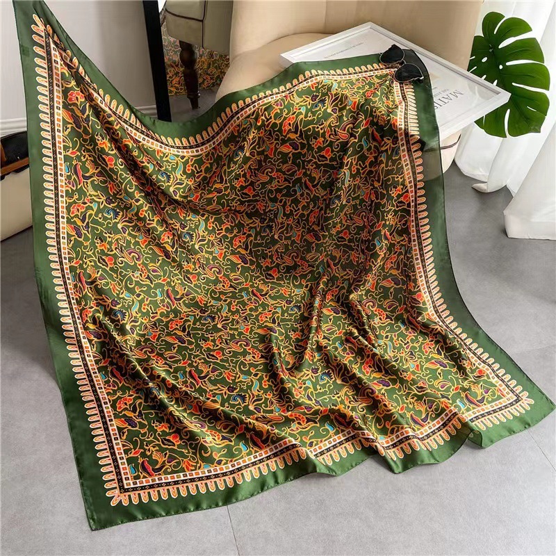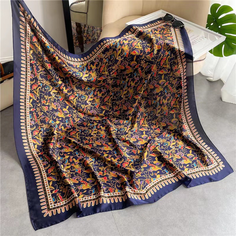 Women's Square Scarf Cashew Satin Print