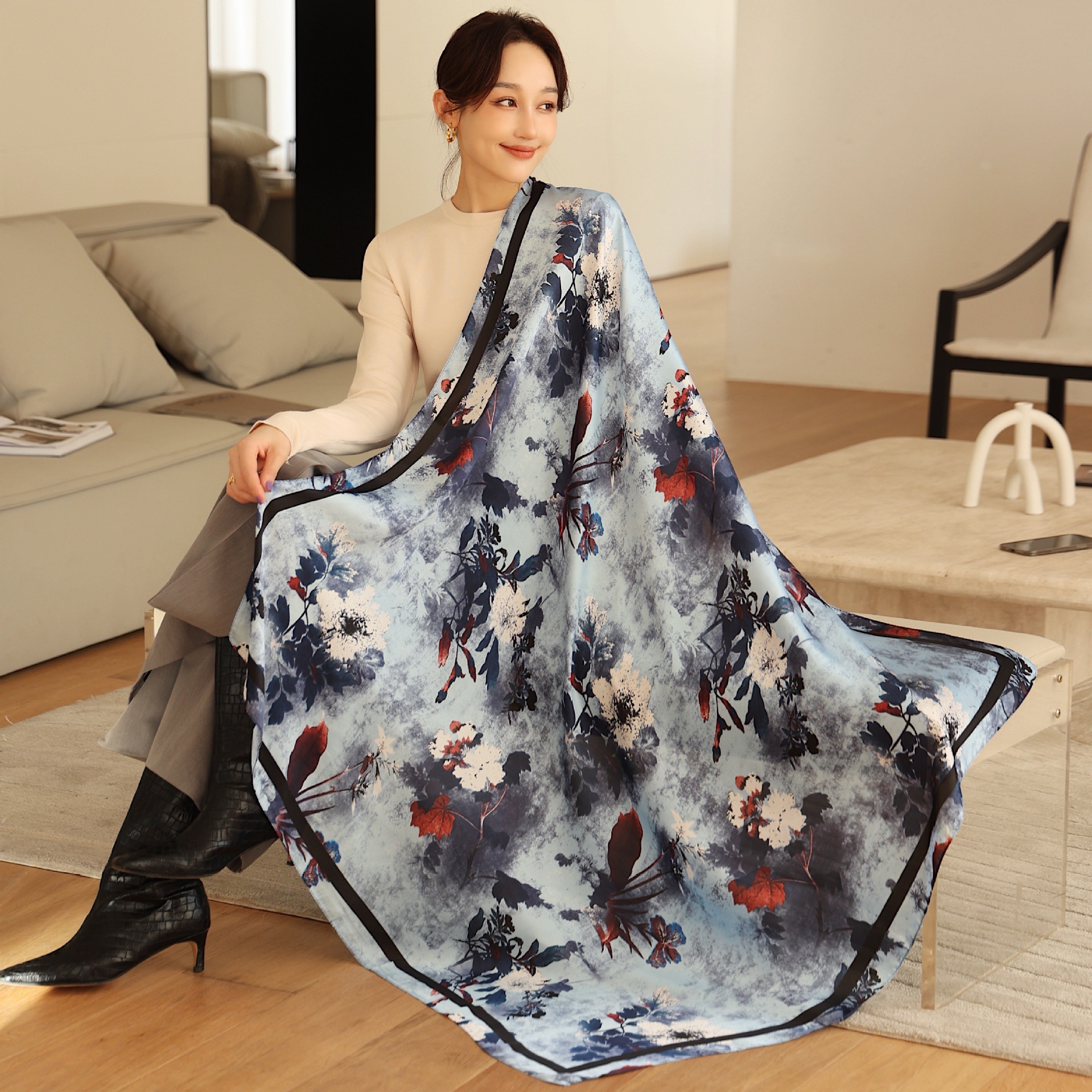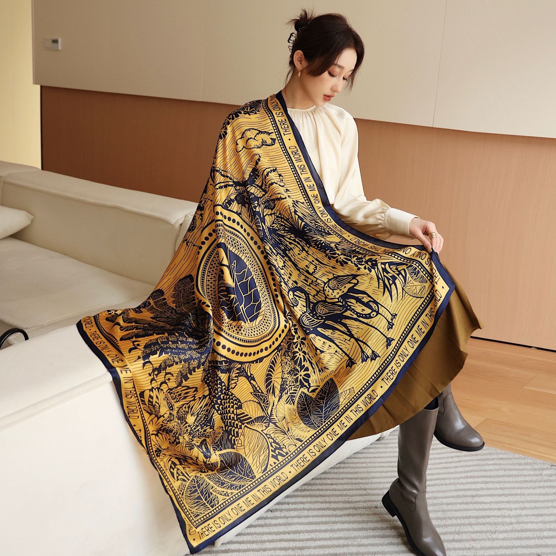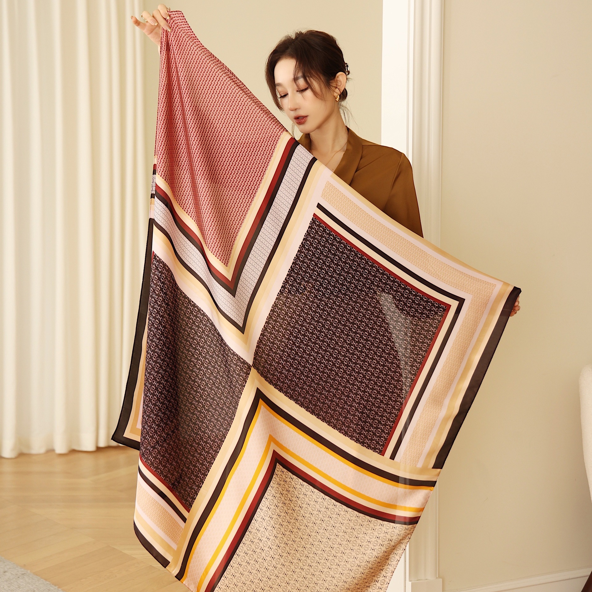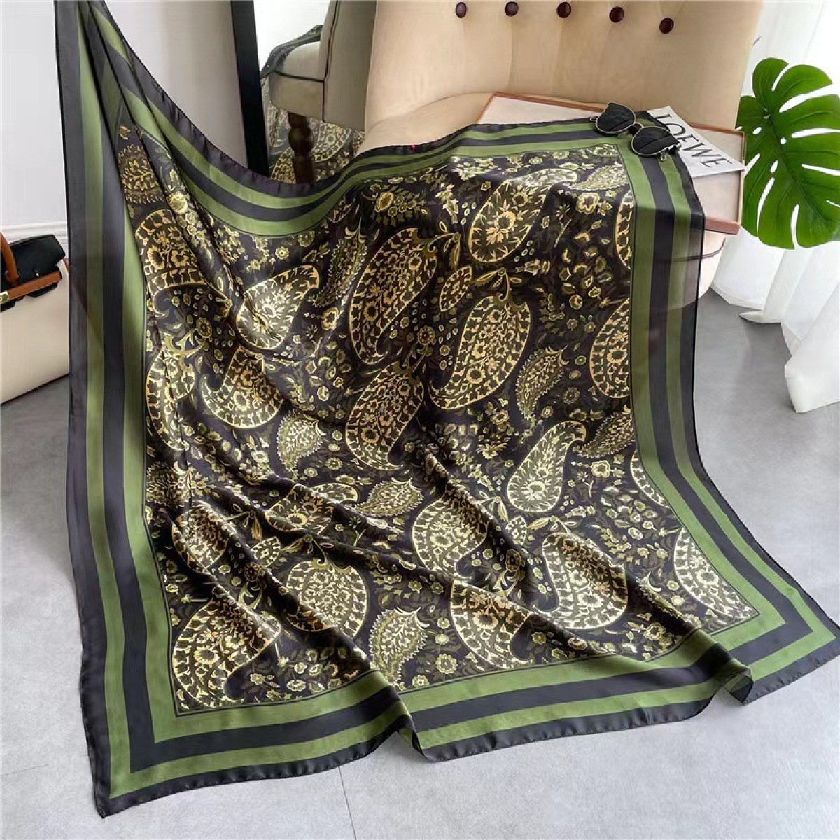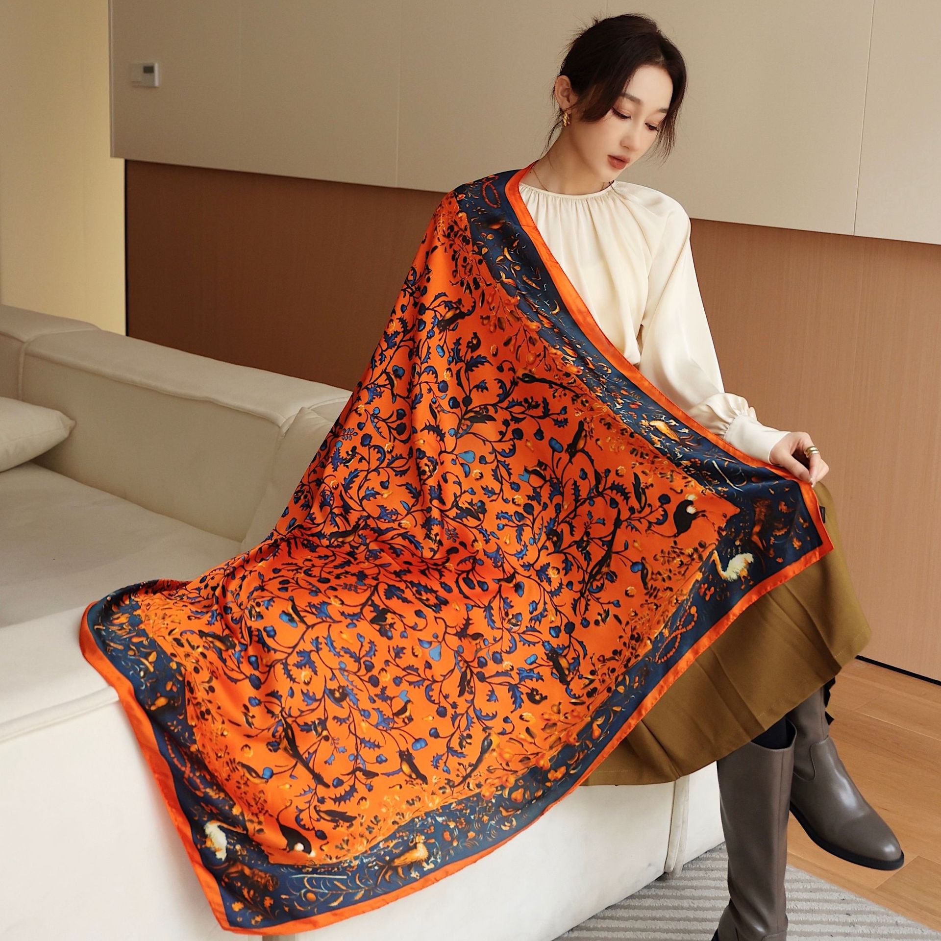 Women's Square Scarf Cashew Satin Print