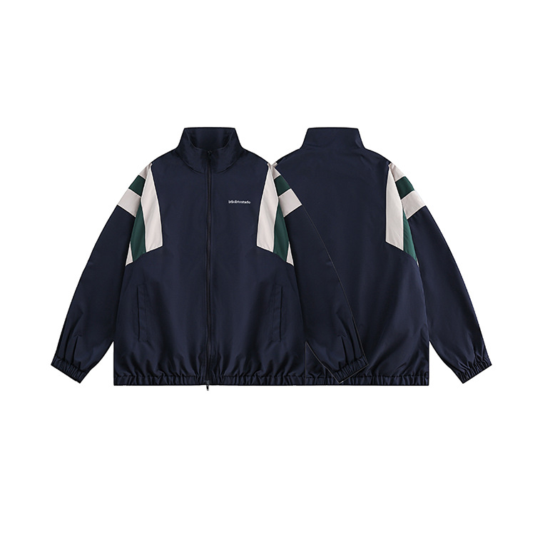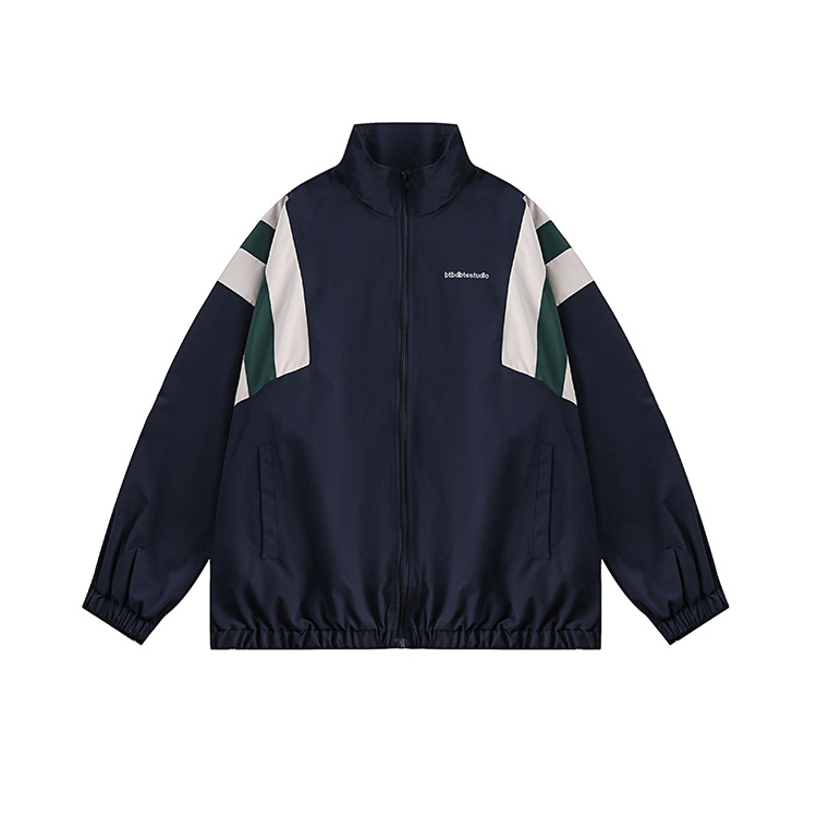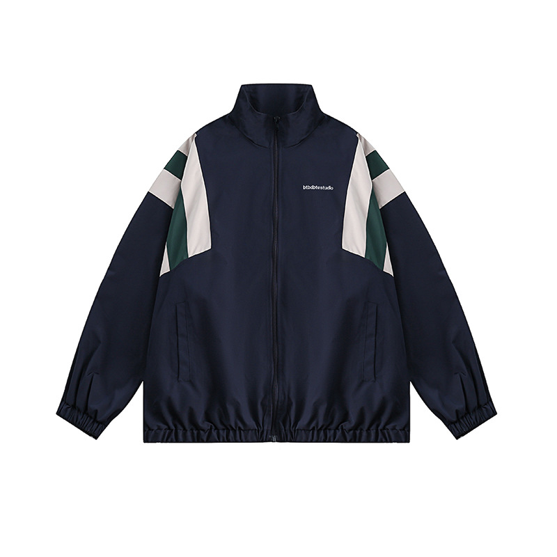 Women's Stand Collar College Style Loose Zip Multi-color Coat