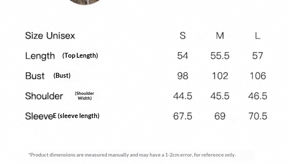 Sizes: S, M, L