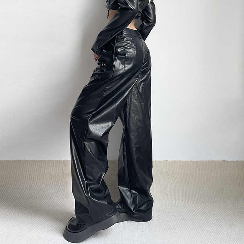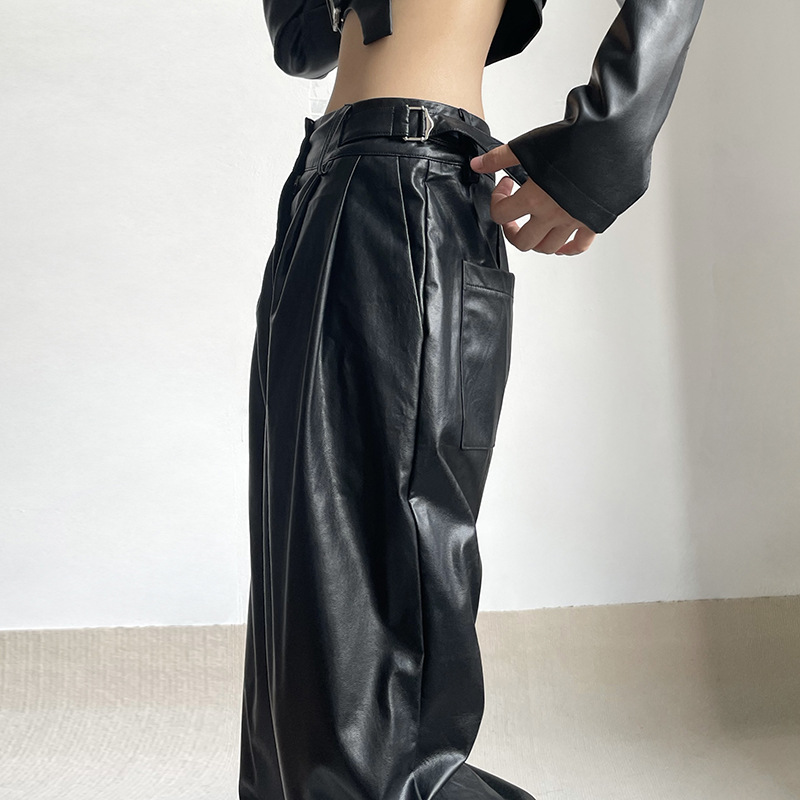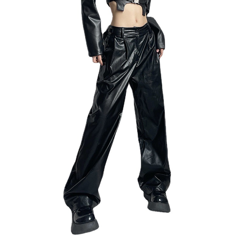 Women's Straight Low Waist Loose Casual Leather Pants