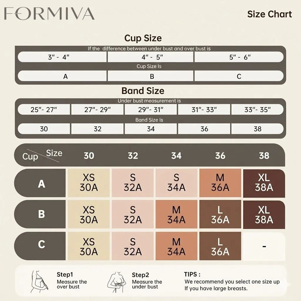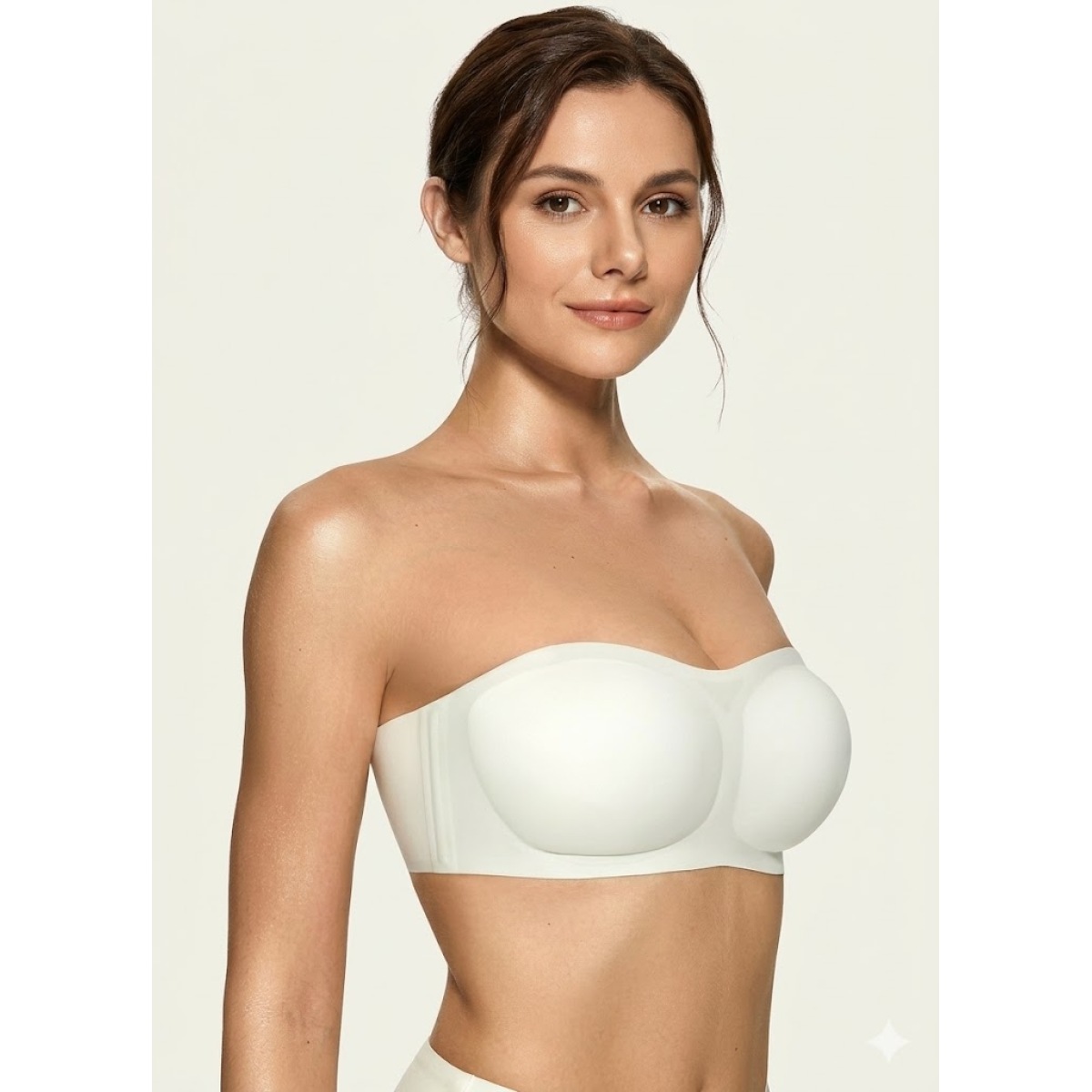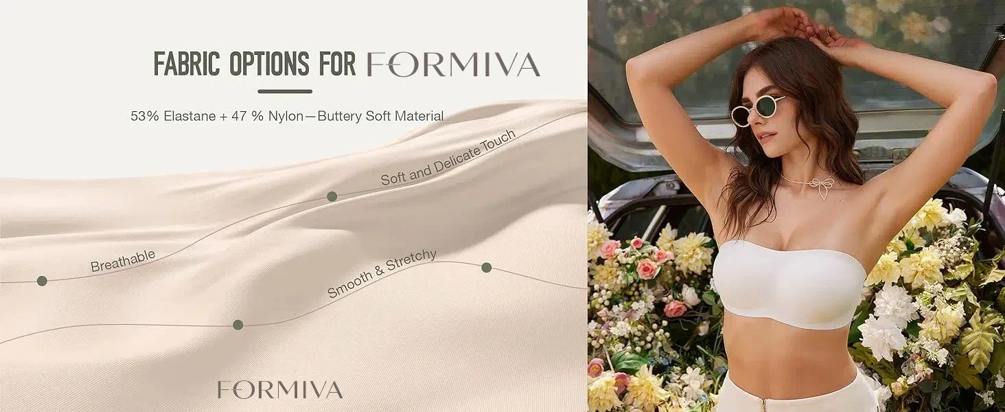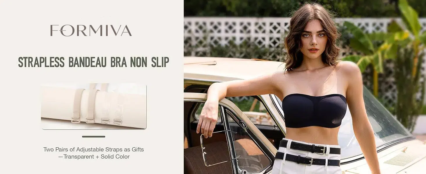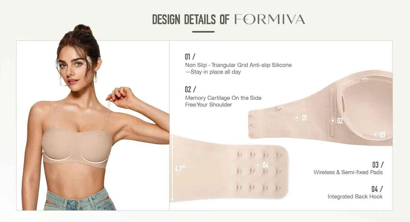 Non-Slip Bandeau Bras with Silicone - The Formiva strapless bra with a thin triangular grid of anti-slip silica gel ensures your breasts stay securely in place all day and frees your shoulders. With memory cartilage on the side, it effectively supports your breasts, allowing you to move with confidence.