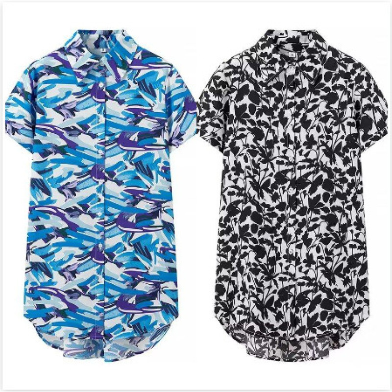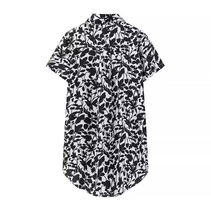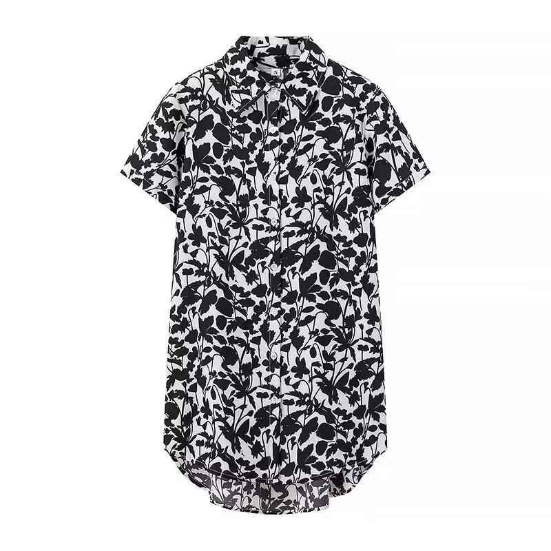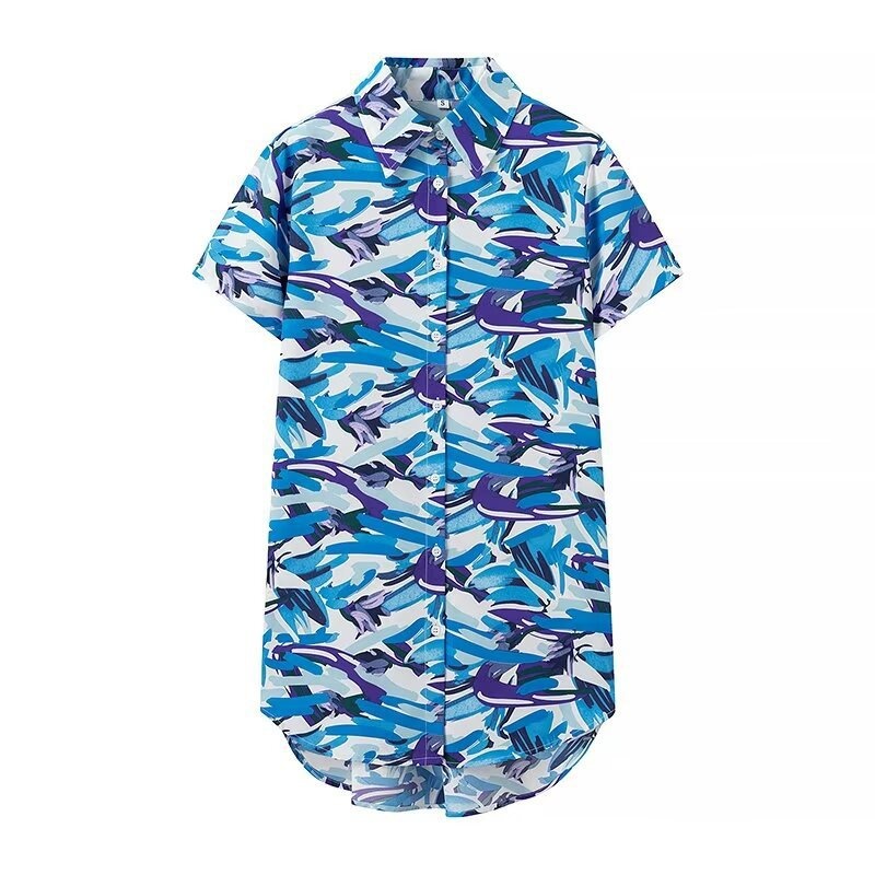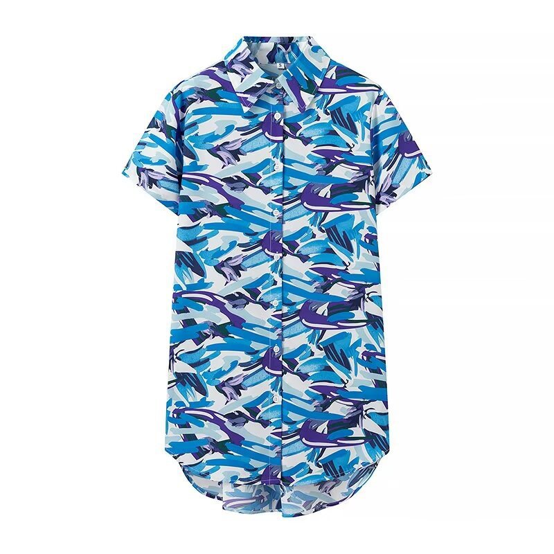 Women's Street Fashion Printed Short Sleeve Mid-length Shirt