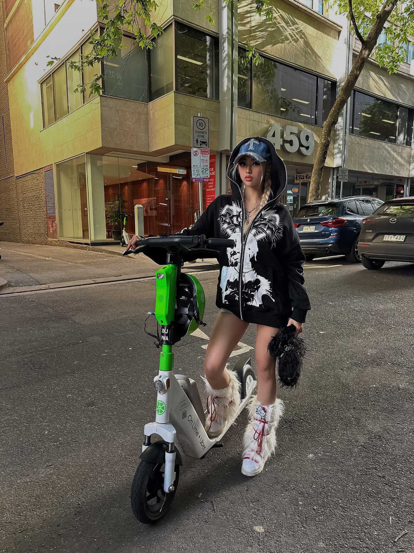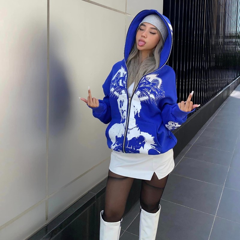 Women's Street Hip-hop Girl Printed Zipper Hooded Sweater