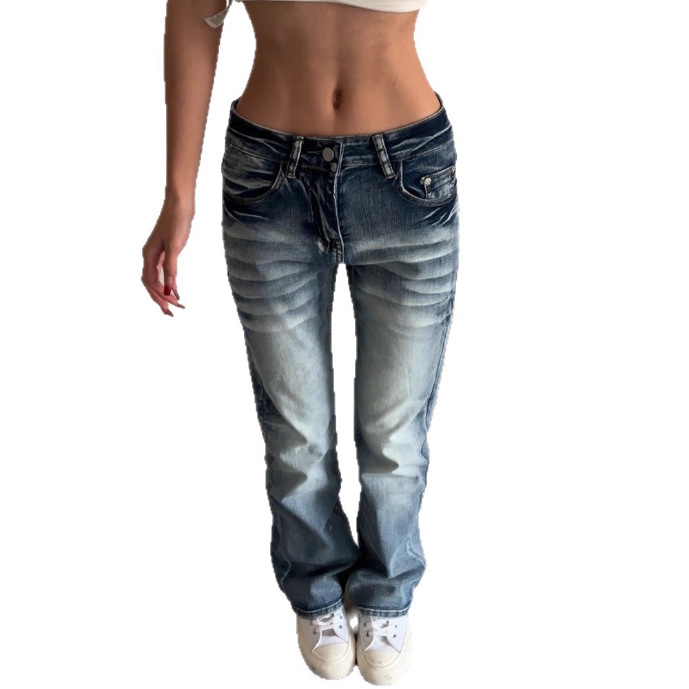 Womens Stretch Low-Waist Slim Straight Jeans