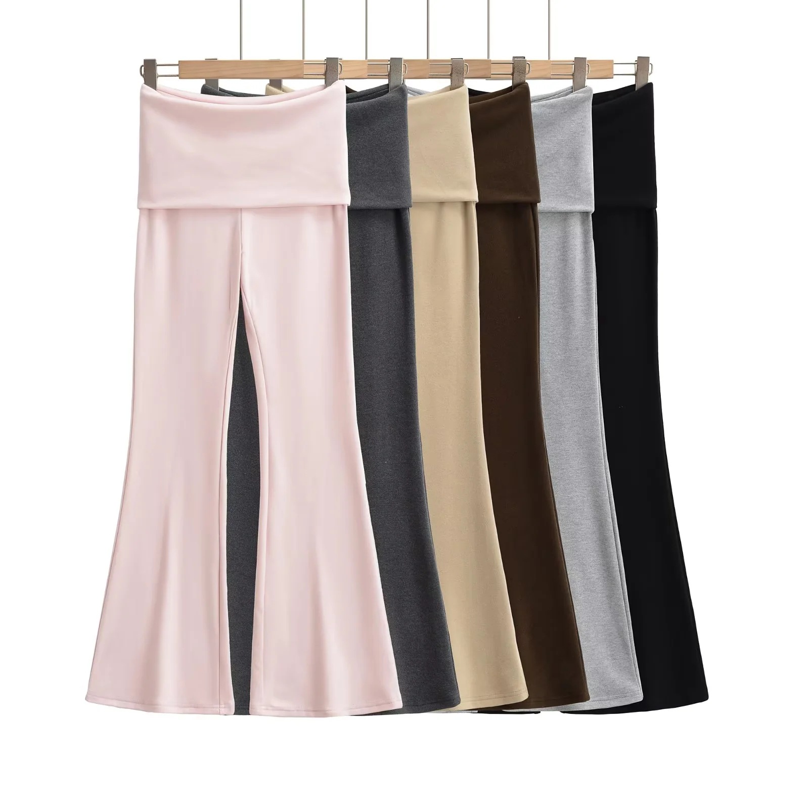 Trendy Elements: Solid color, patchwork, flared leg, drapey fit