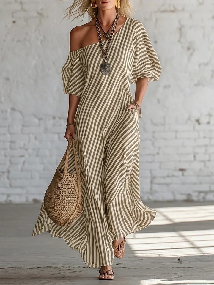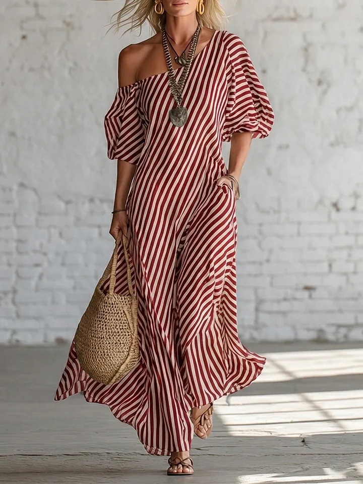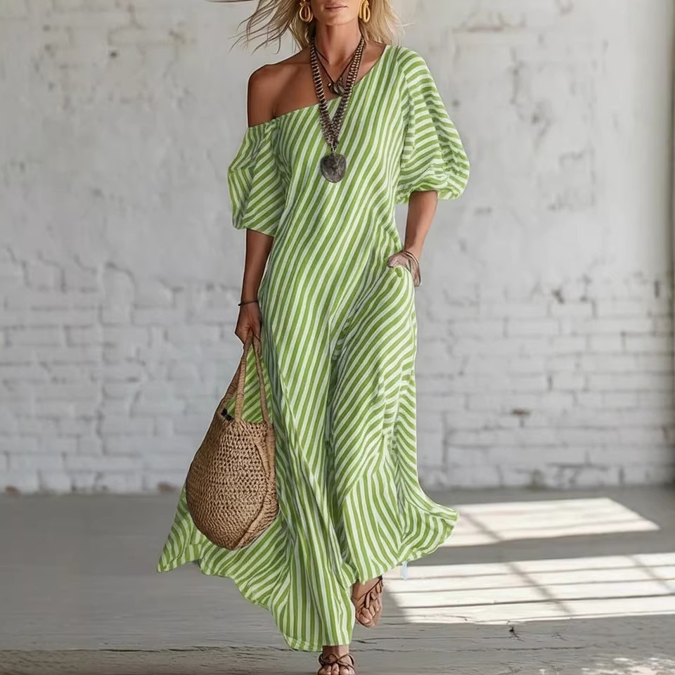 Womens Striped Off-shoulder Dress