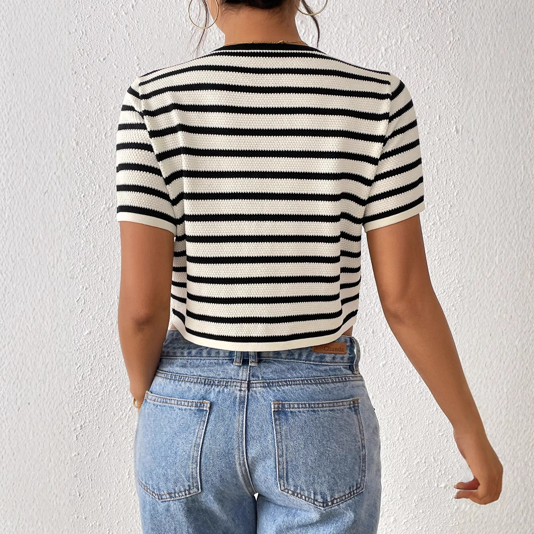 Women's Striped Tie-dye Spliced Fashion Short Sleeve