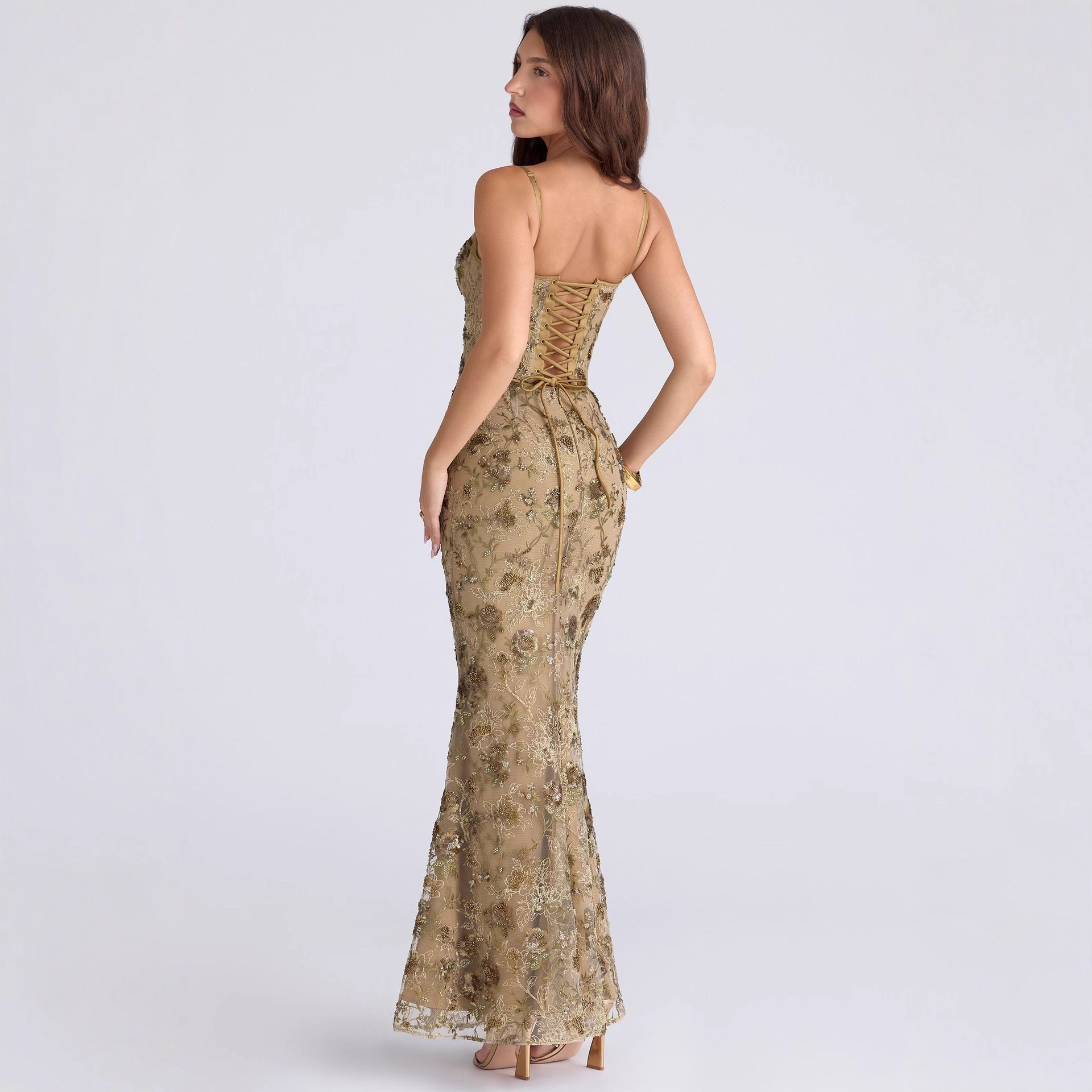 Trendy Elements: Lace-up details, cinched waist, open back