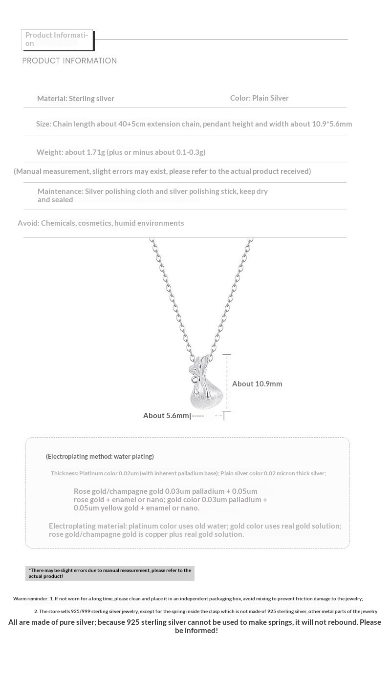 Pendant Material: 99.9% Pure Silver