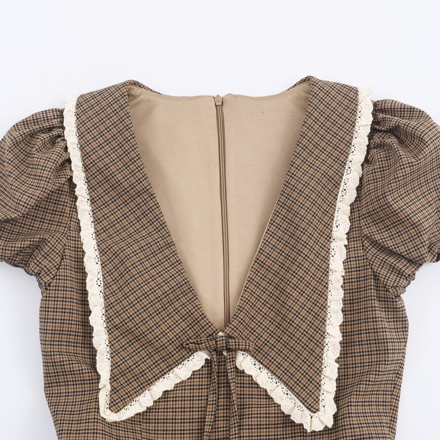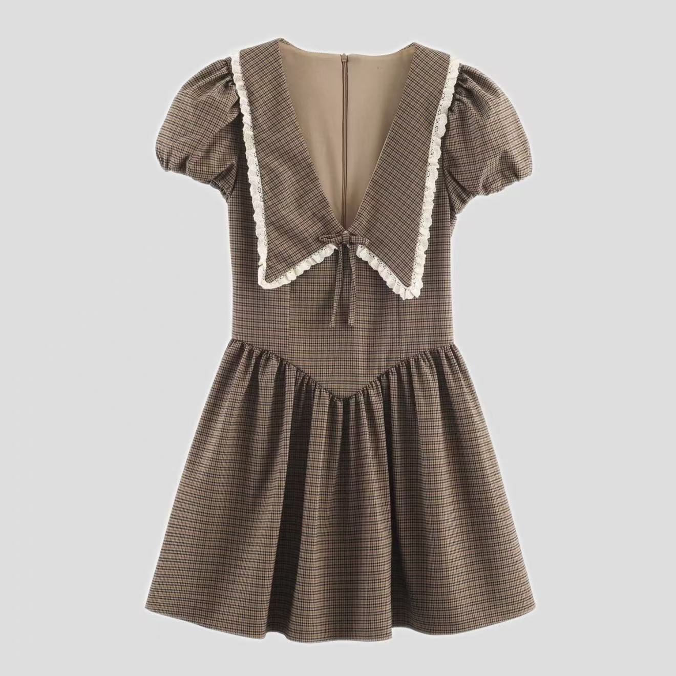 Womens Stylish Elegan Slim-Fit Plaid Lapel Dress