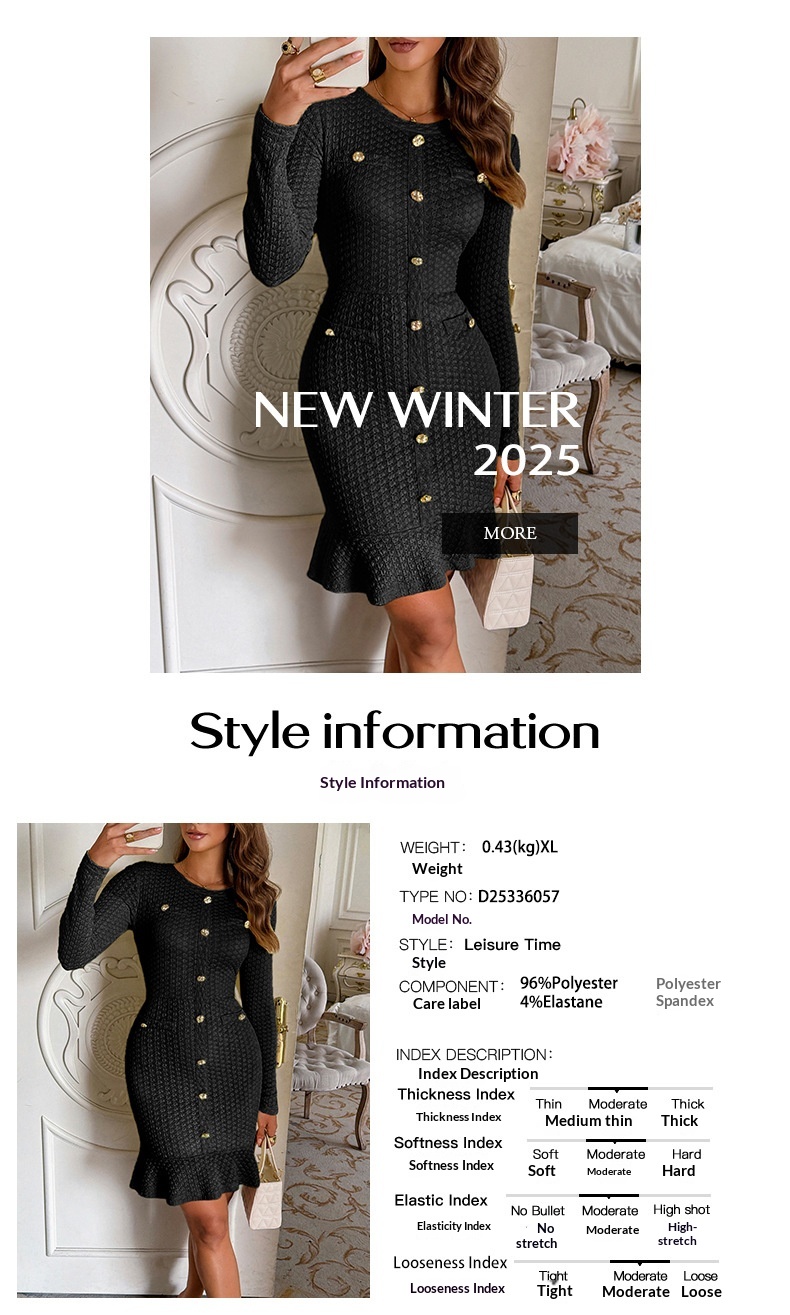 Womens Stylish Figure-hugging Long-sleeve Sheath Dress
