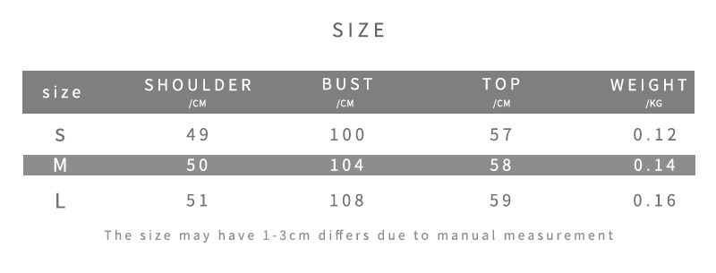 1. Asian sizes are 1 to 2 sizes smaller than European and American people. Choose the larger size if your size between two sizes. Please allow 2-3cm differences due to manual measurement. 2. Please check the size chart carefully before you buy the item, if you don't know how to choose size, please contact our customer service. 3.As you know, the different computers display colors differently, the color of the actual item may vary slightly from the following images.