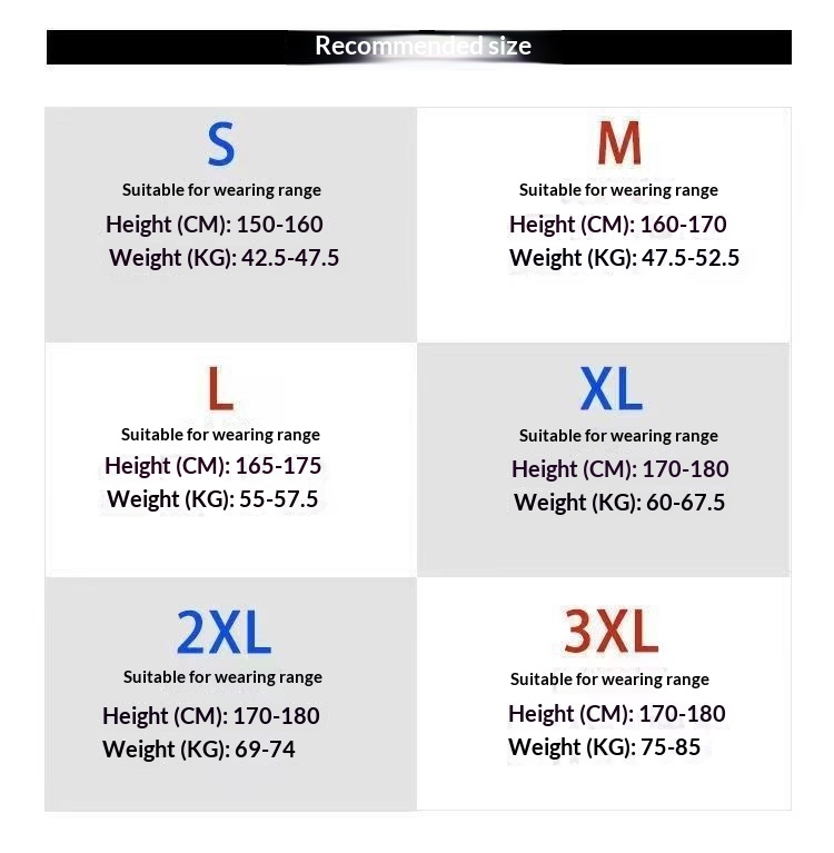 Sizes: S, M, L, XL, XXL