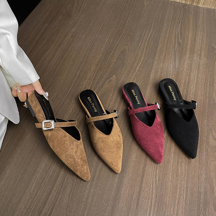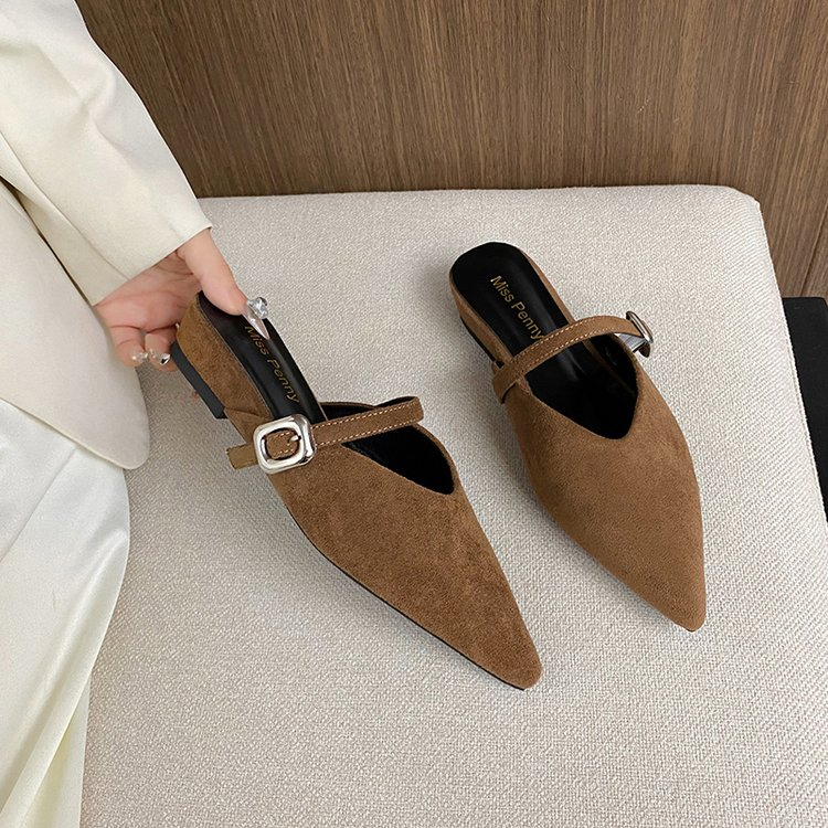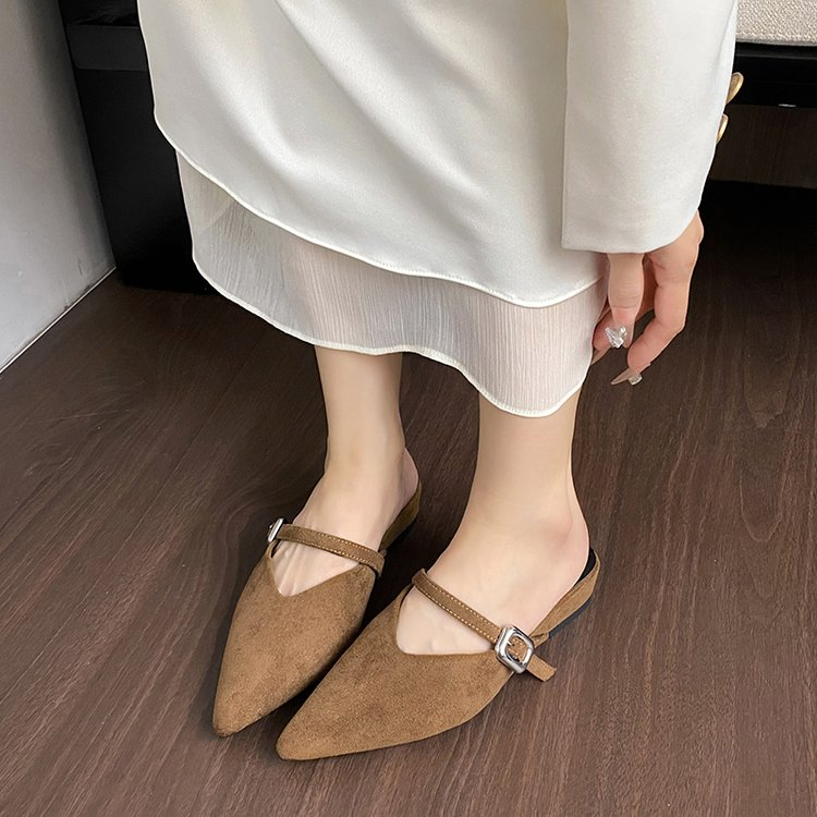 Elevate your everyday look with these chic pointed toe slip-on mules. Featuring a sleek pointed toe, a comfortable low heel, and a convenient adjustable buckle strap, these backless slides offer effortless style and timeless elegance. Perfect for adding a touch of sophisticated charm to summer outings, office wear, or casual daily use.