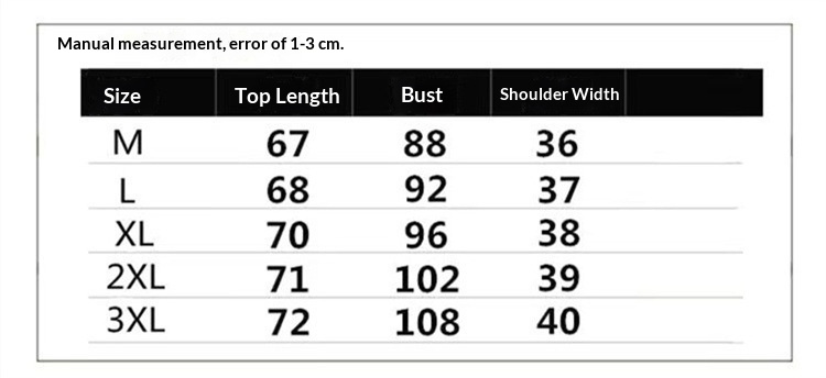 1. Asian sizes are 1 to 2 sizes smaller than European and American people. Choose the larger size if your size between two sizes. Please allow 2-3cm differences due to manual measurement. 2. Please check the size chart carefully before you buy the item, if you don't know how to choose size, please contact our customer service. 3.As you know, the different computers display colors differently, the color of the actual item may vary slightly from the following images.
