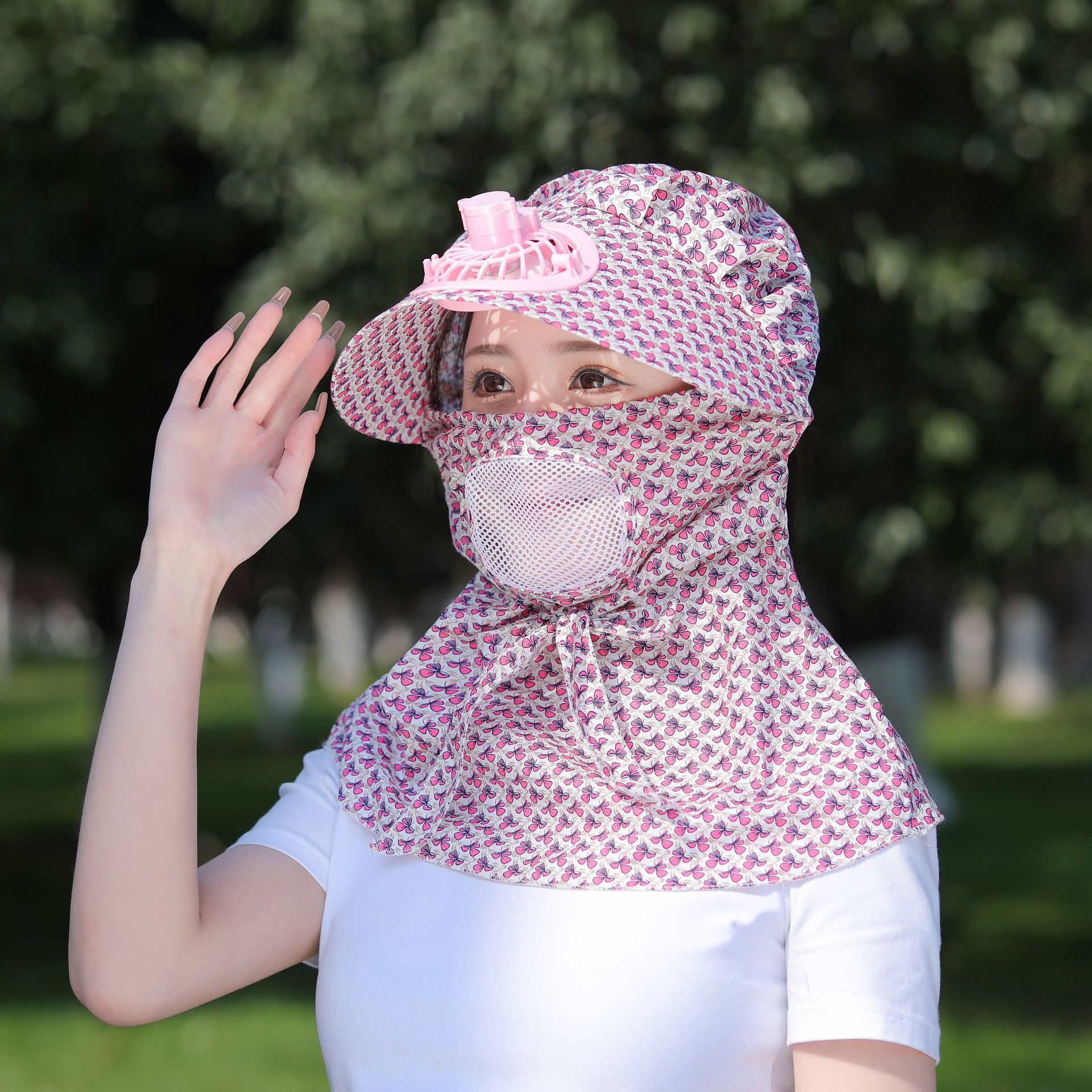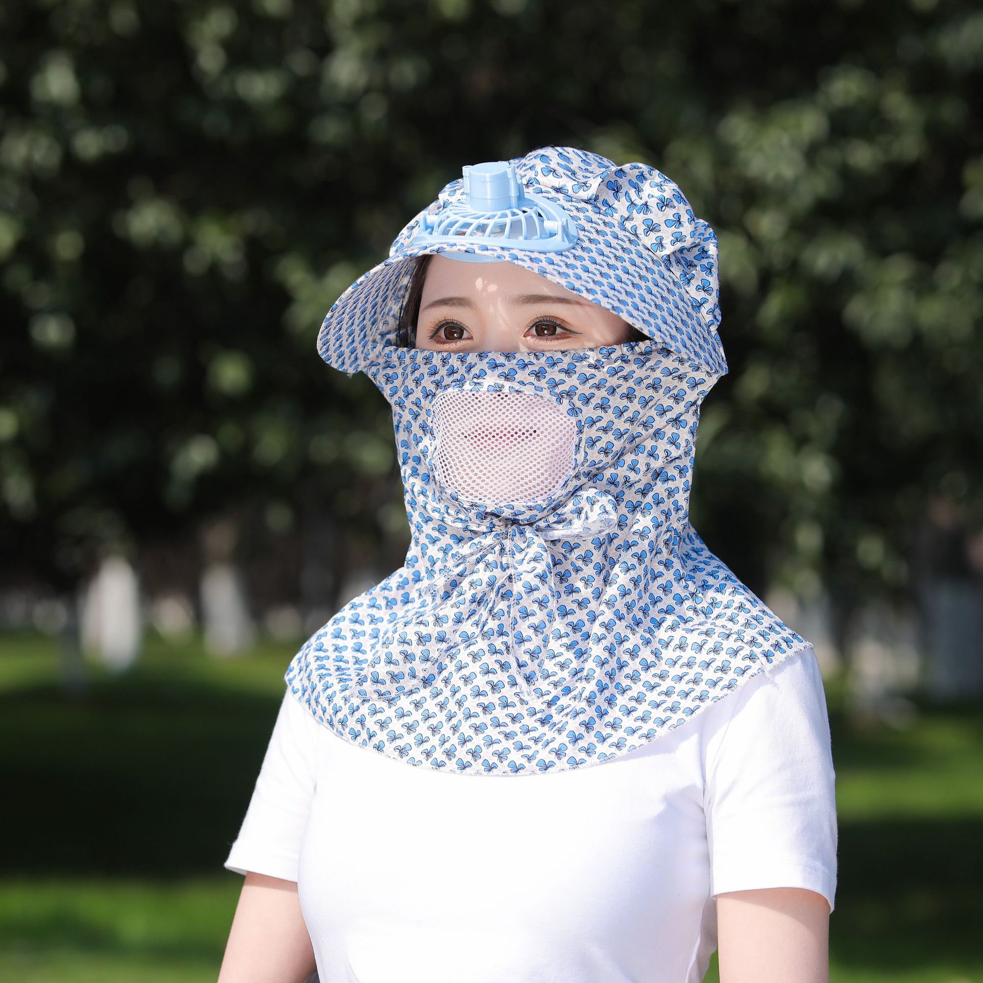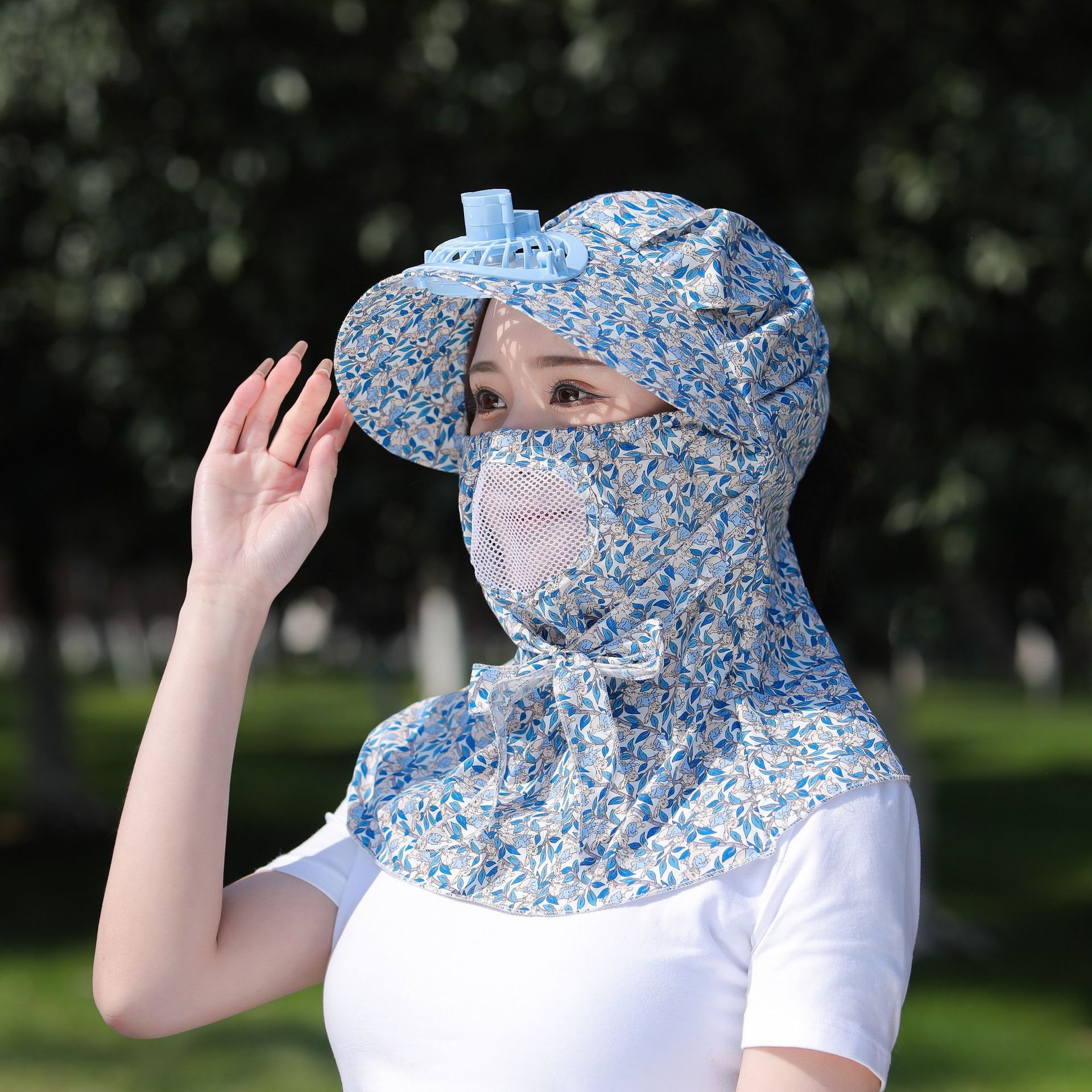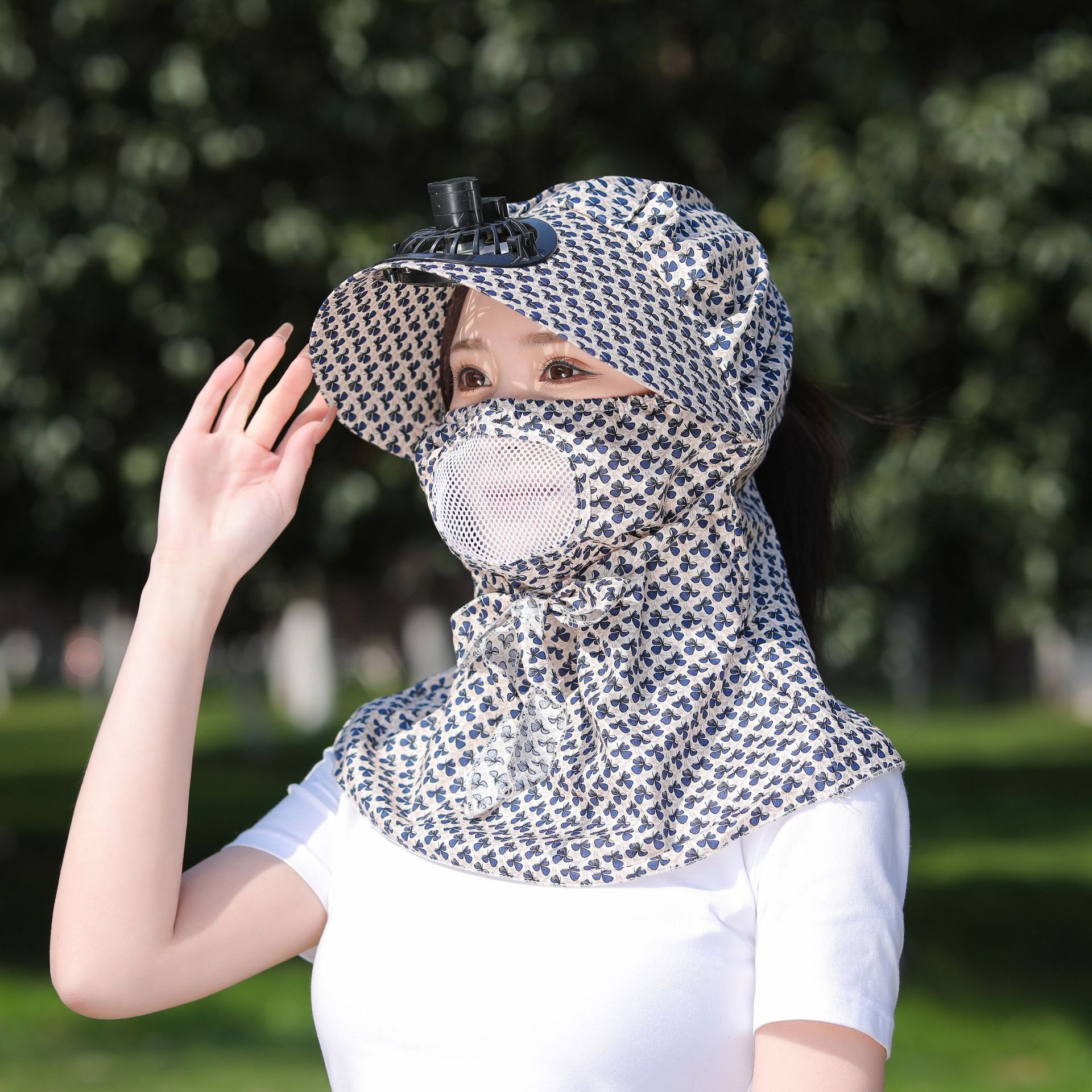 Functions: sun protection, neck protection, ventilation, fan, wind protection, sun protection and fall prevention.