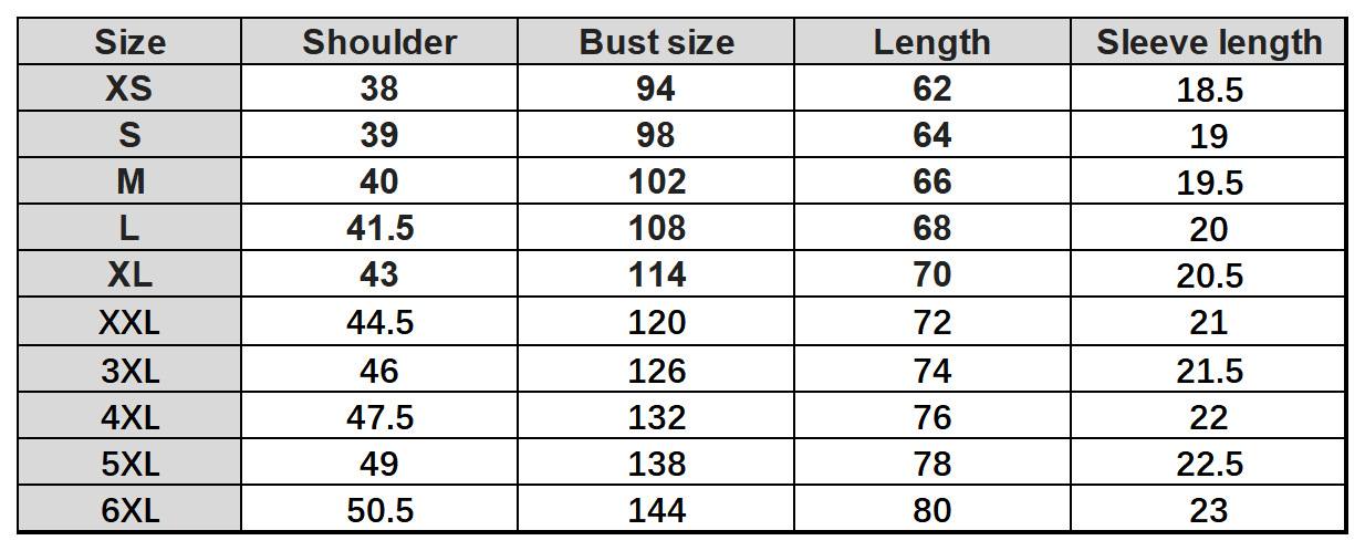Size: XS,S,M,L,XL,XXL,3XL,4XL,5XL,6XL