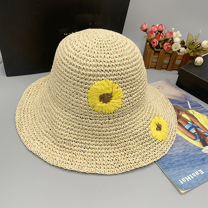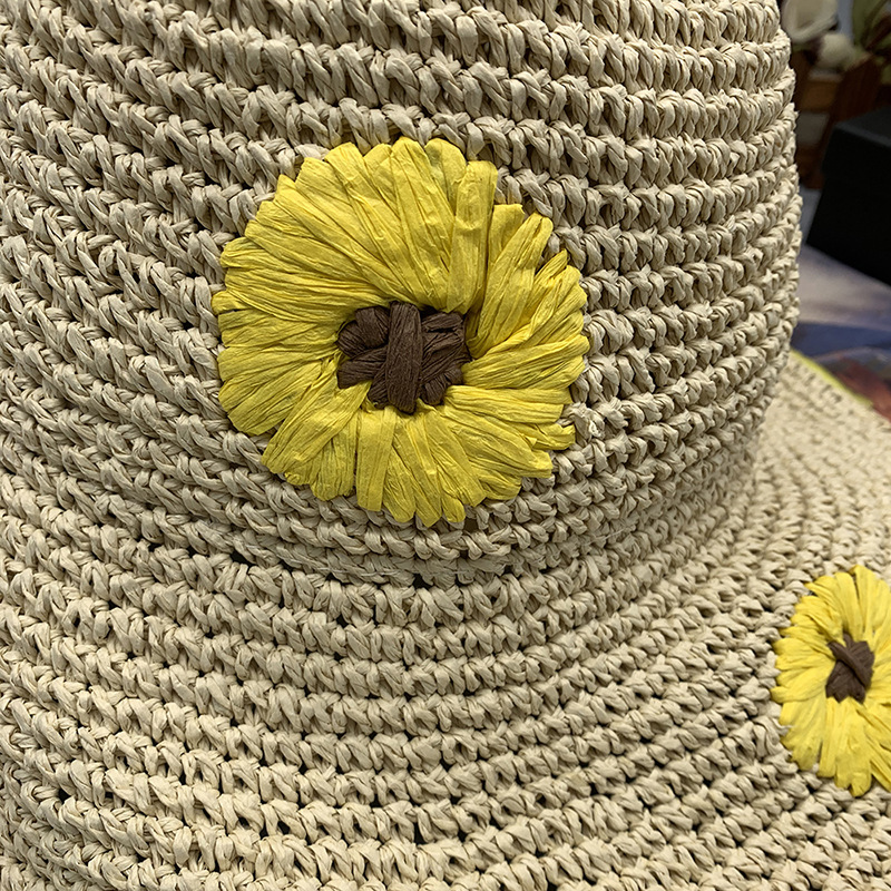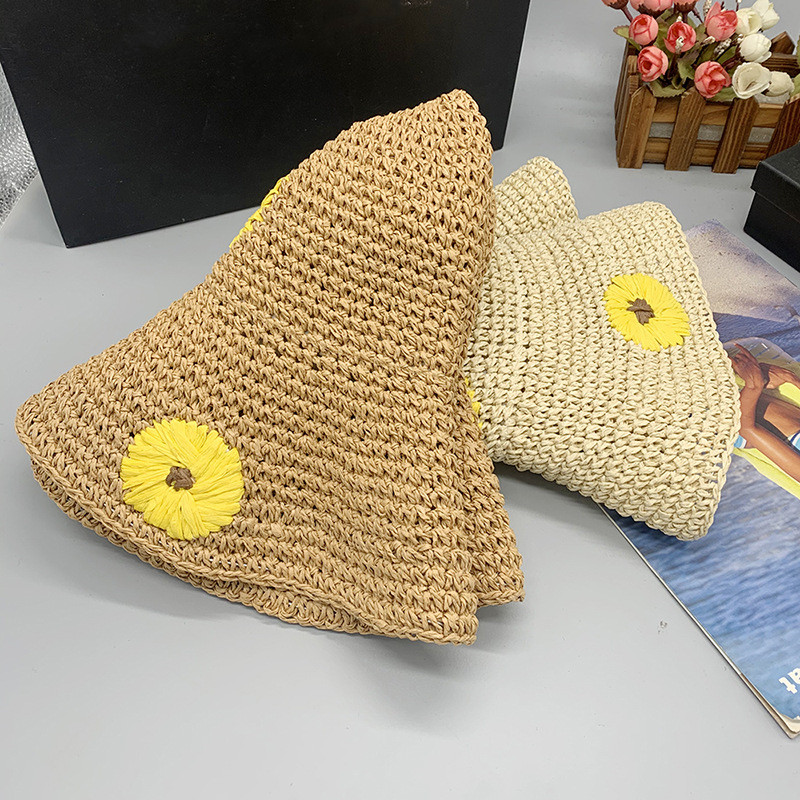 Women's Summer Daisy Folding Sunshade Beach Sunscreen Straw Hat