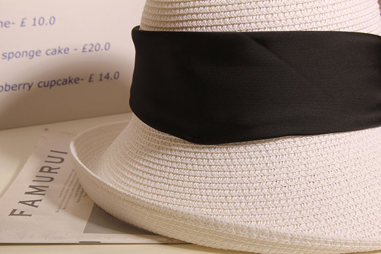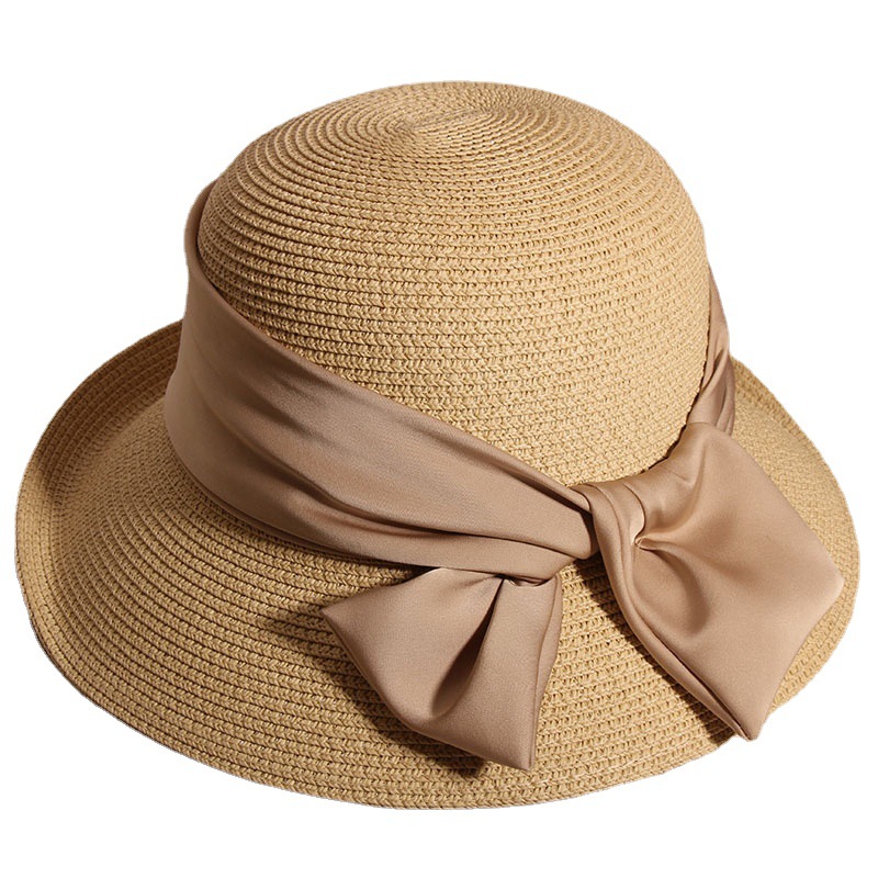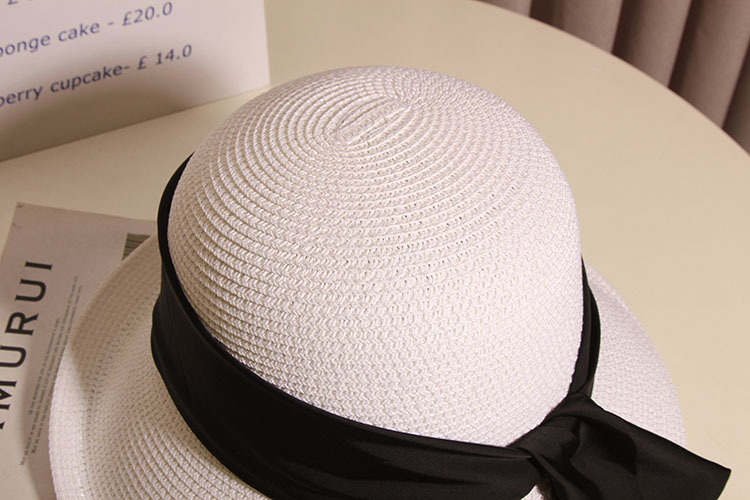 Color: small curling dovetail ribbon summer basin hat-beige HOT, small curling dovetail ribbon summer basin hat-khaki, small curling dovetail ribbon summer basin hat-black, small curling dovetail ribbon summer basin hat-white