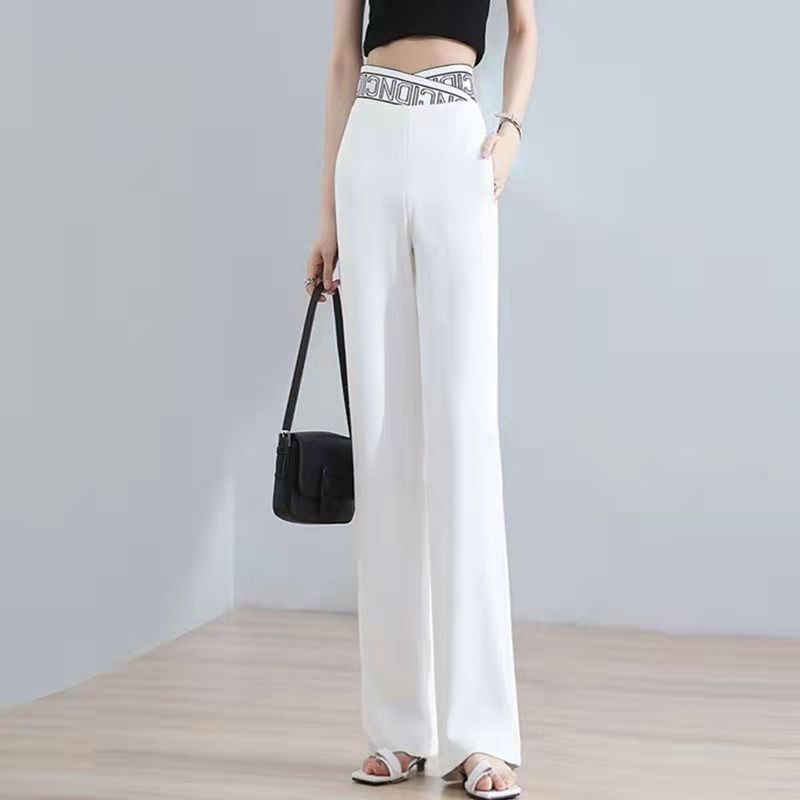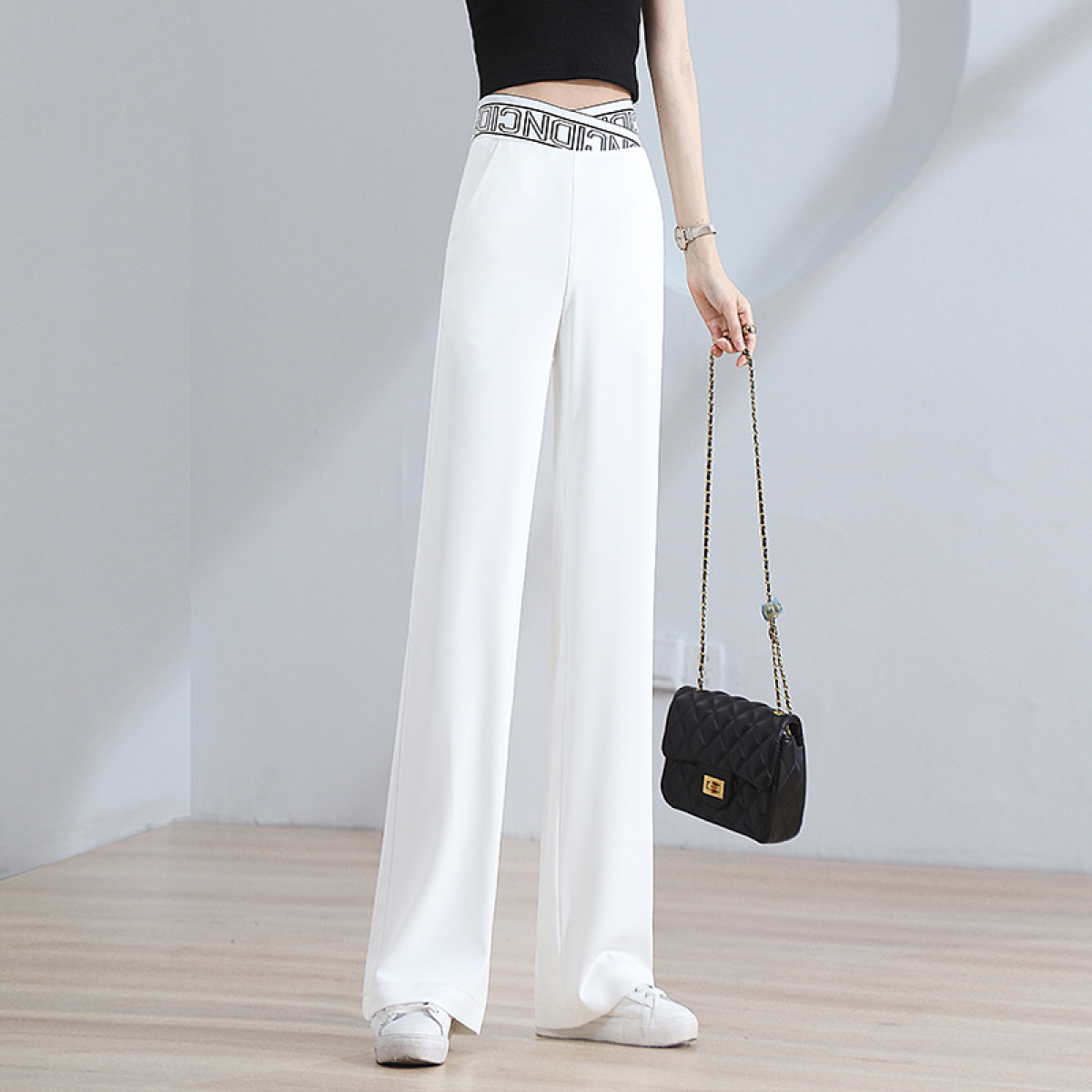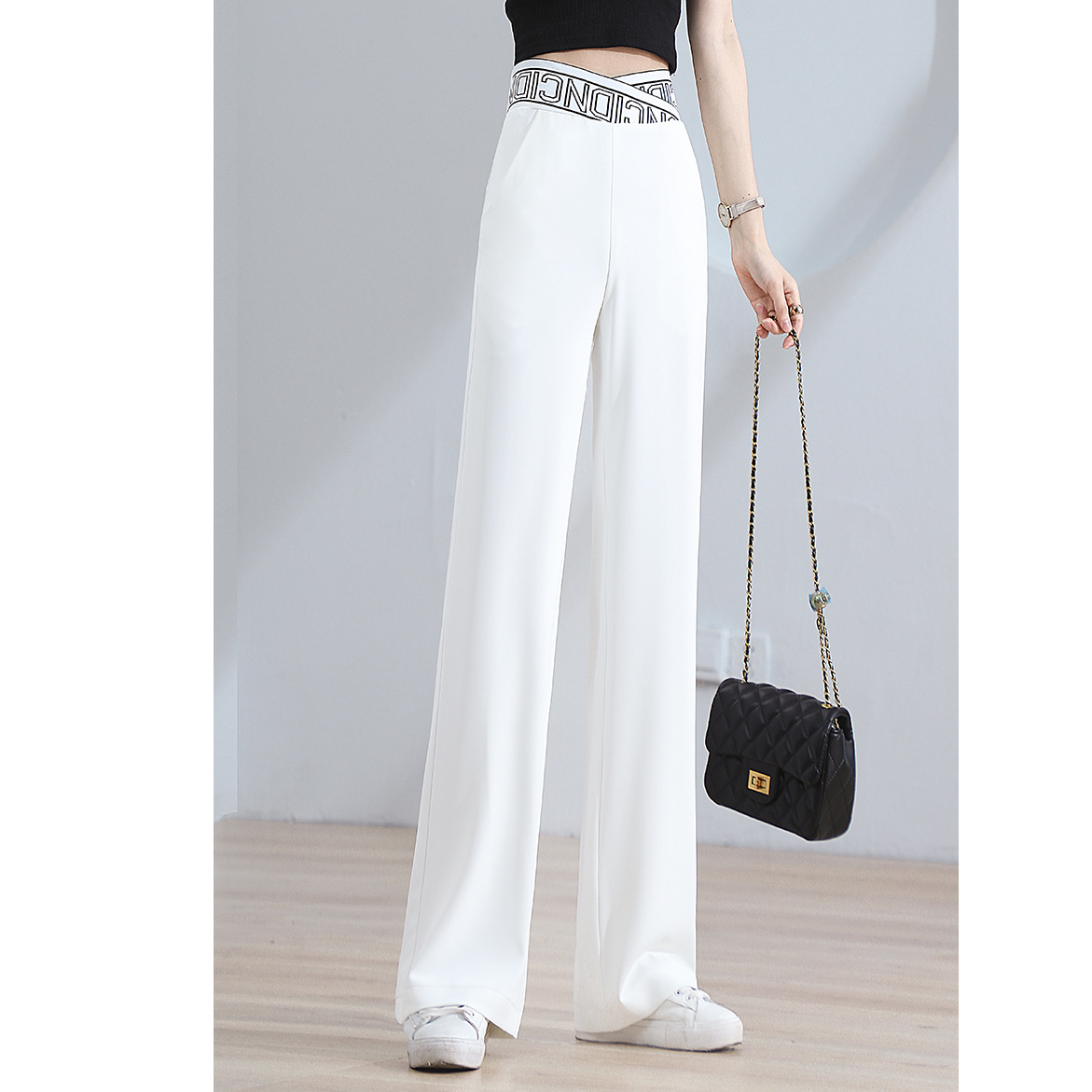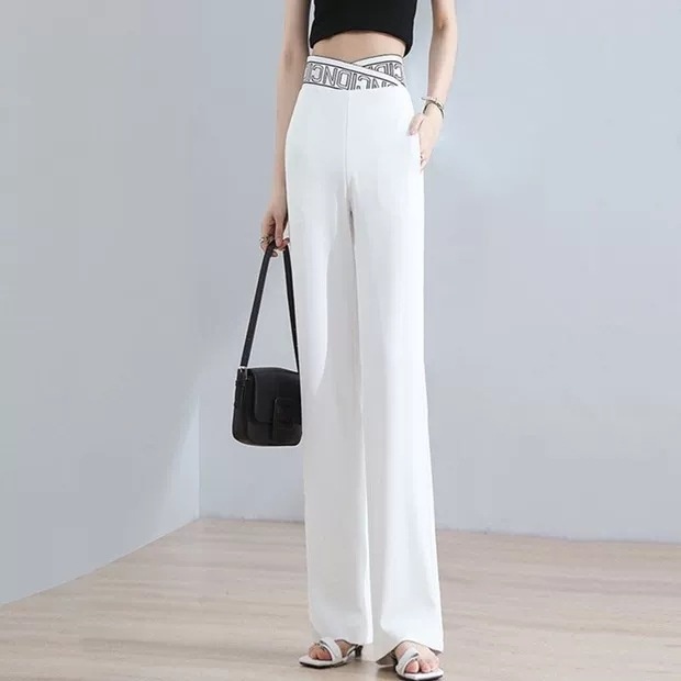 Colors: K288 # White Four-Quarter Stretch Wide-Leg Pants, K288 # Black Four-Quarter Stretch Wide-Leg Pants
