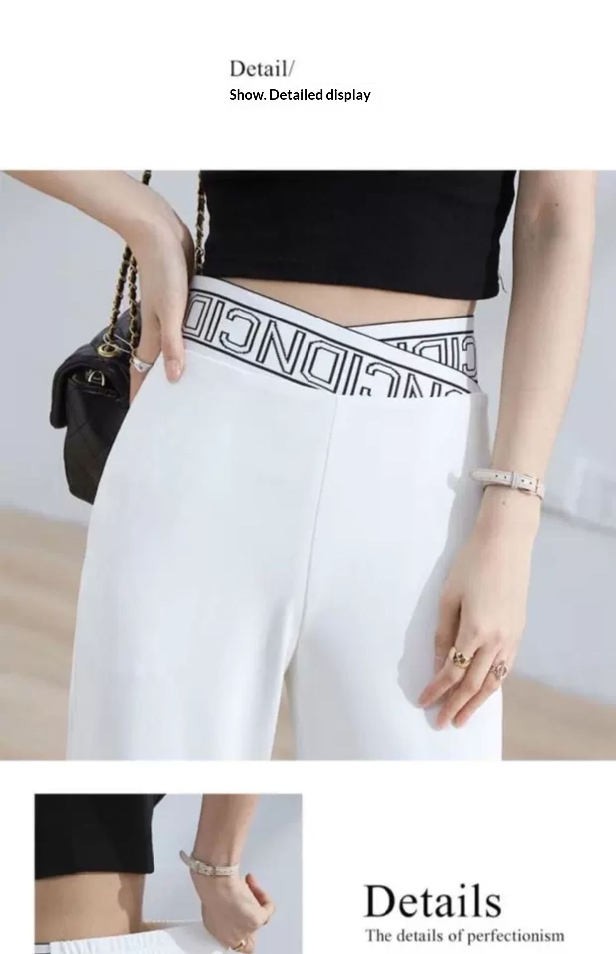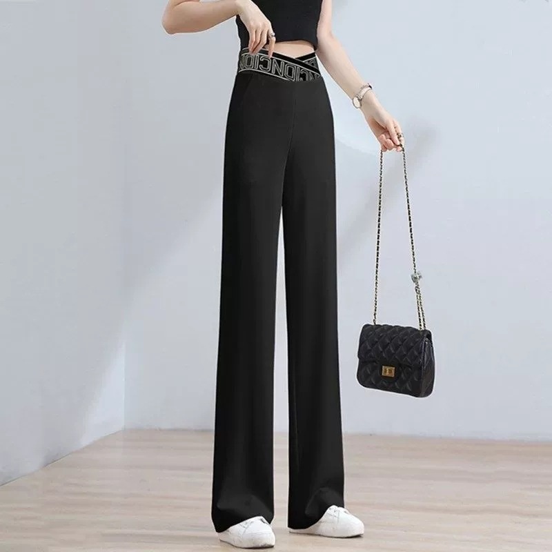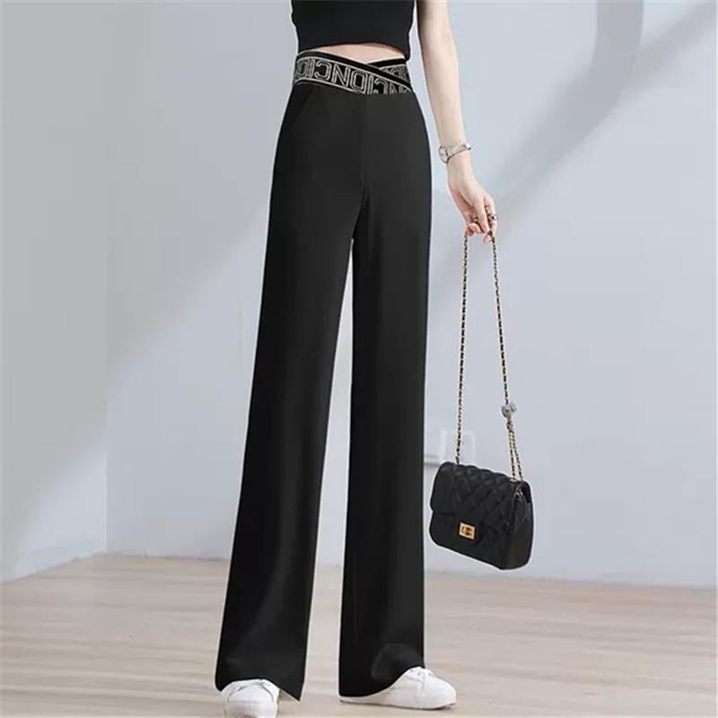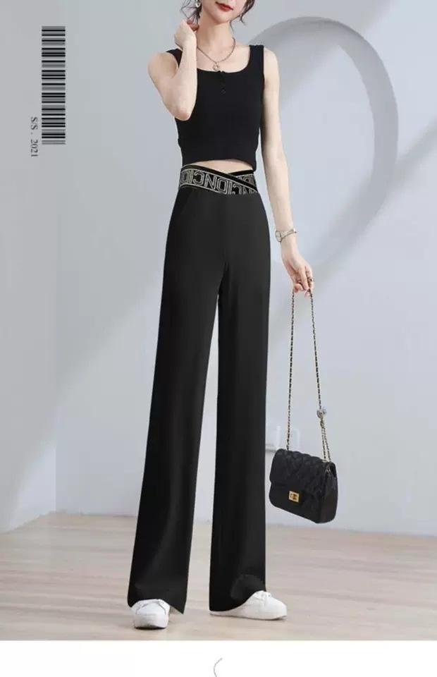 Colors: K288 # White Four-Quarter Stretch Wide-Leg Pants, K288 # Black Four-Quarter Stretch Wide-Leg Pants