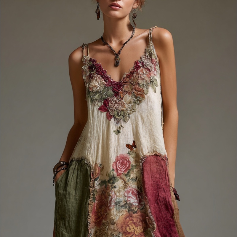 Womens Summer New V-Neck Sleeveless 3D Printed Sexy Tank Dress