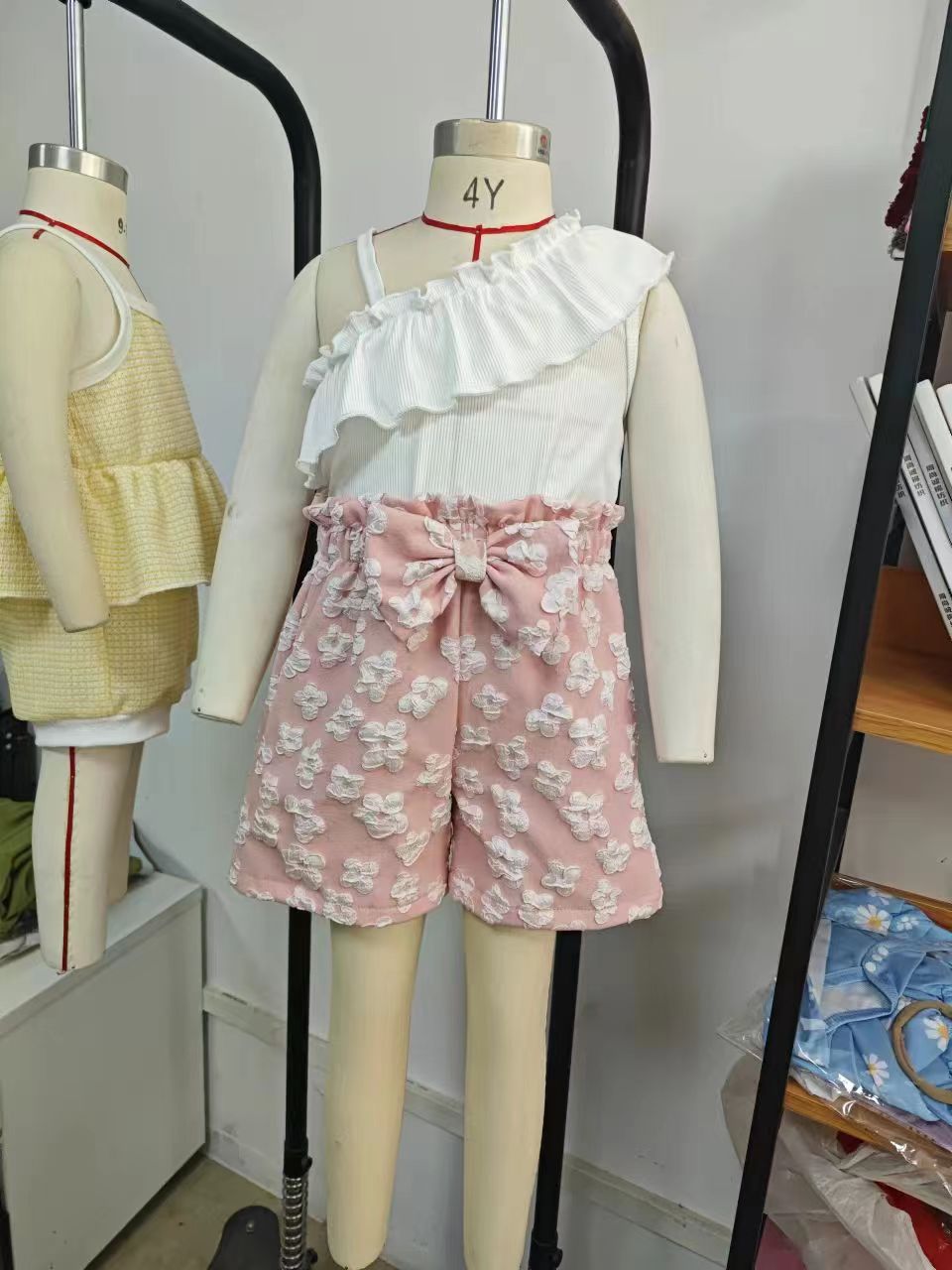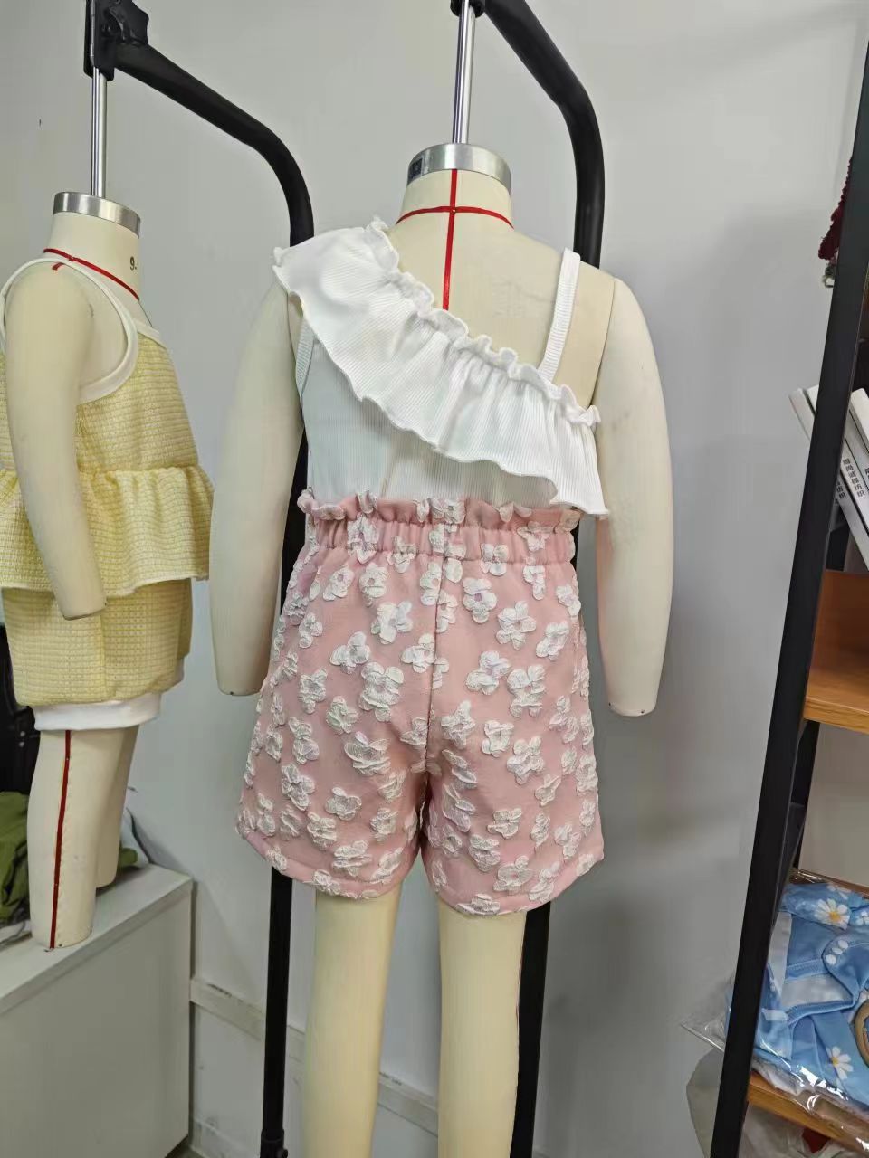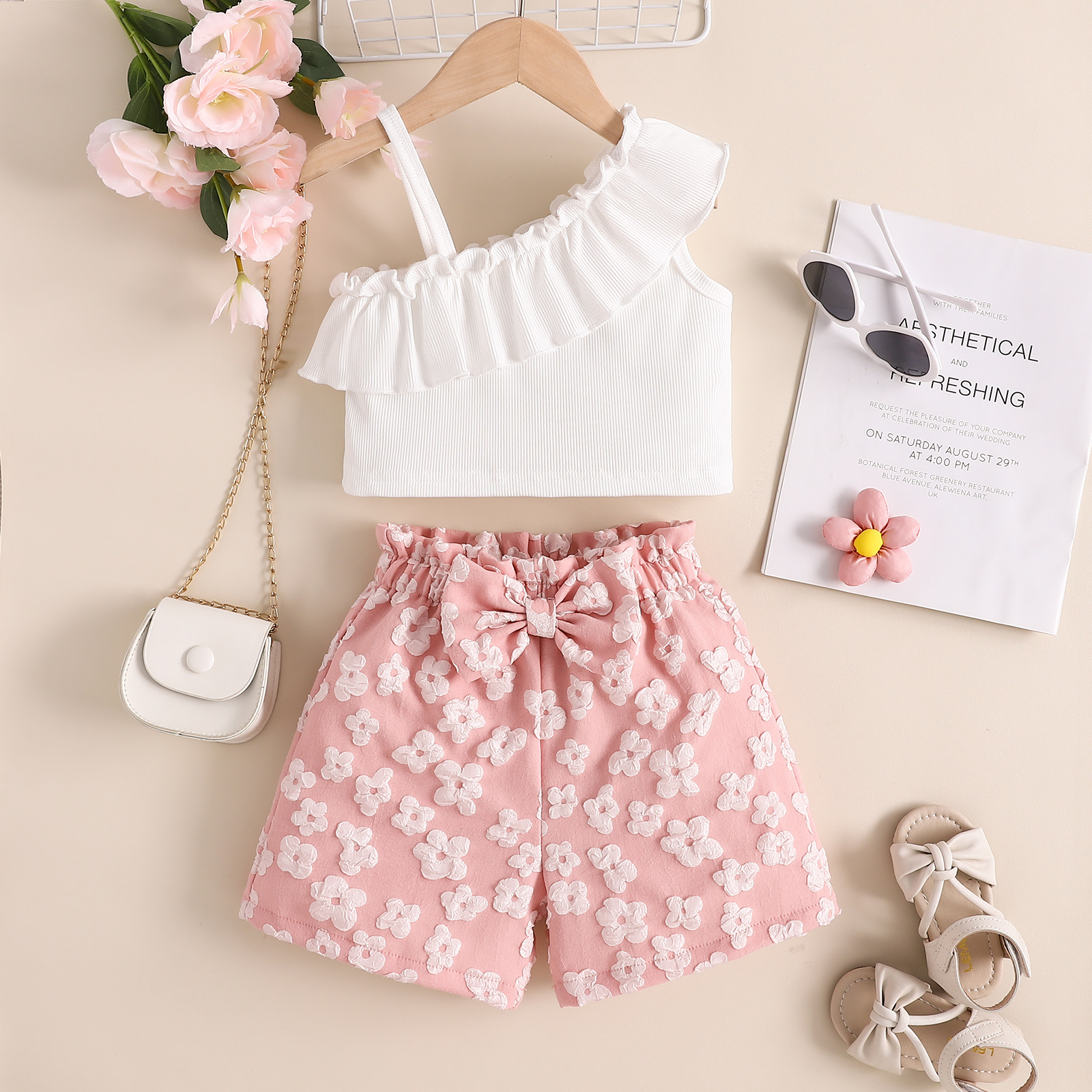 Women's Summer Oblique Shoulder Tops Flower Shorts Suit