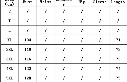 Sizes: XL, XXL, 3XL, 4XL, 5XL