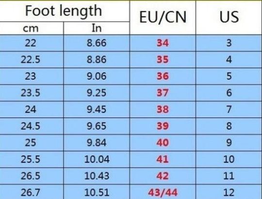 Size: 36, 37, 38, 39, 40, 41, 42, 43