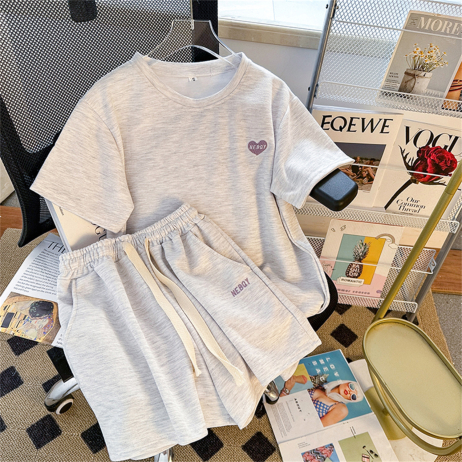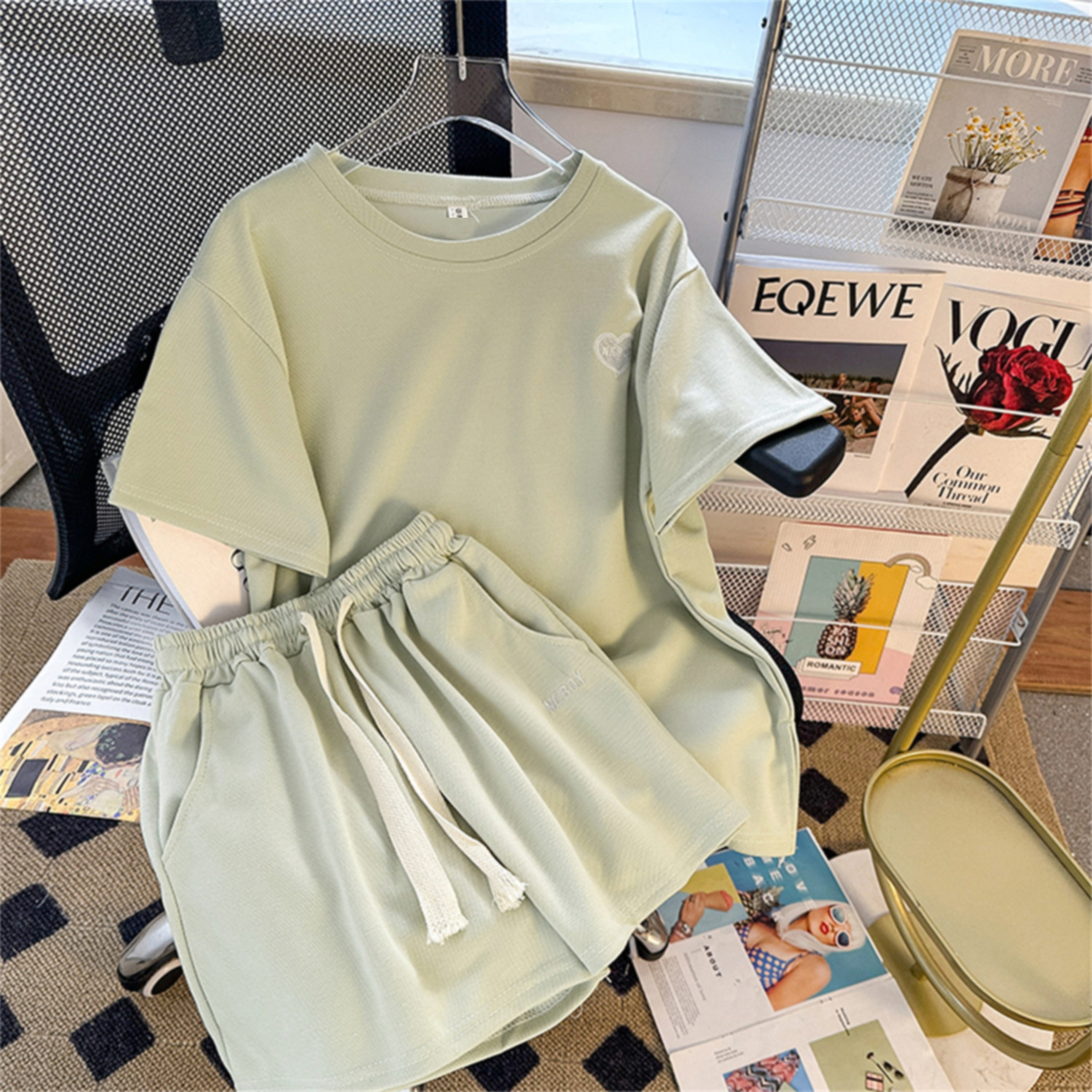 Colors: Bean green, apricot, pink, gray