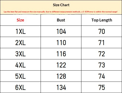 Sizes: 1XL, 2XL, 3XL, 4XL, 5XL, 6XL