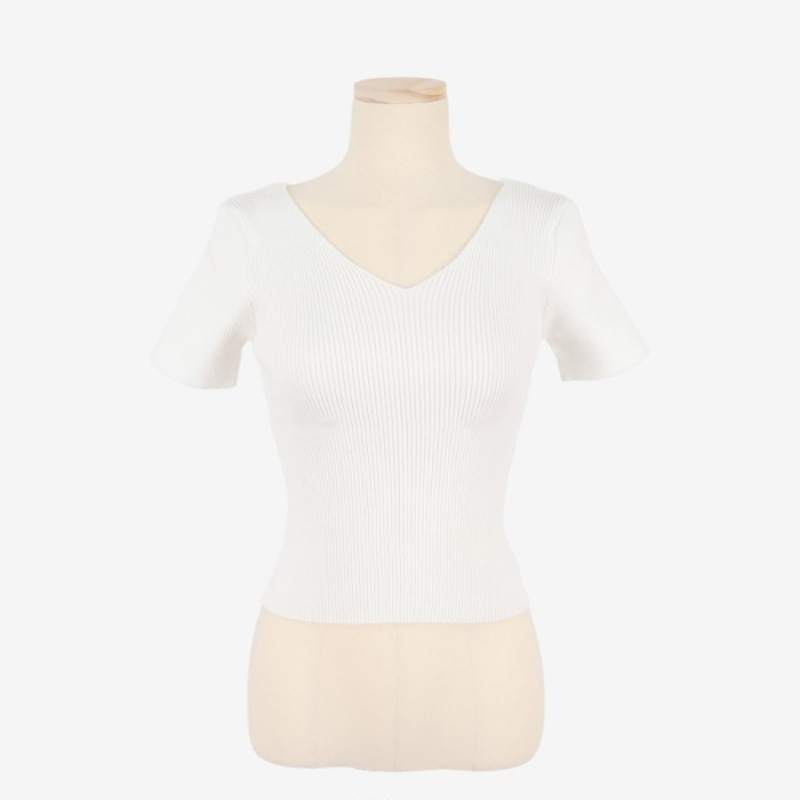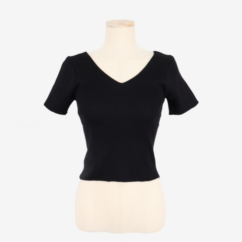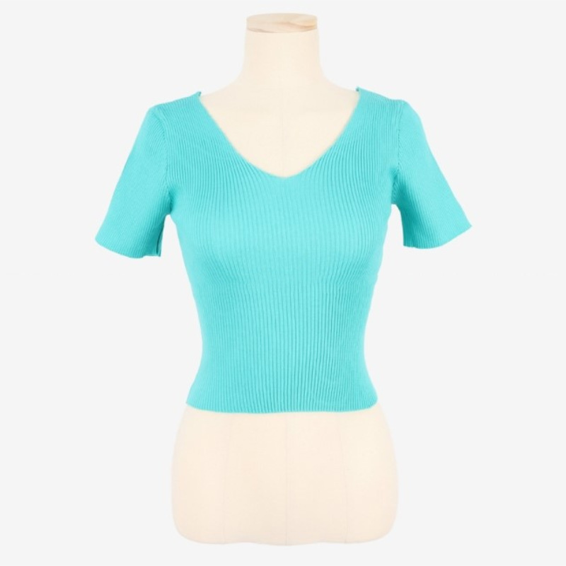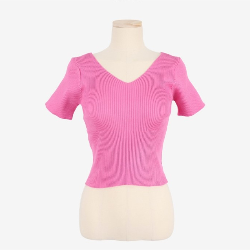 Women's Summer V-neck Bright Short Sweater Slim Fit Chest All-matching Short Sleeve T-shirt Top