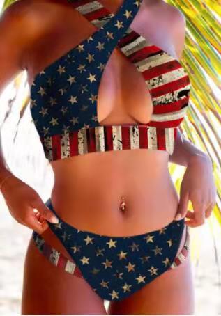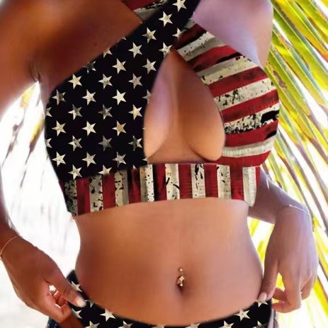 Women's Swimsuit Split Flag Bikini Sexy Stripes Bikini Five-pointed Star Swimsuit