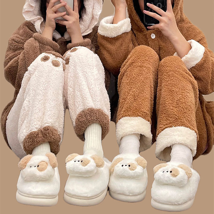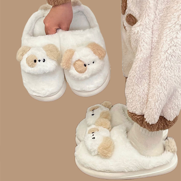 Color: khaki puppy cotton slippers